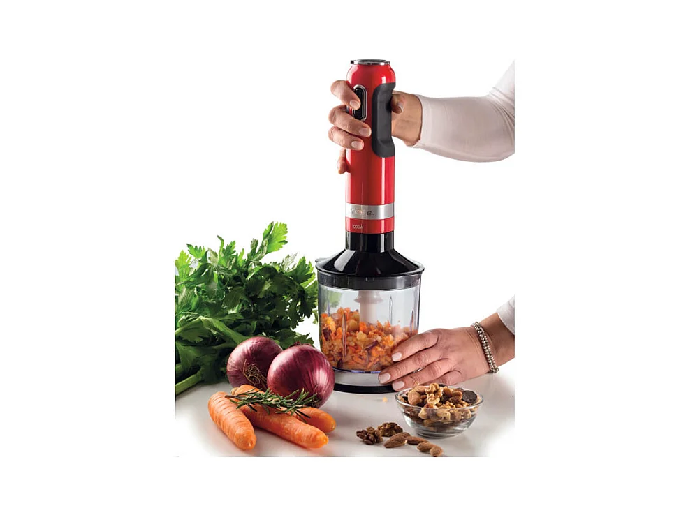 Frullatore a immersione 1000W - 10 velocità + turbo - Accessori inclusi - Rosso