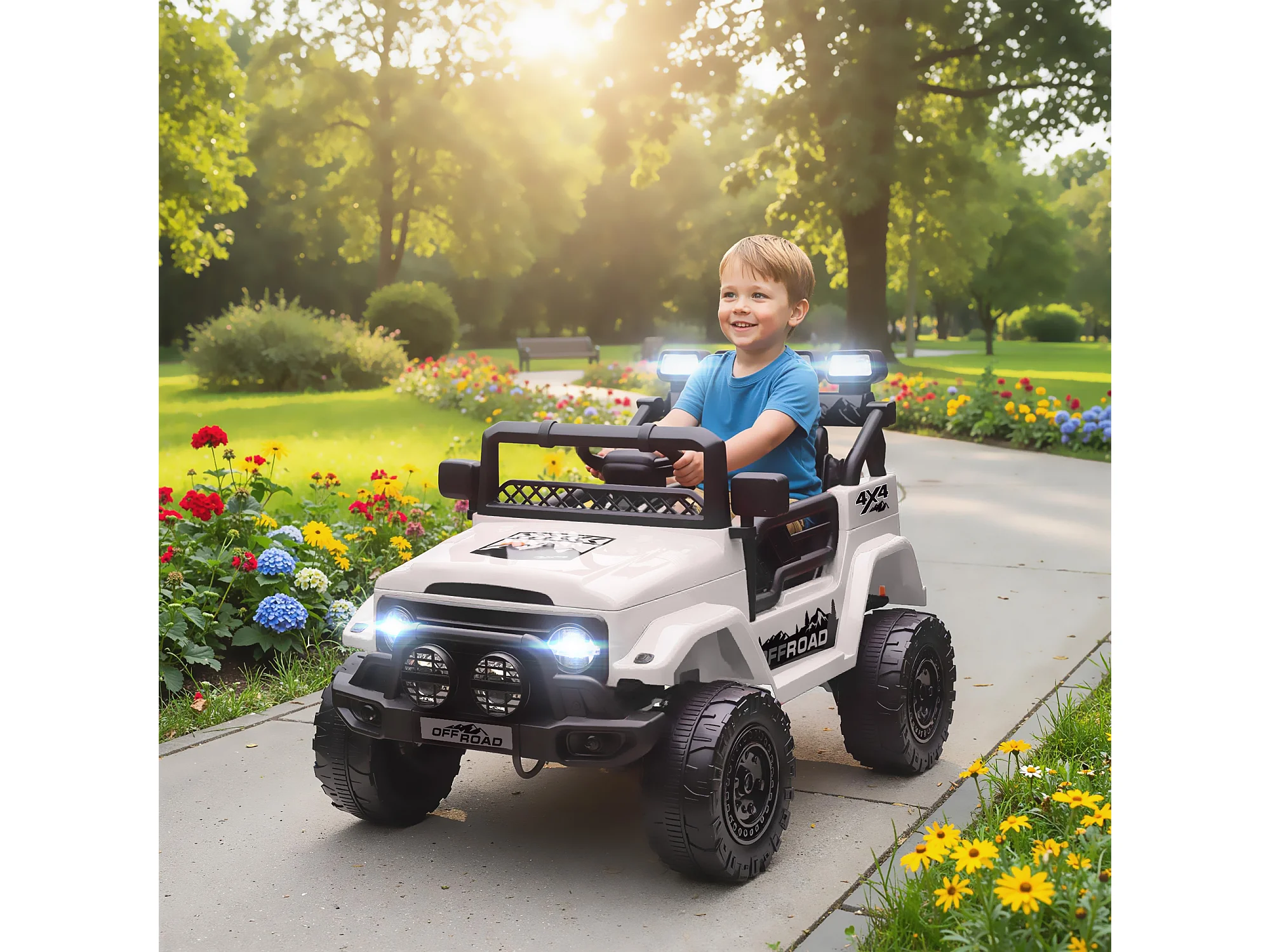 Fuoristrada per bambini con fanali, clacson e cintura bianco
