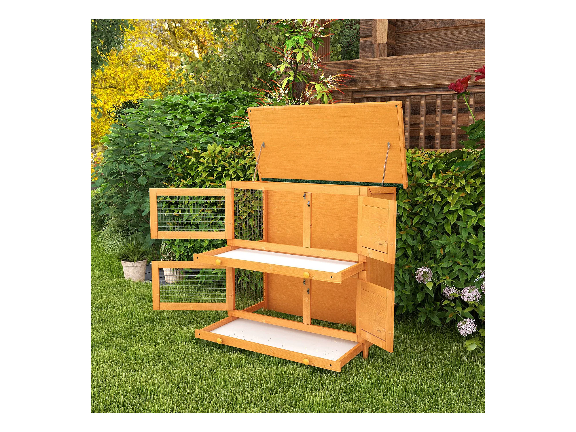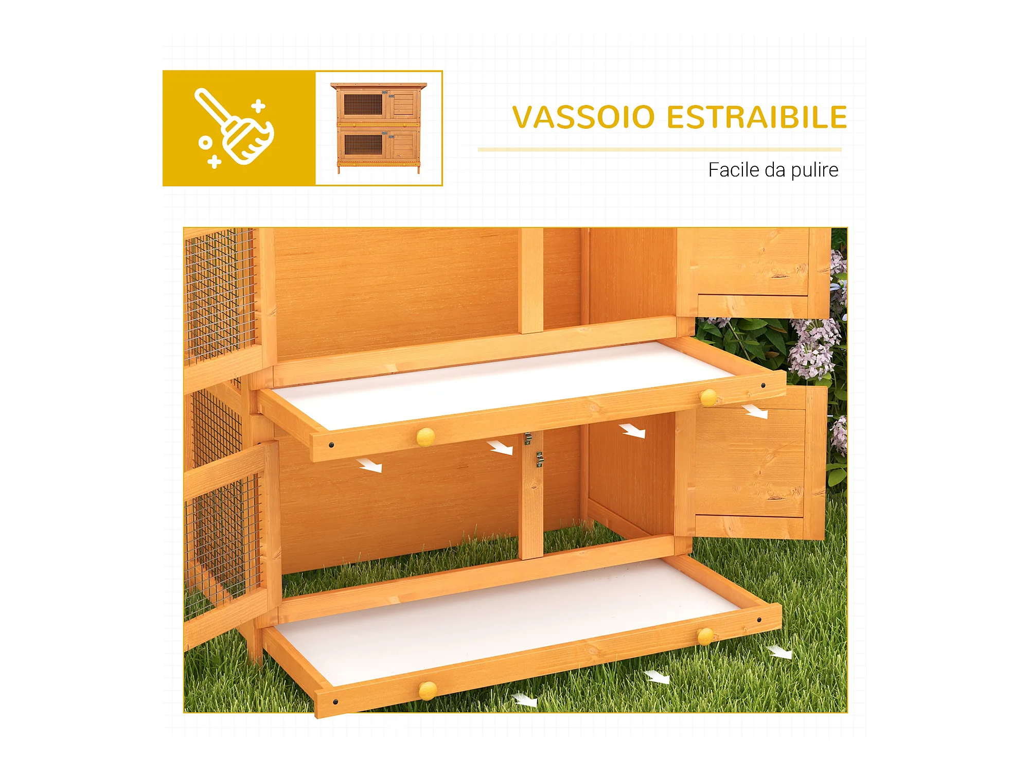 Conigliera in legno 2 piani con casetta rampa e vassoio estraibile
