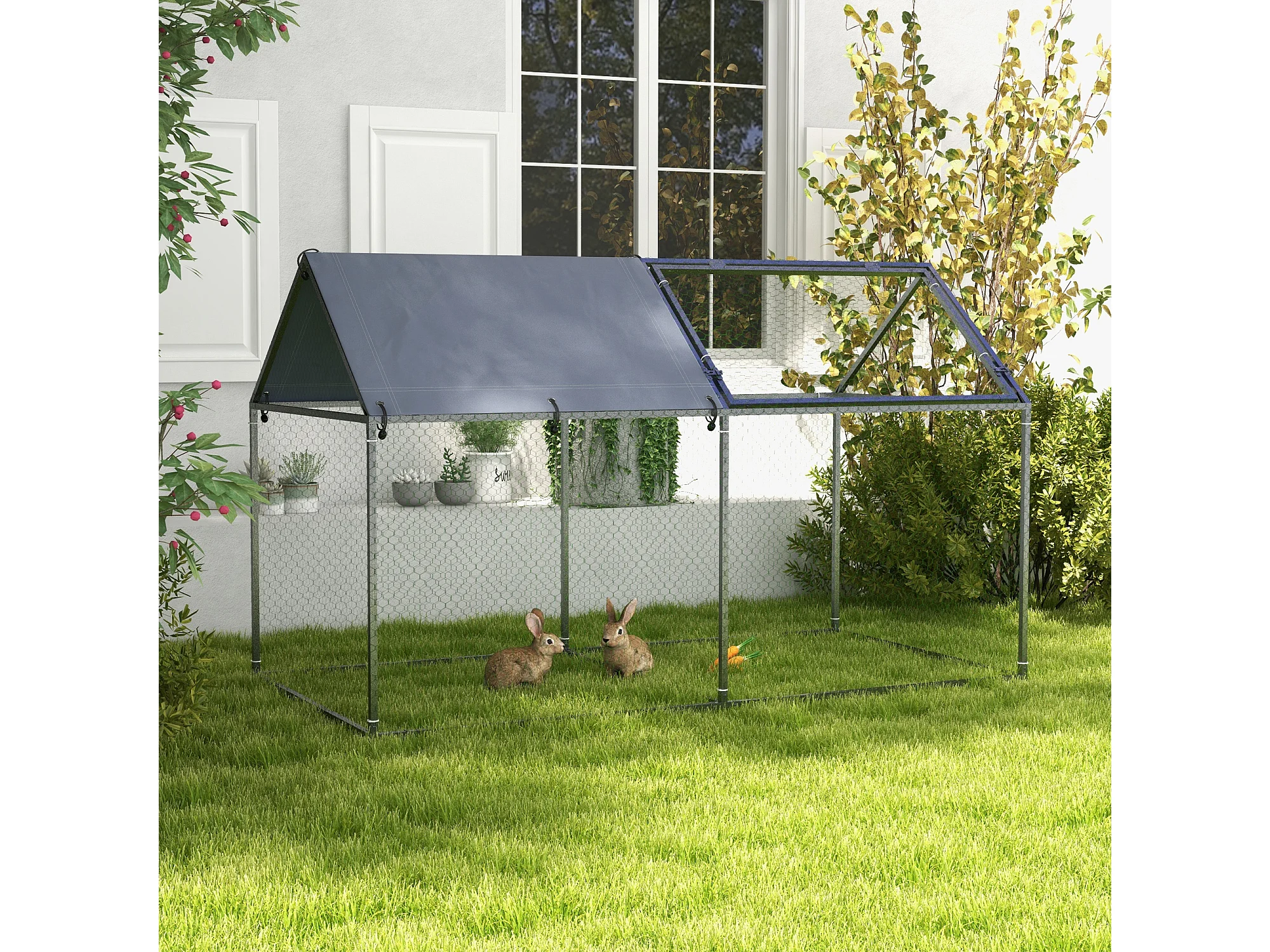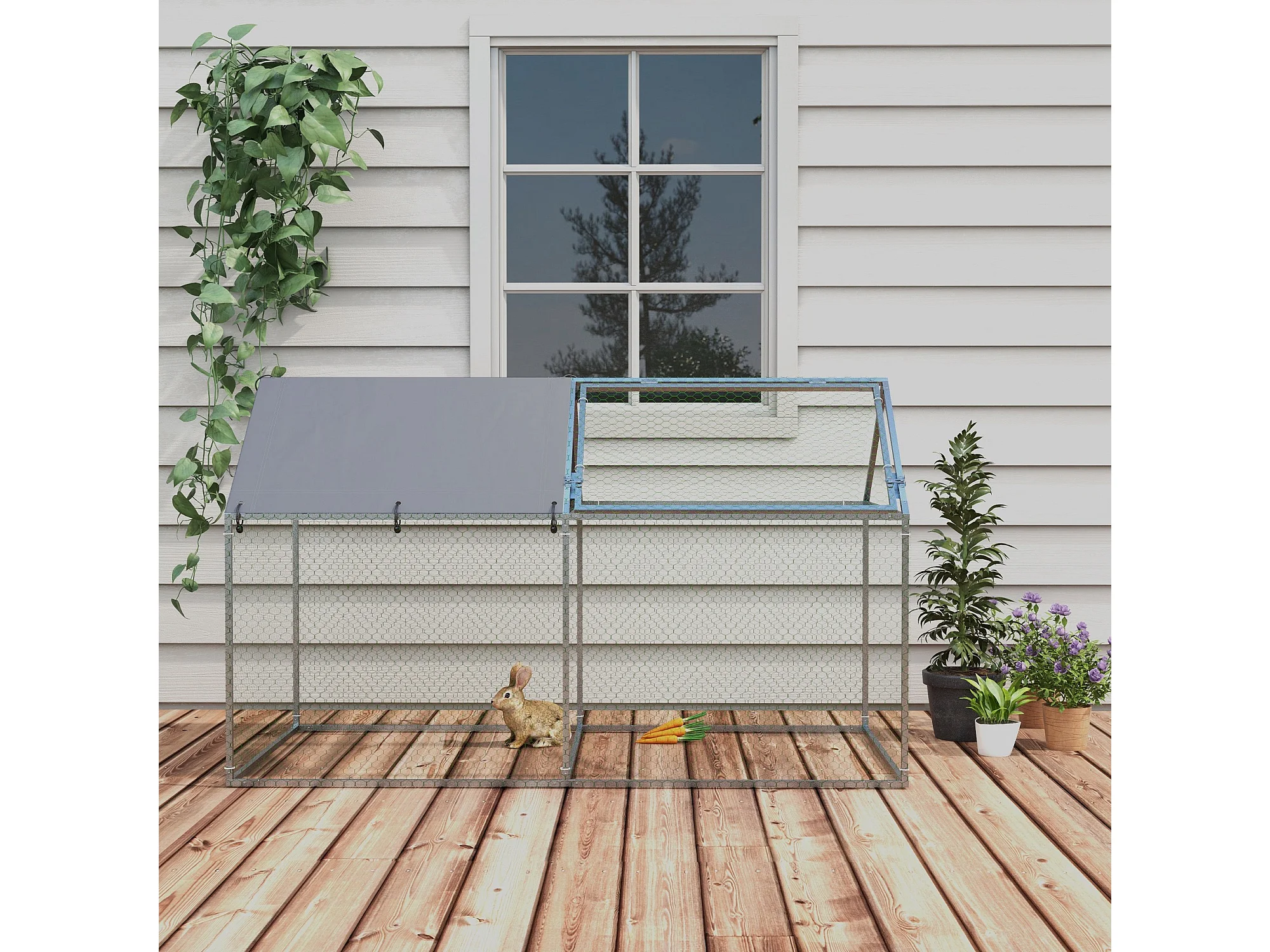 Pollaio per galline da giardino con telaio zincato 3x8x2m impermeabile