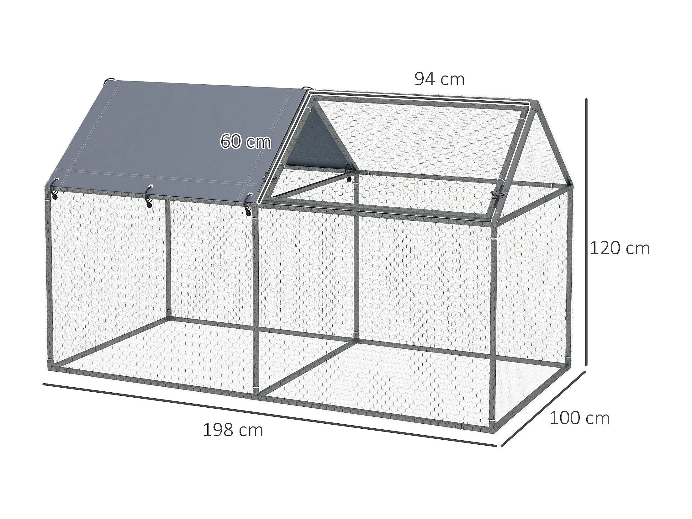 Recinto per cani da esterno in acciaio con copertura in tessuto