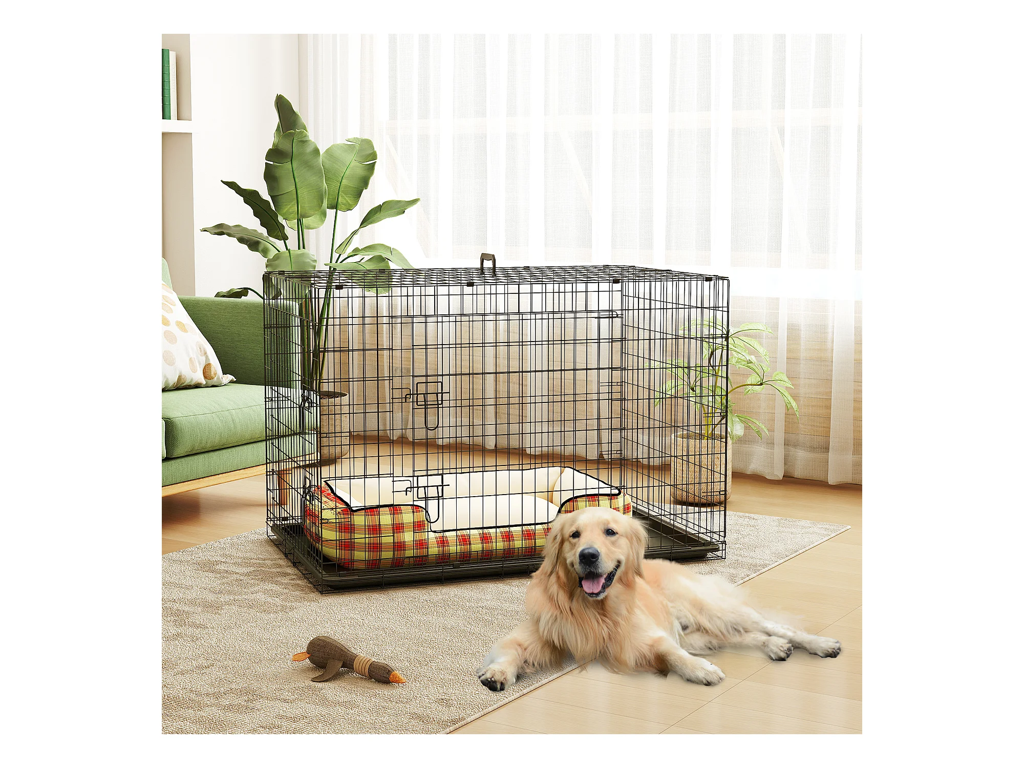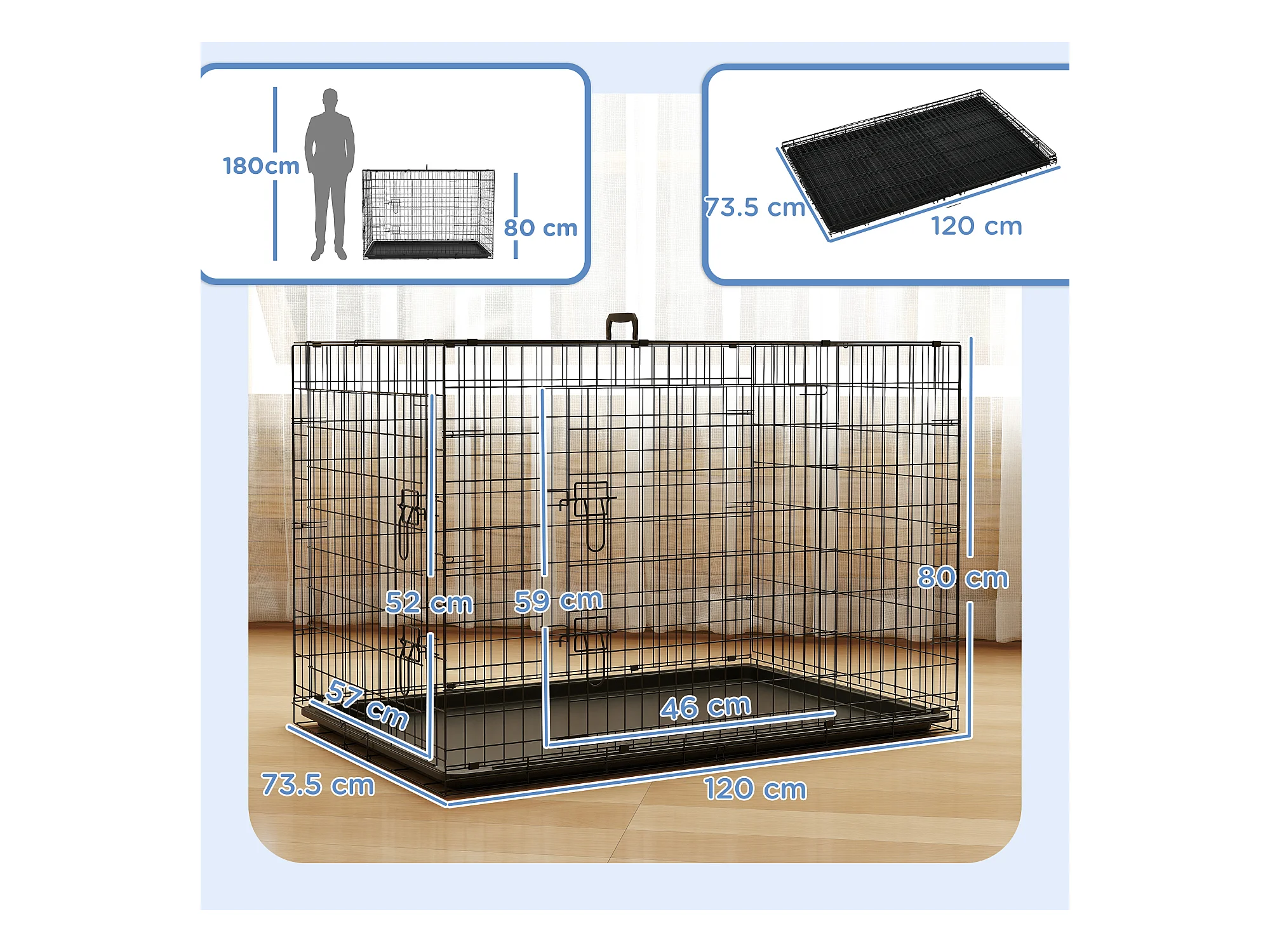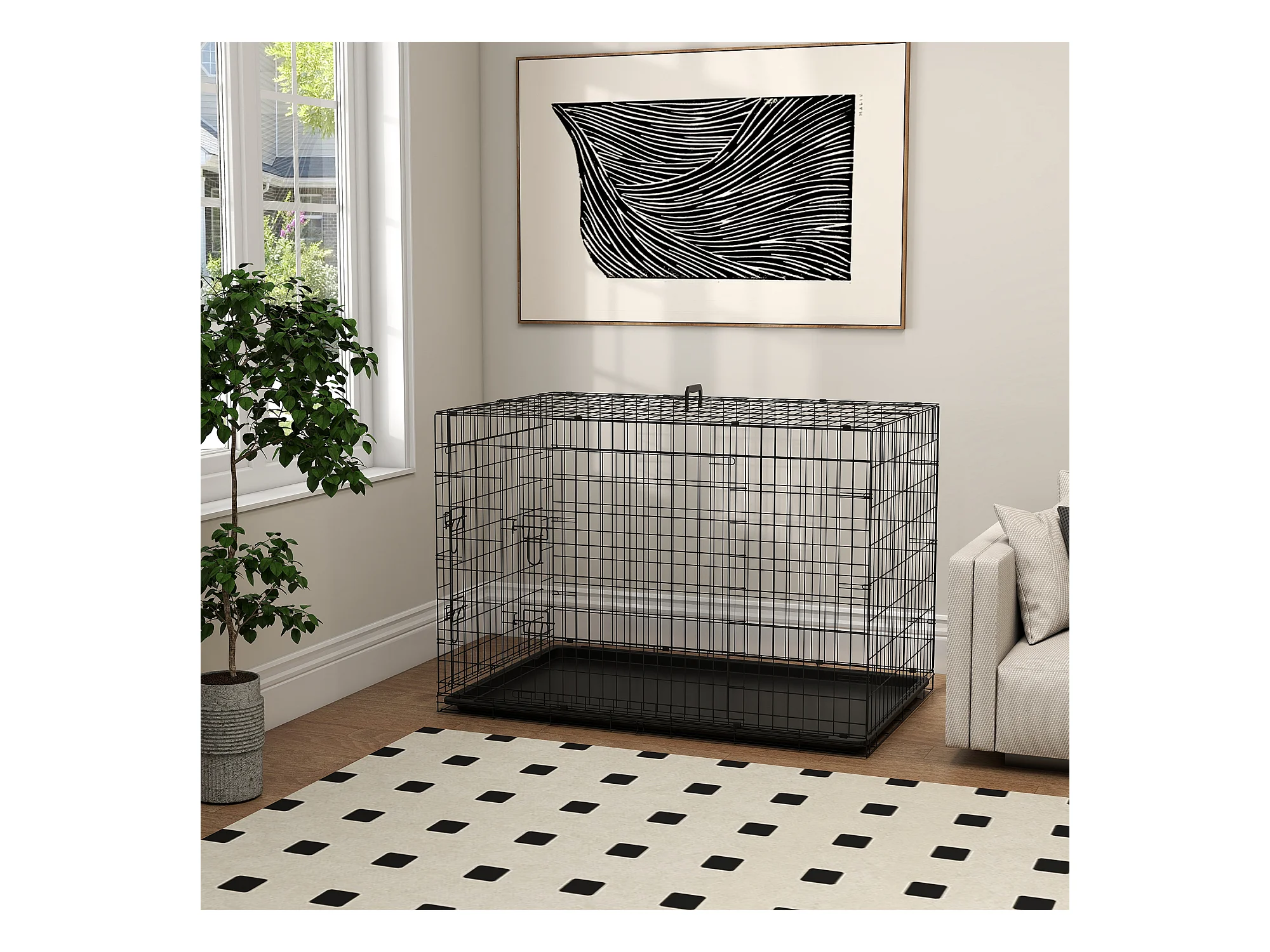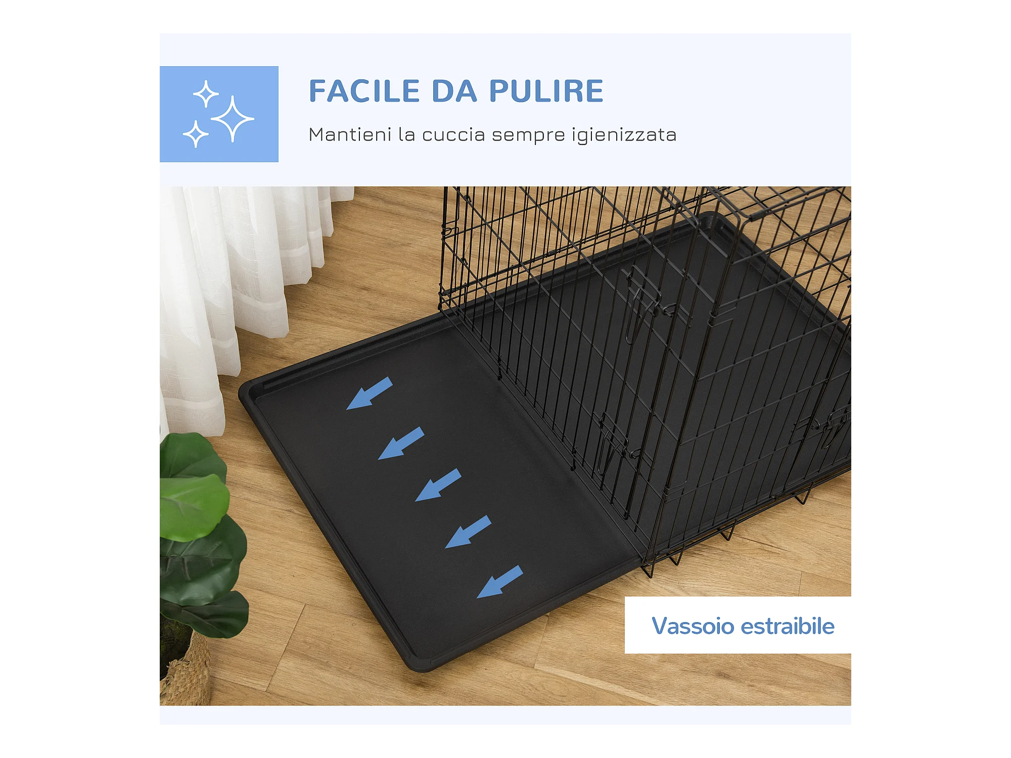 Gabbia per cani con 3 porte interne, grande gabbia XXL per cani con vassoio rimovibile 90x62x68cm