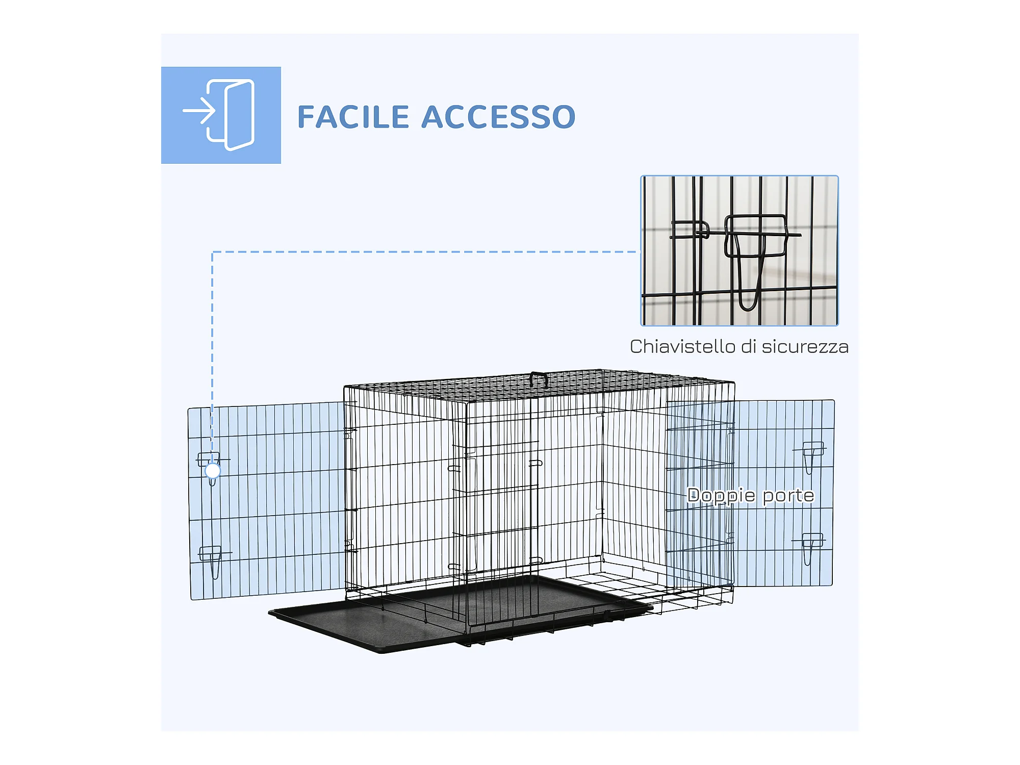 Gabbia per cani e gatti kennel pieghevole con 2 porte e maniglia nero