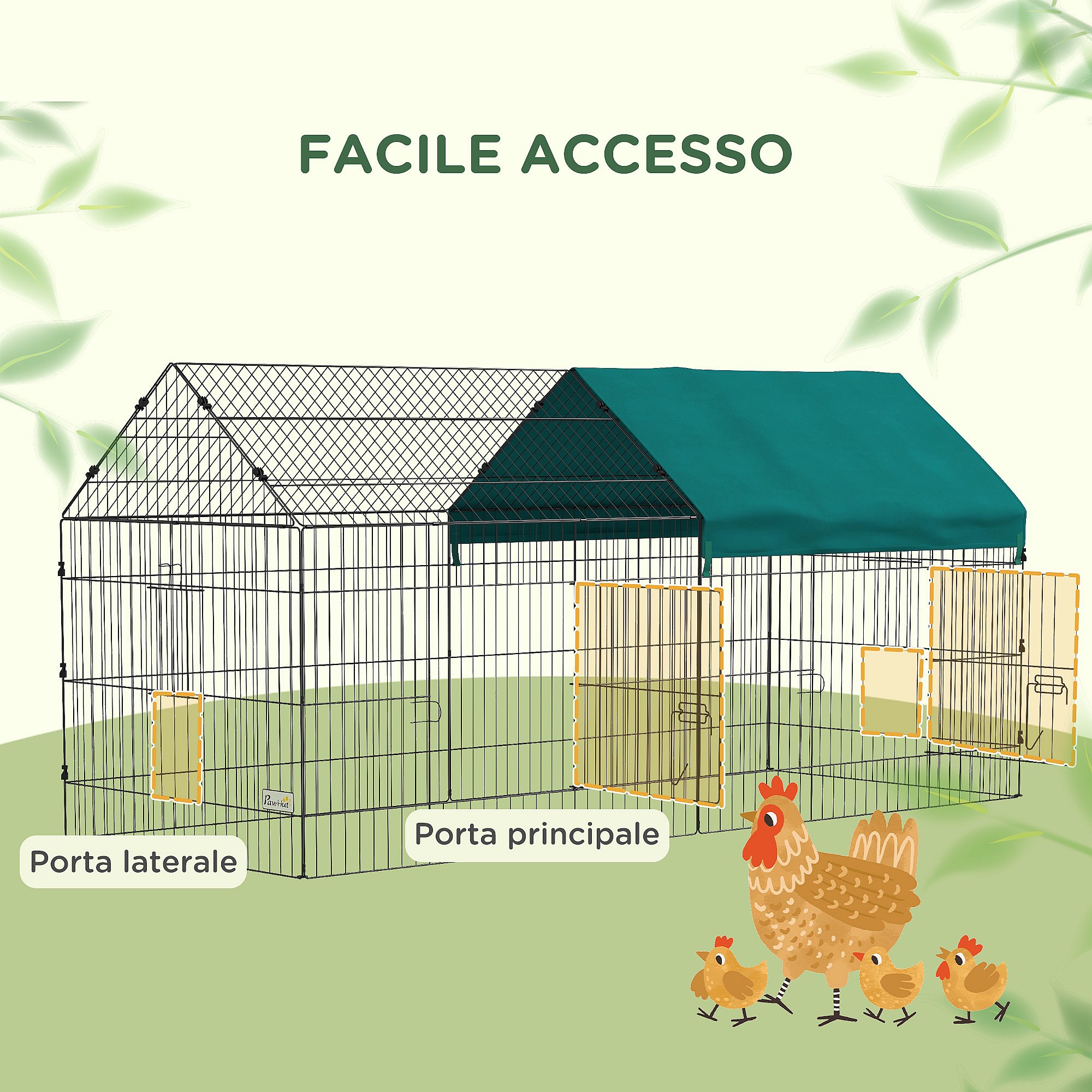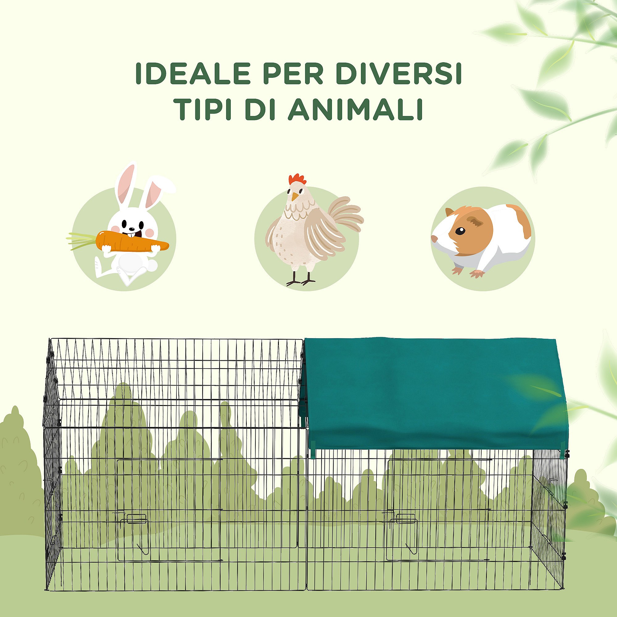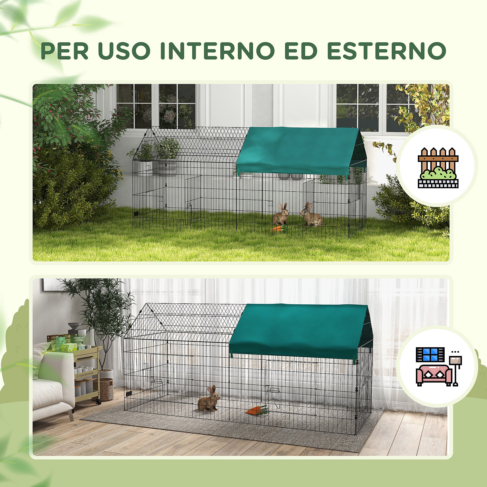 Gabbia per conigli a casetta con tettuccio in tessuto 220x85x103cm verde