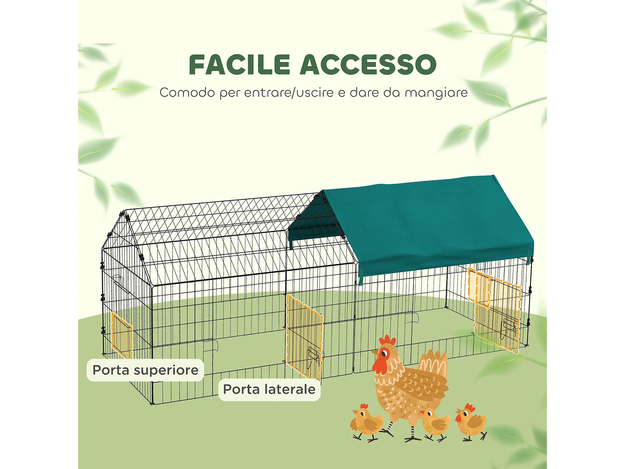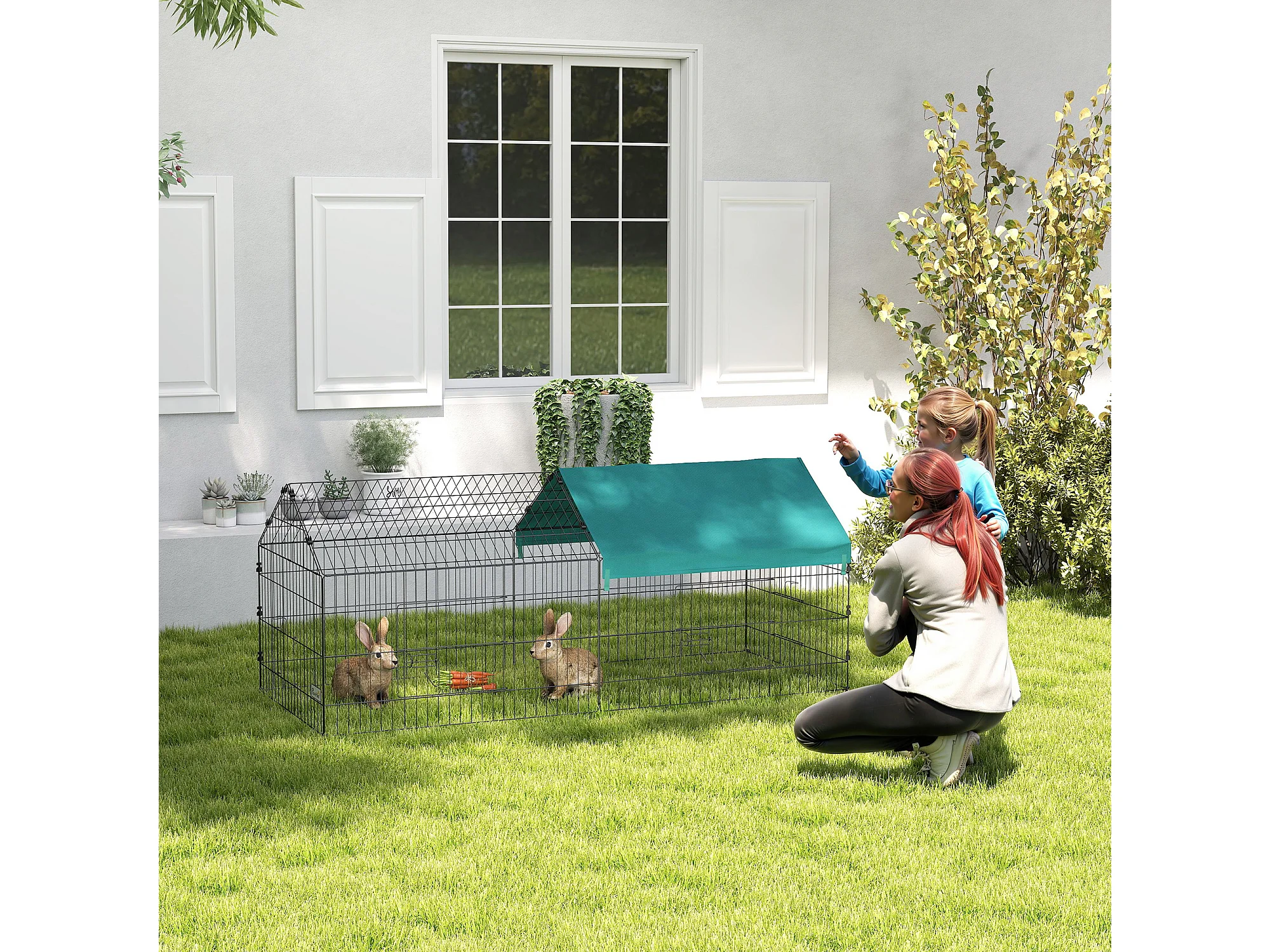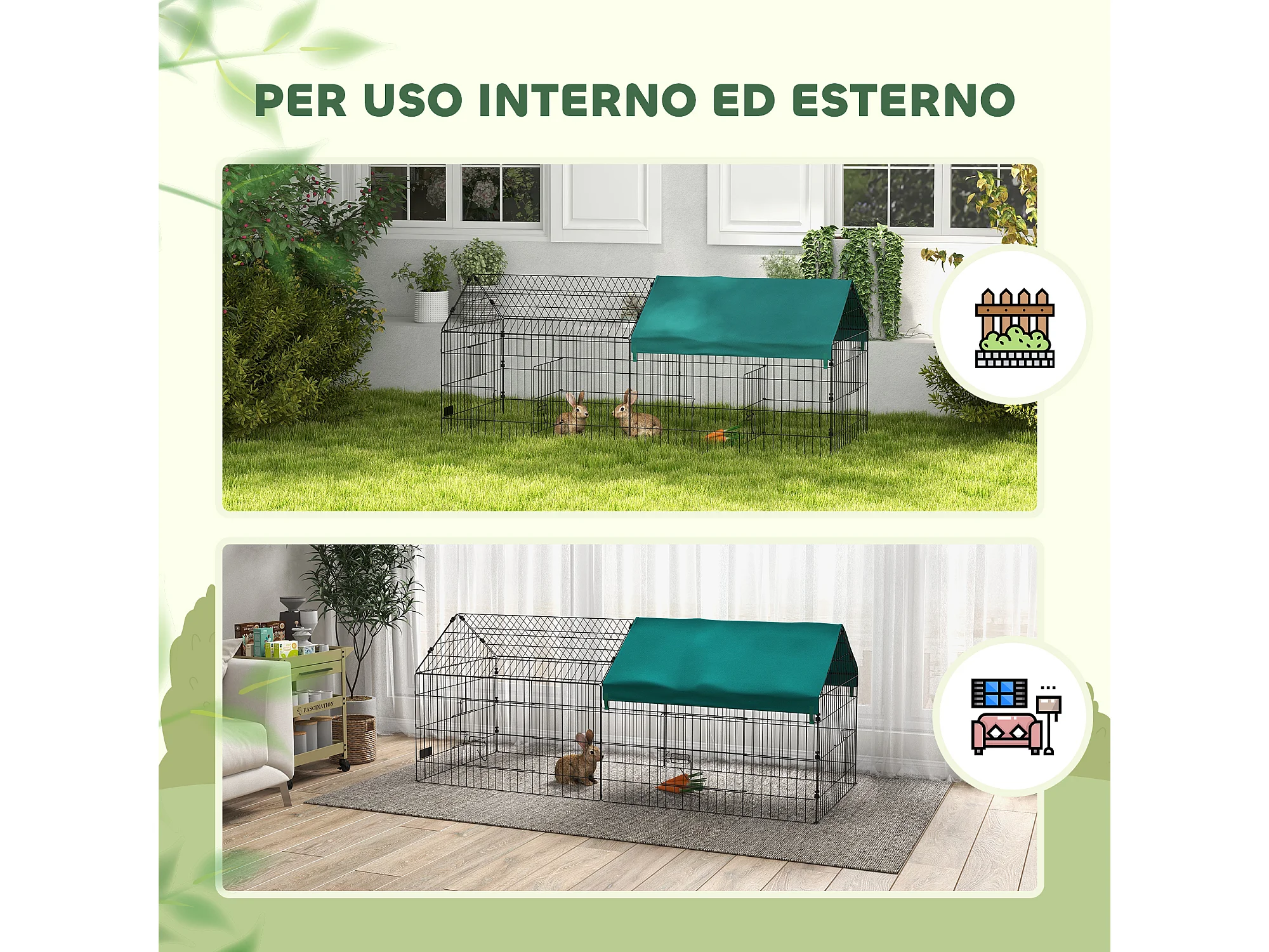 Gabbia per conigli con tettuccio 185x75x75 cm in acciaio verde
