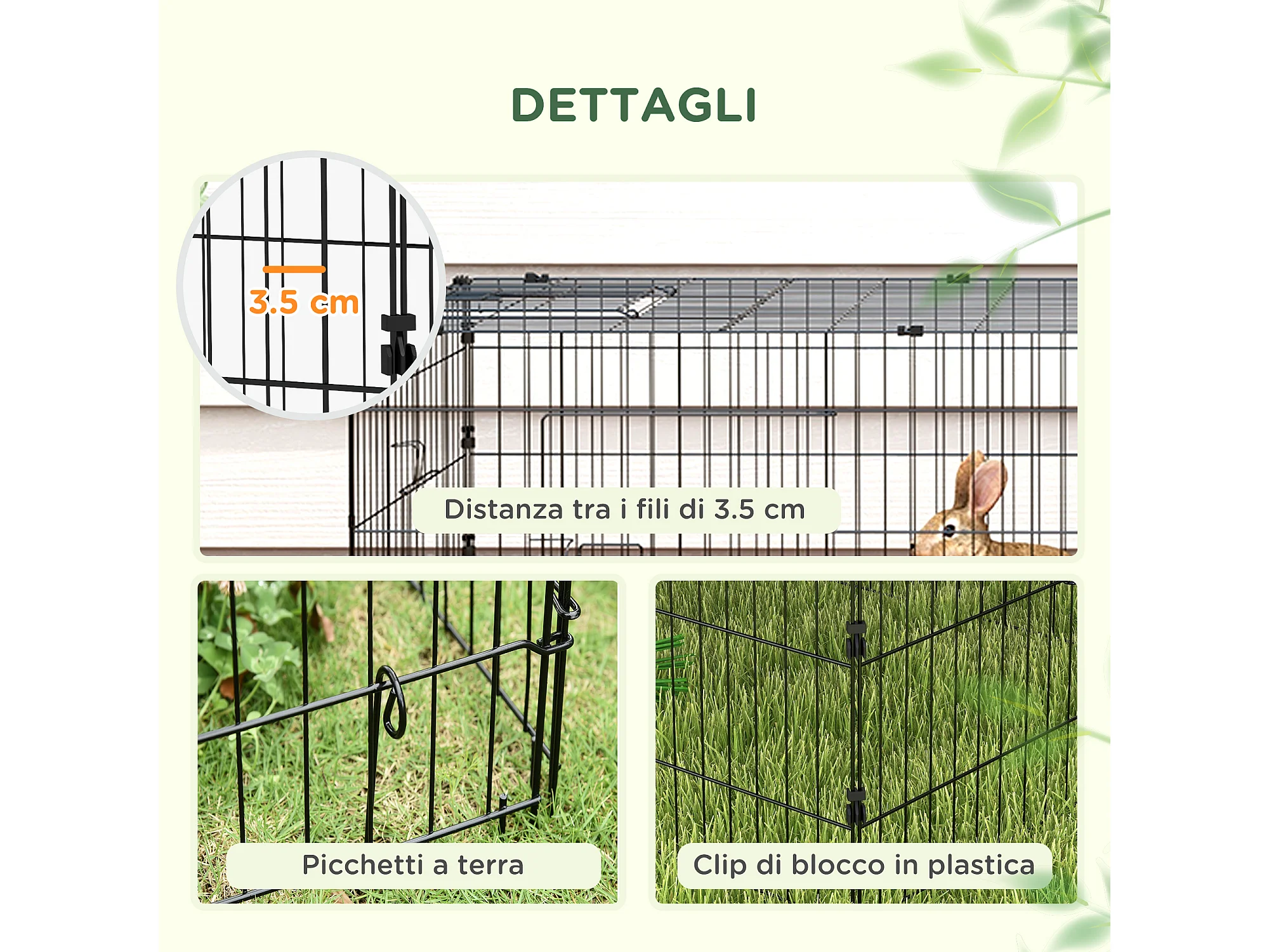 Gabbia per conigli con tettuccio 220x85x70cm in acciaio verde