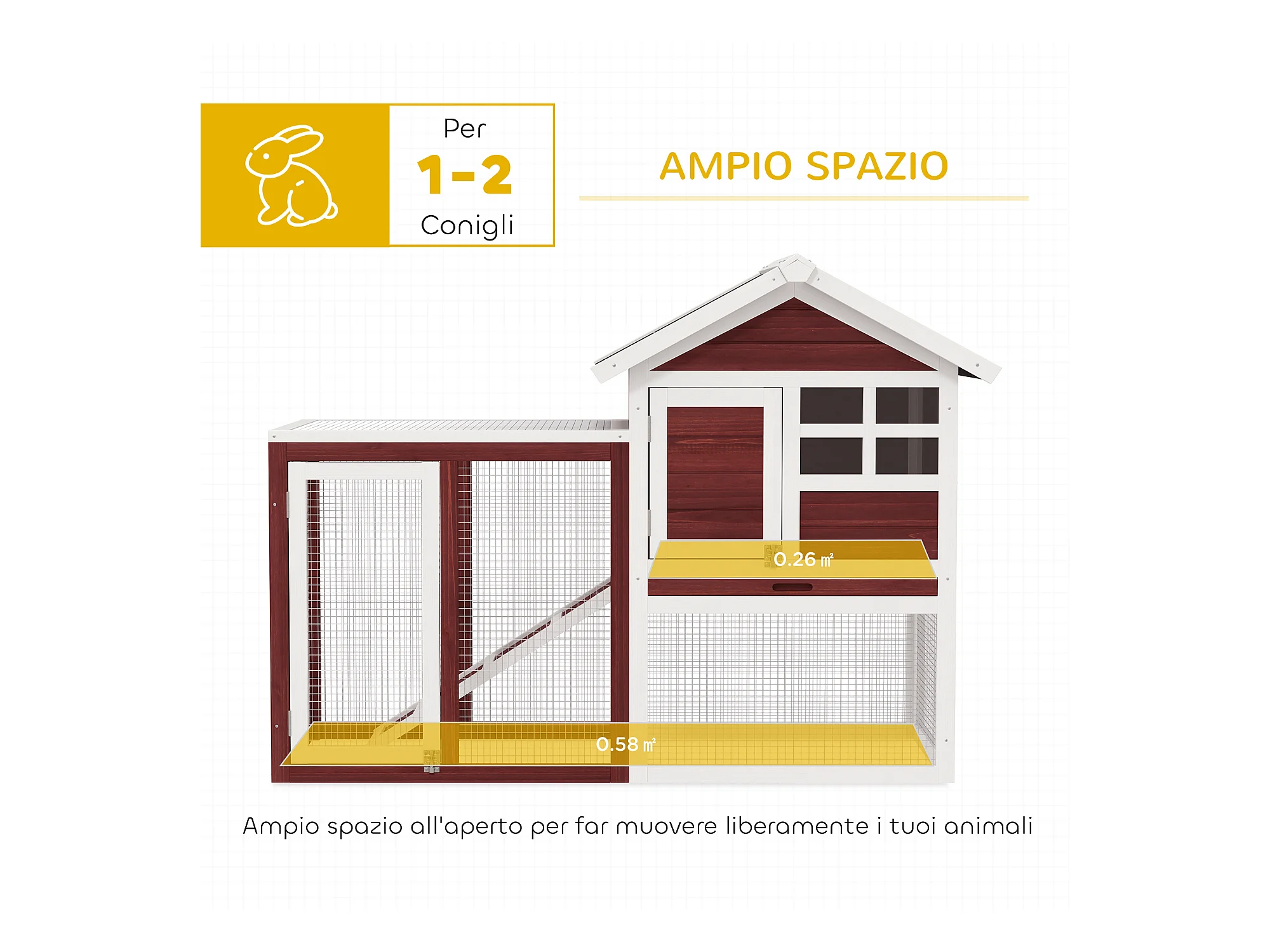 Conigliera in legno 2 piani con casetta rampa e vassoio estraibile