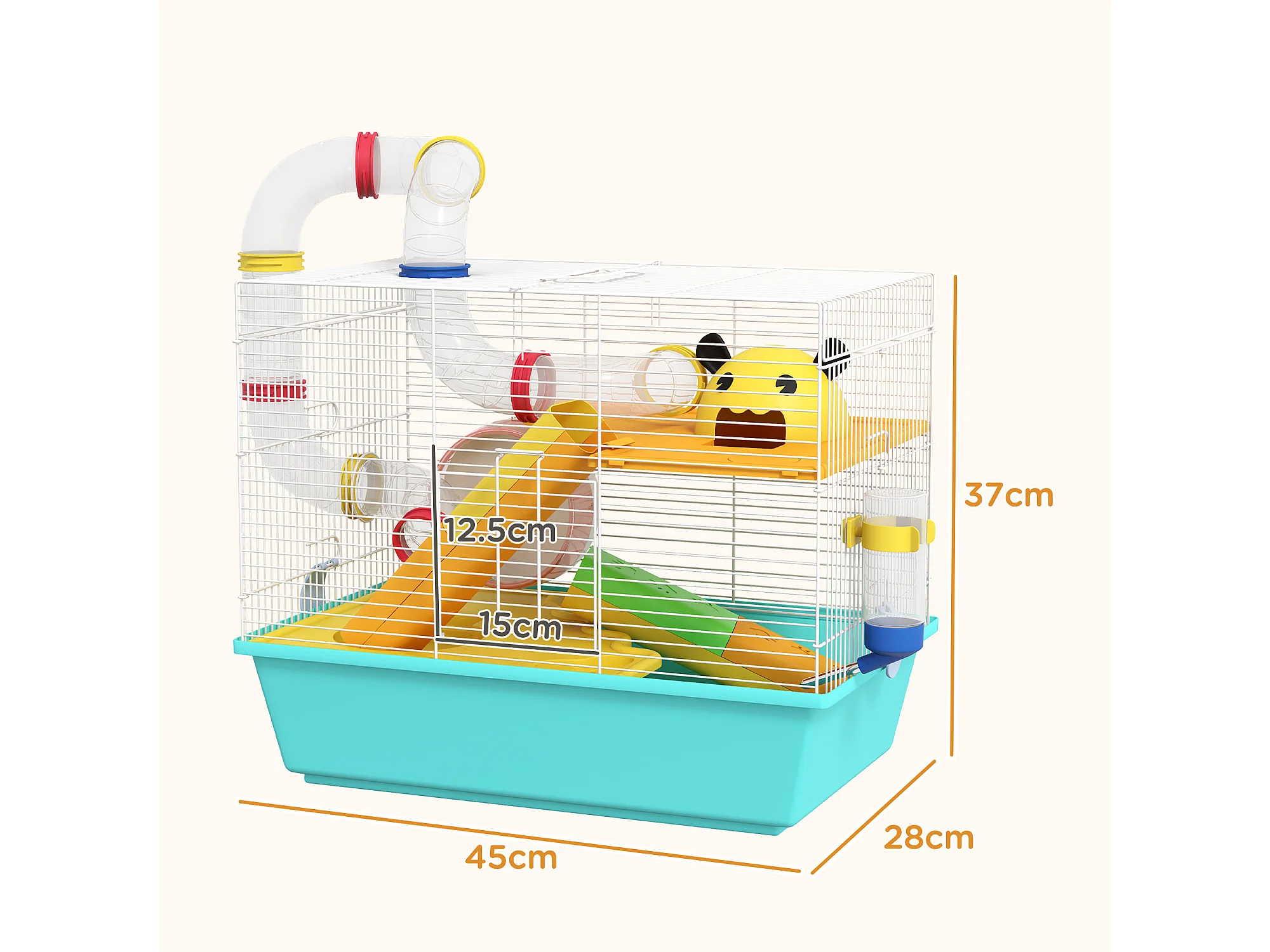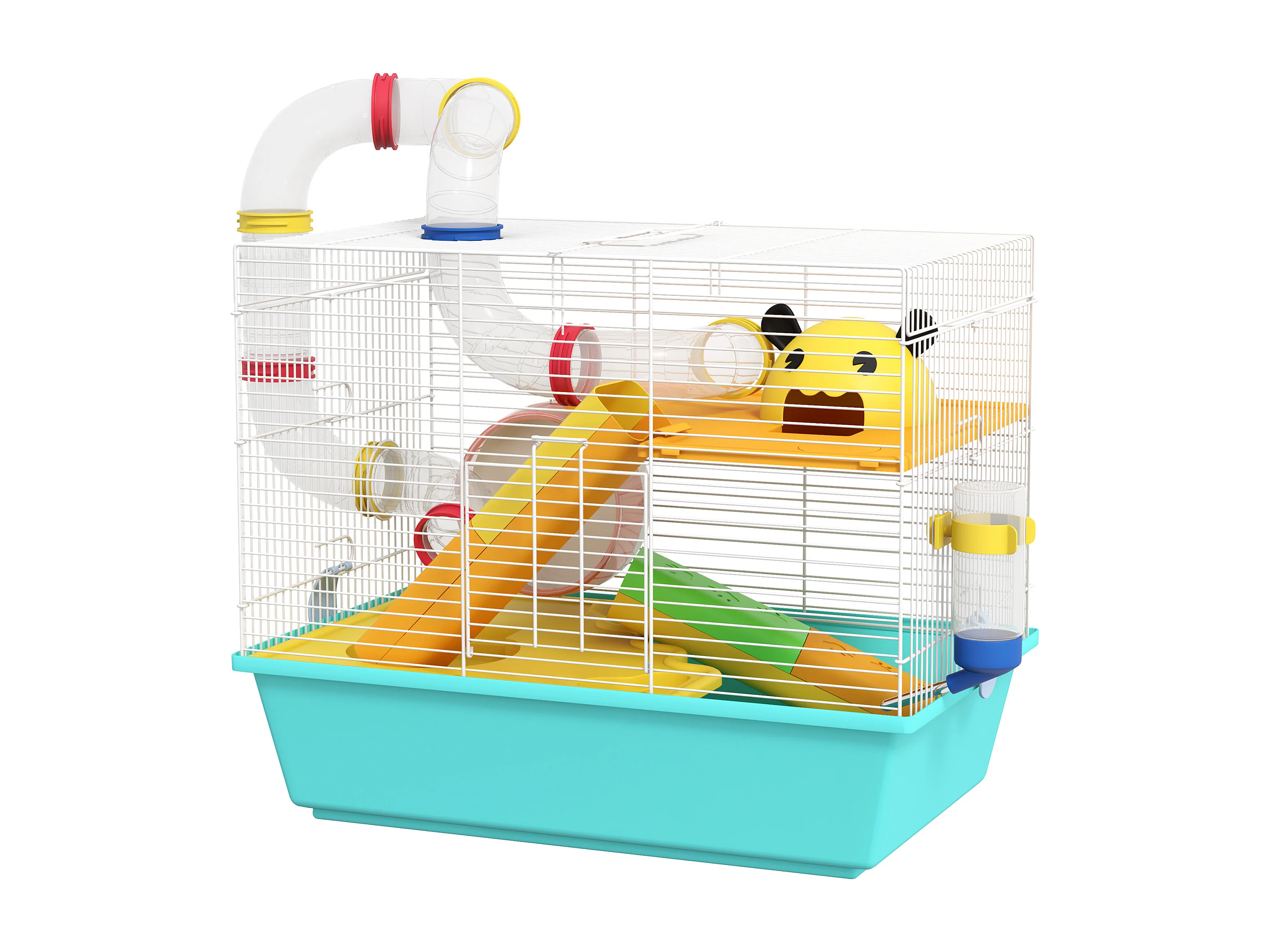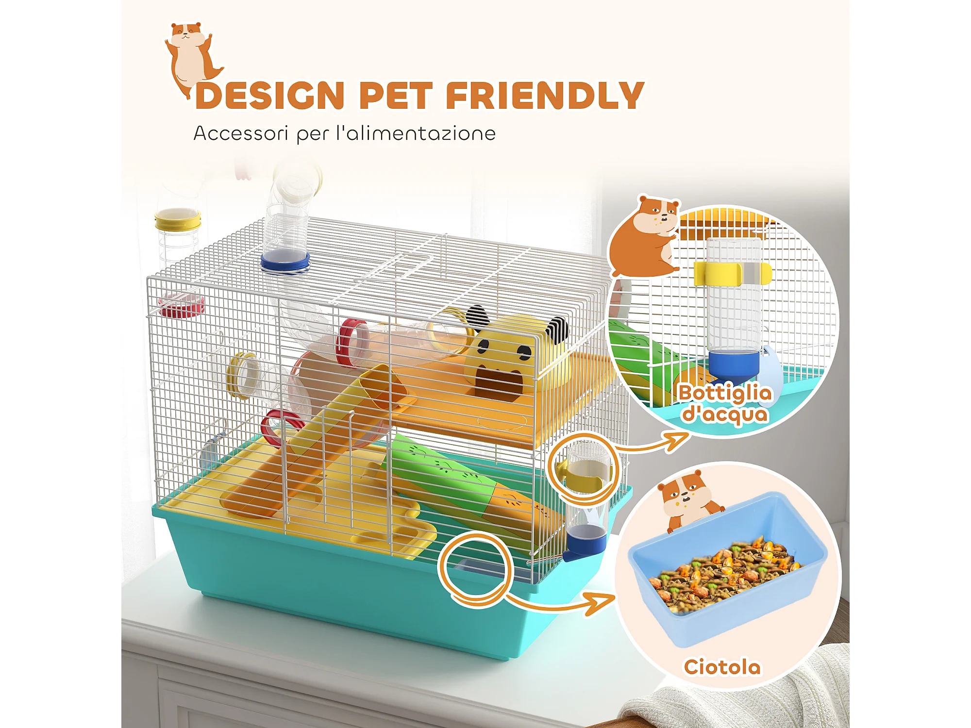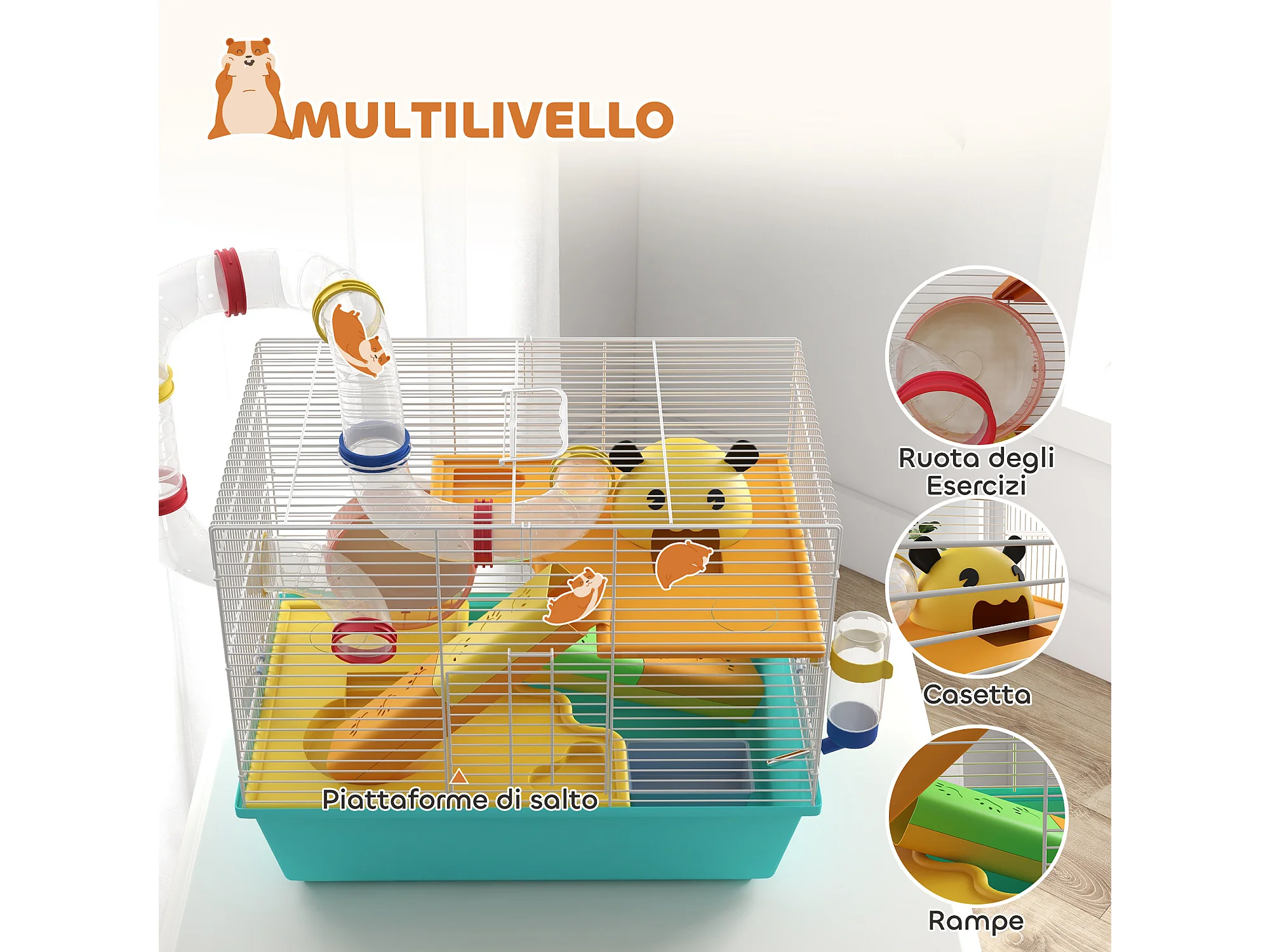 Gabbia per criceti 6 livelli con tunnel, ruota, rampe bottiglia e ciotola