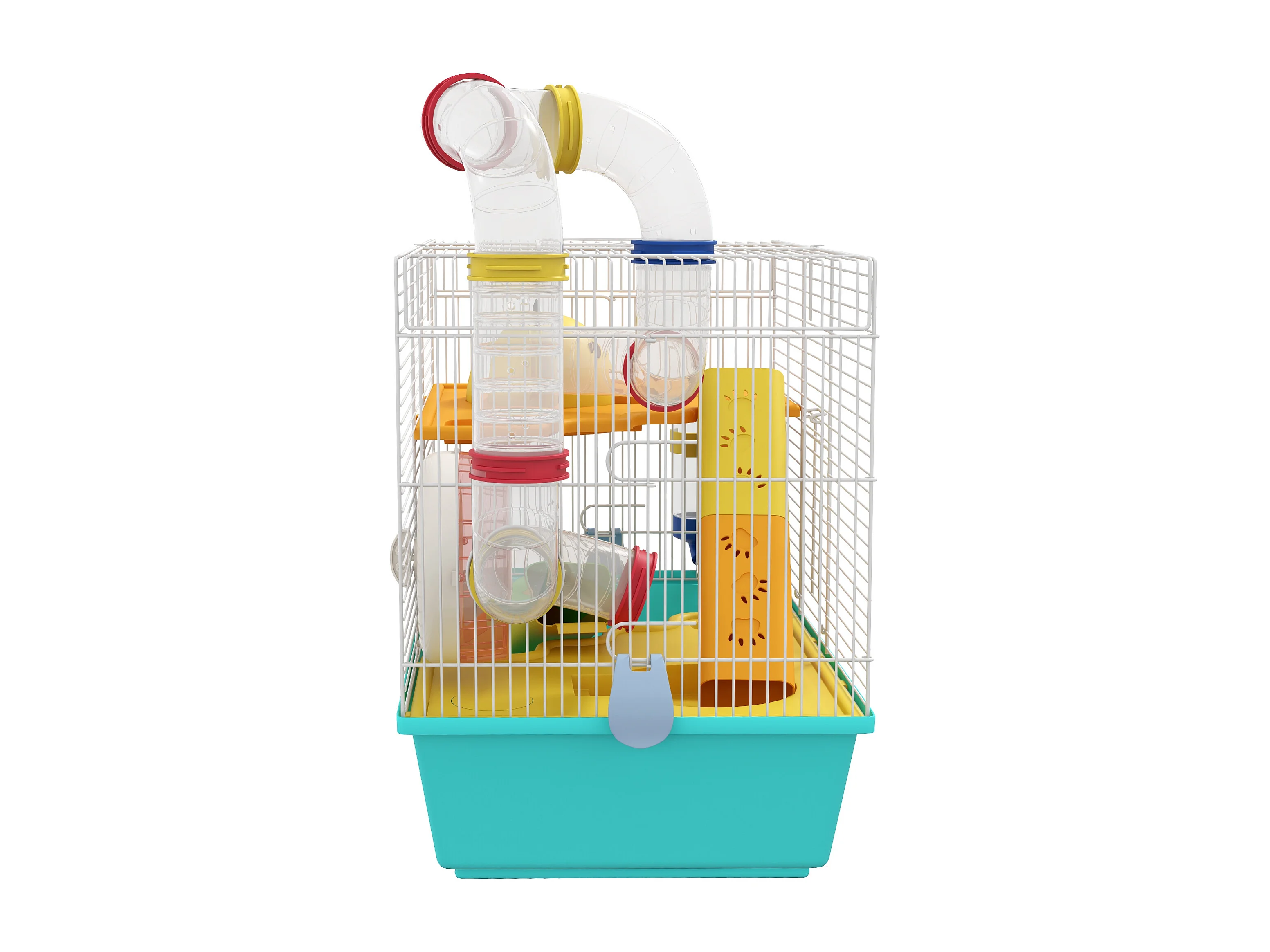 Gabbia per criceti 3 livelli con tubi casetta e ruota blu e bianco