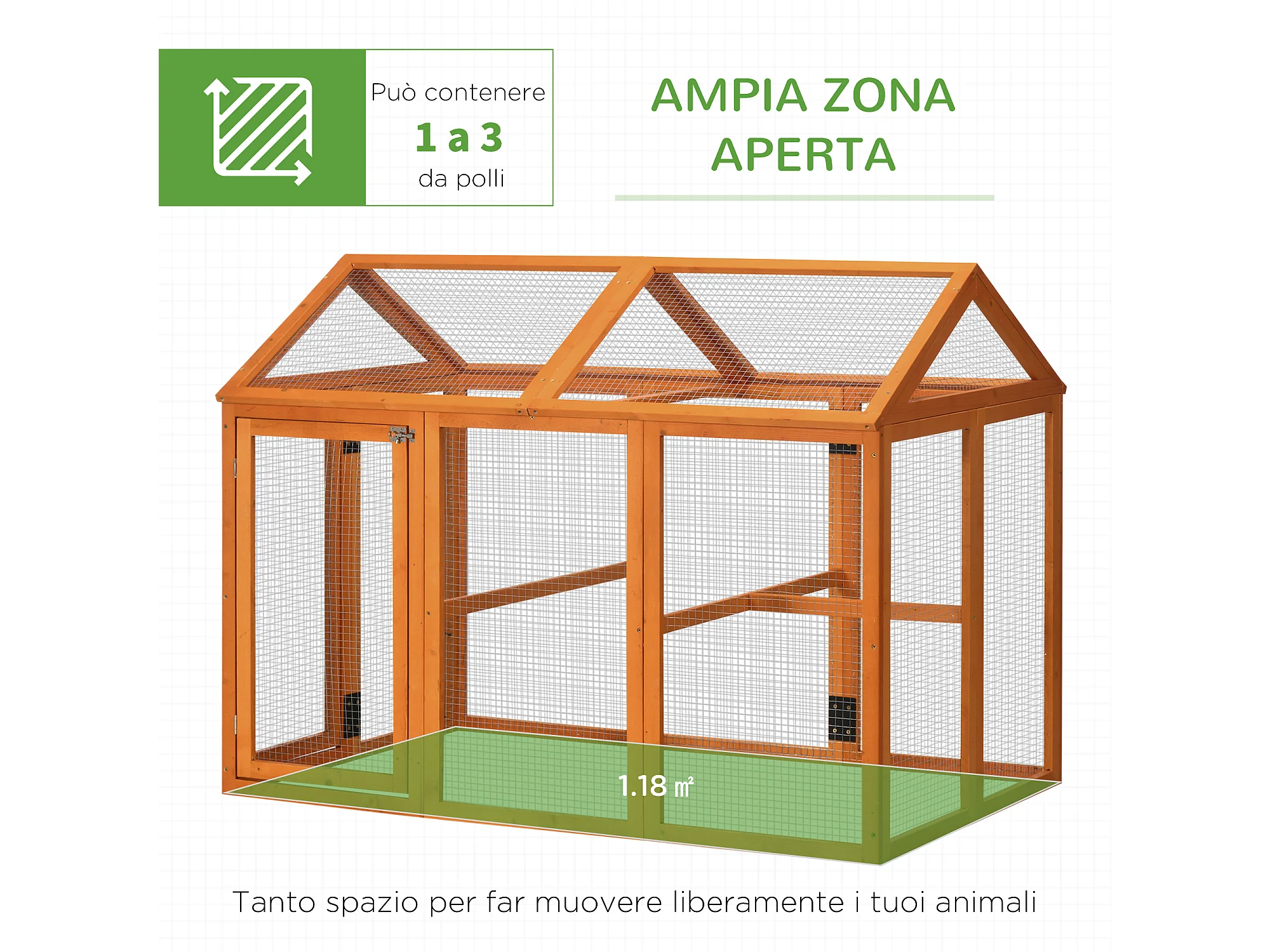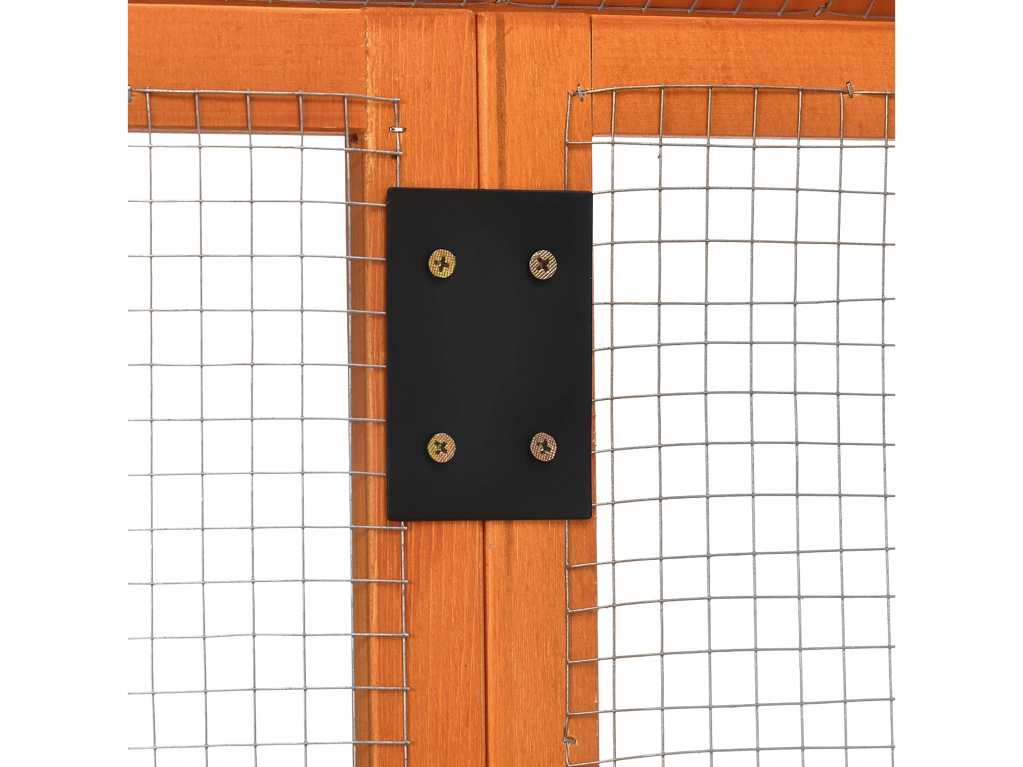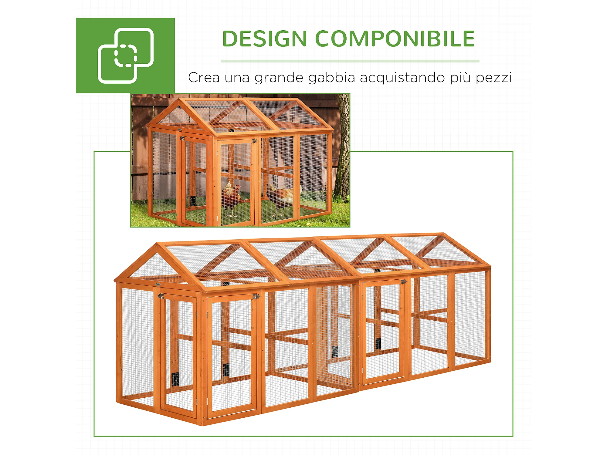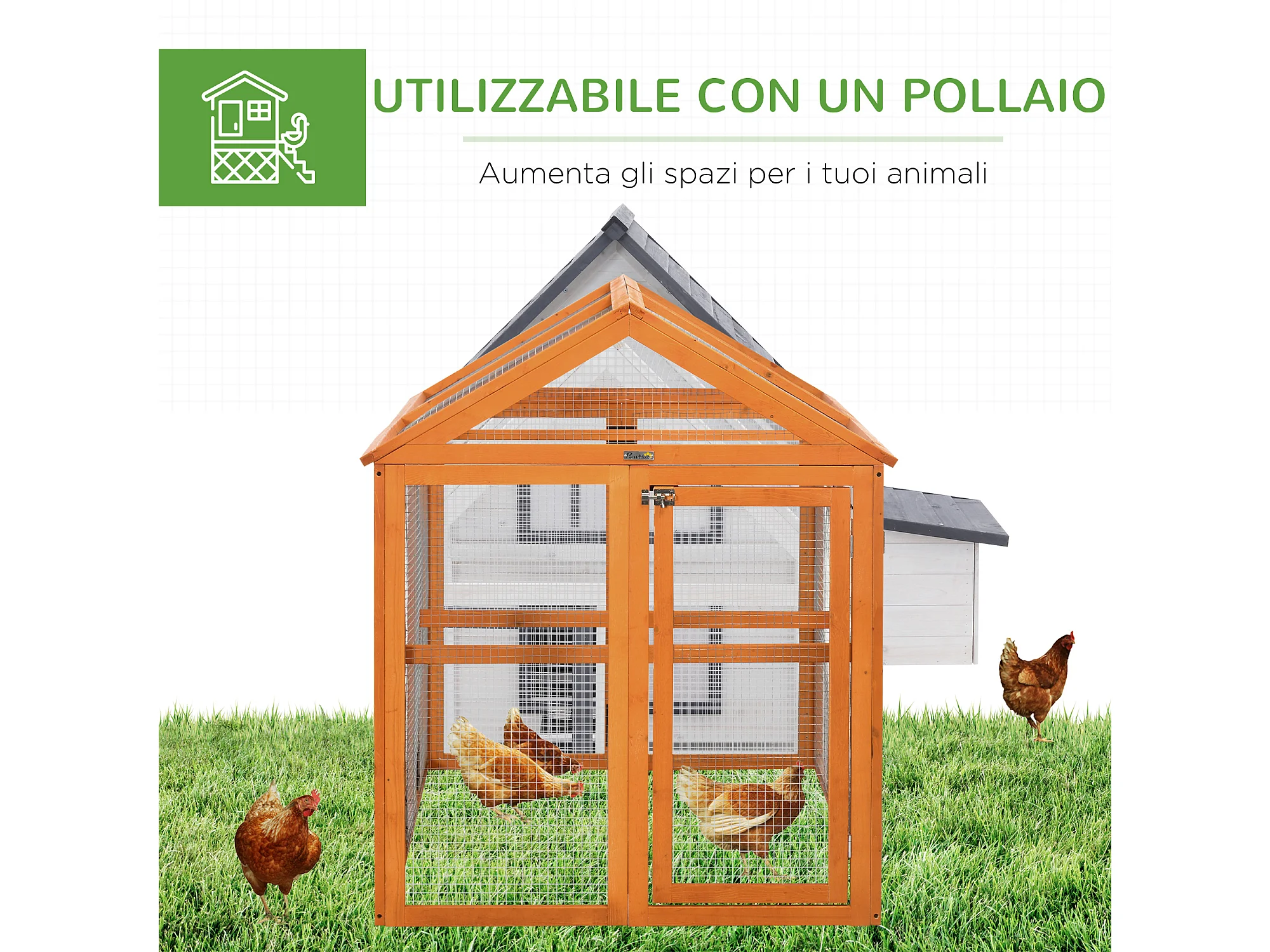 Pollaio da giardino in legno di abete con rete metallica arancione