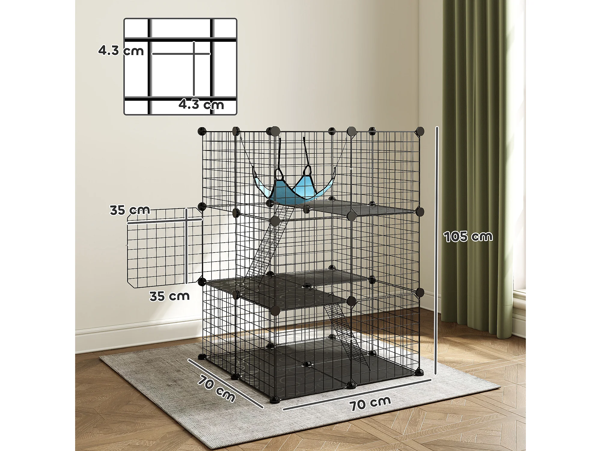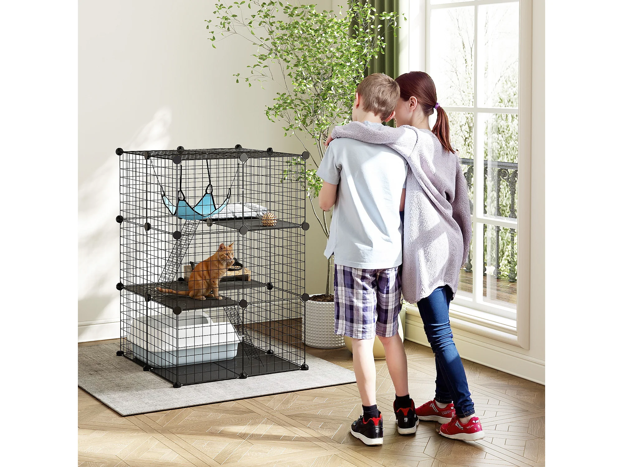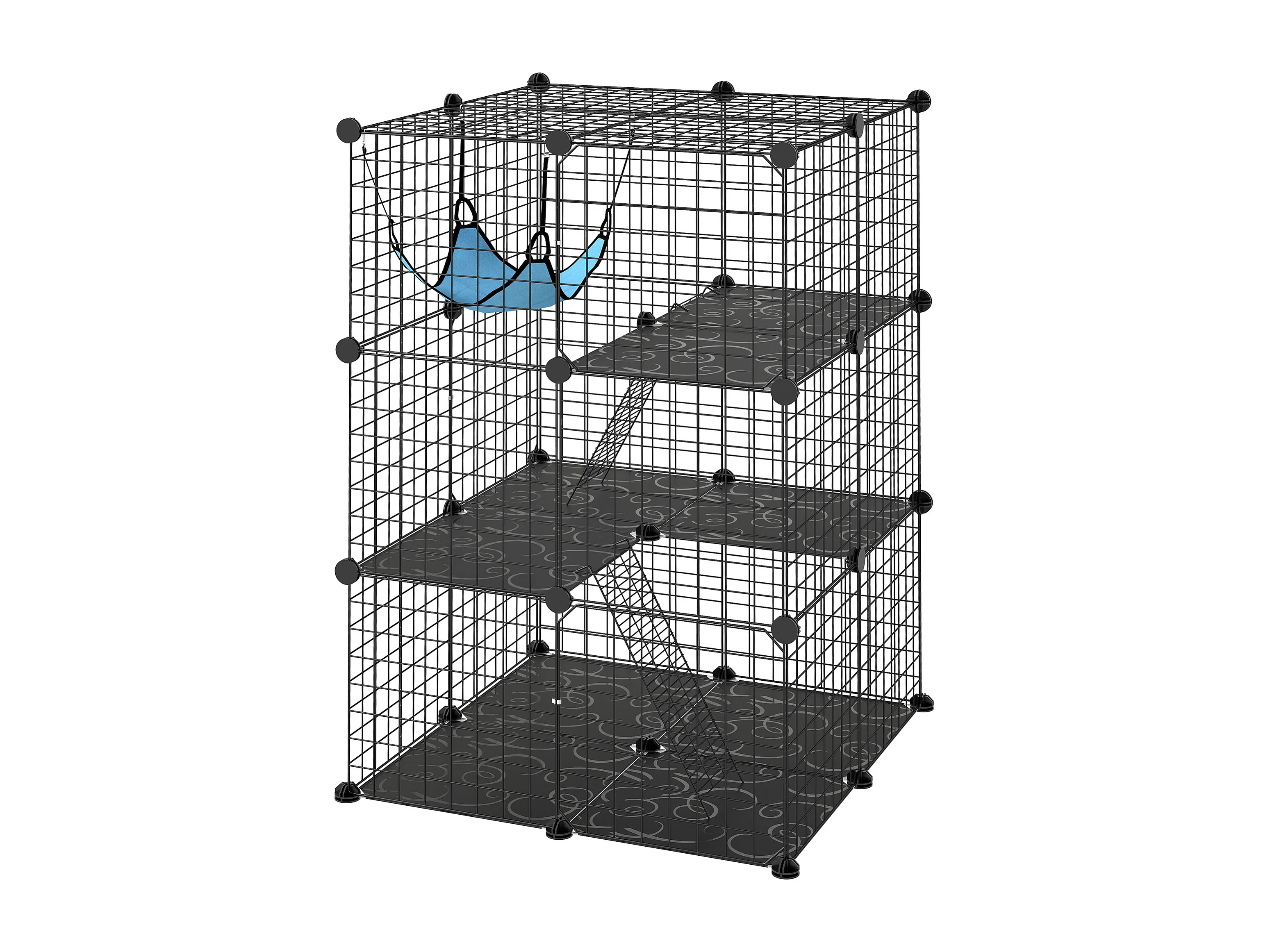 Gabbia per gatti personalizzabile a tre livelli in acciaio nero