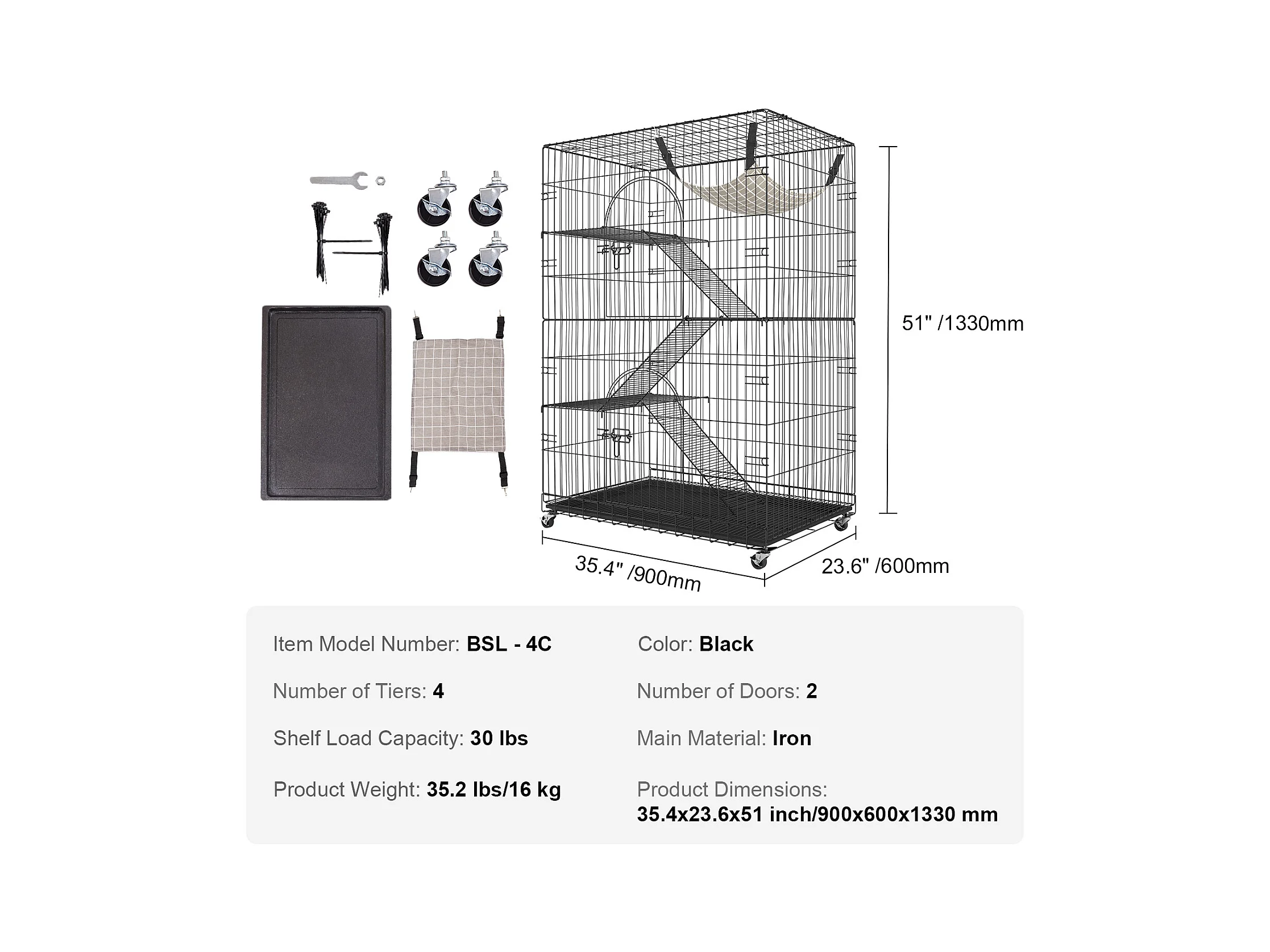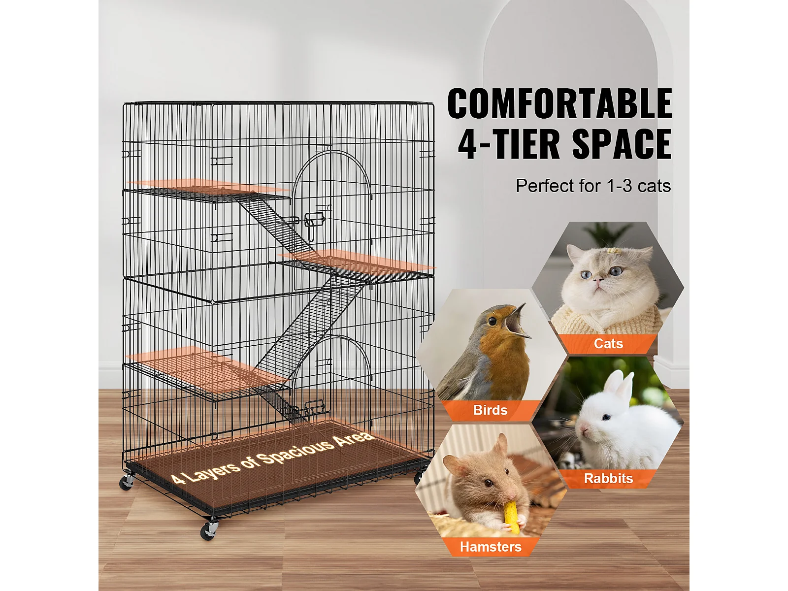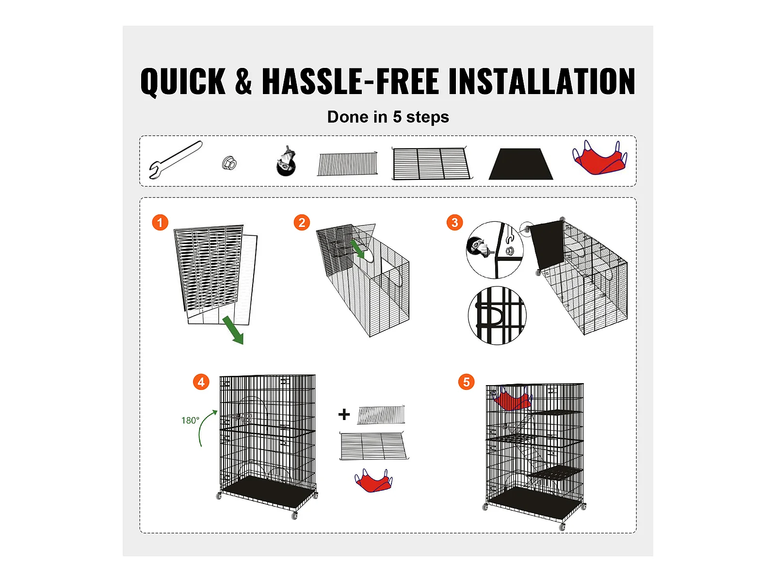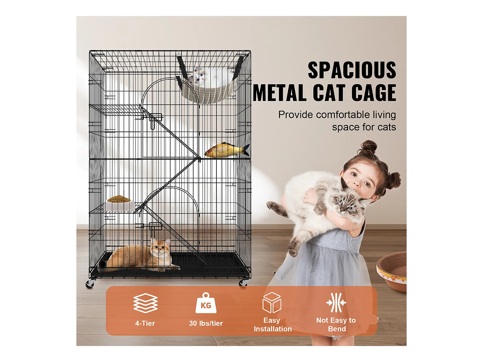 Gabbia per Gatti, SucceBuy Recinto per Gatti in Metallo a 4 Livelli con Ruote