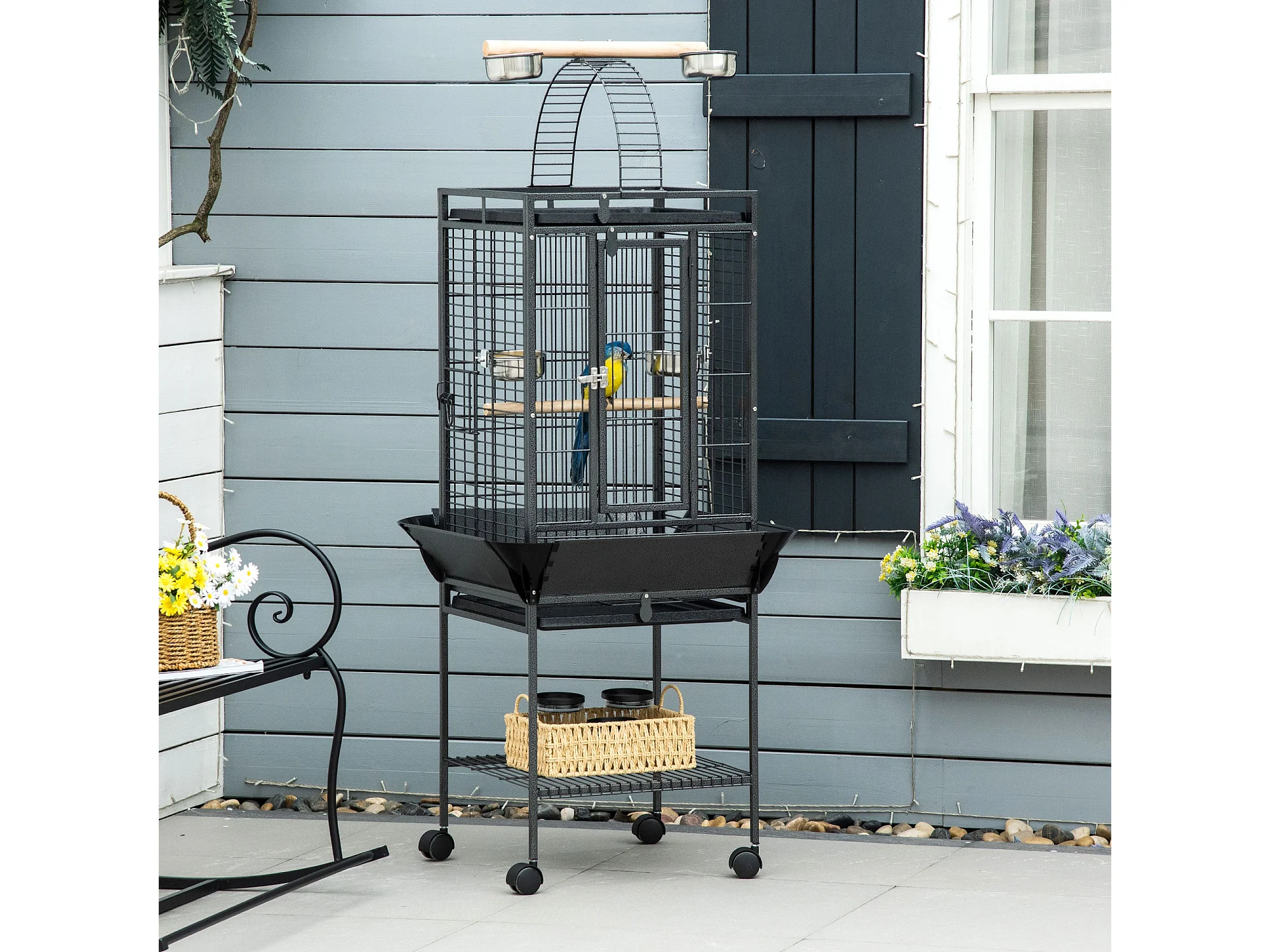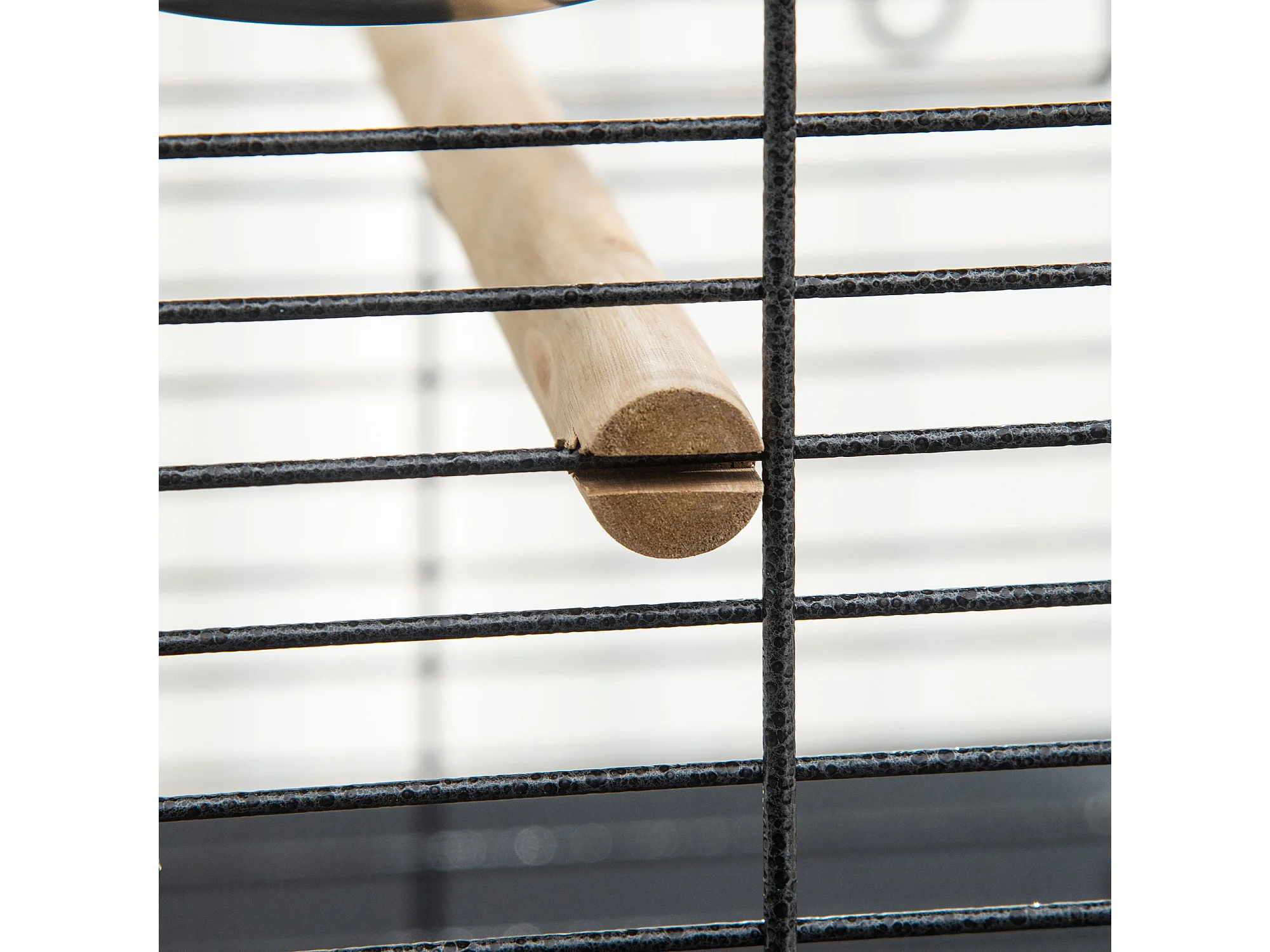 Gabbia per uccelli nera con posatoi e vassoio rimovibile