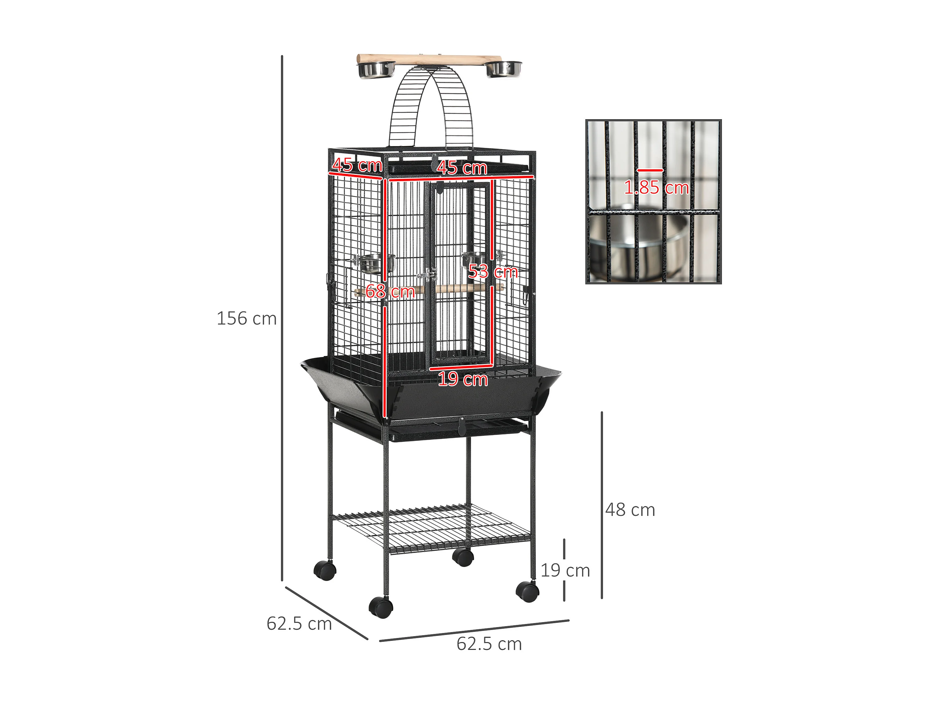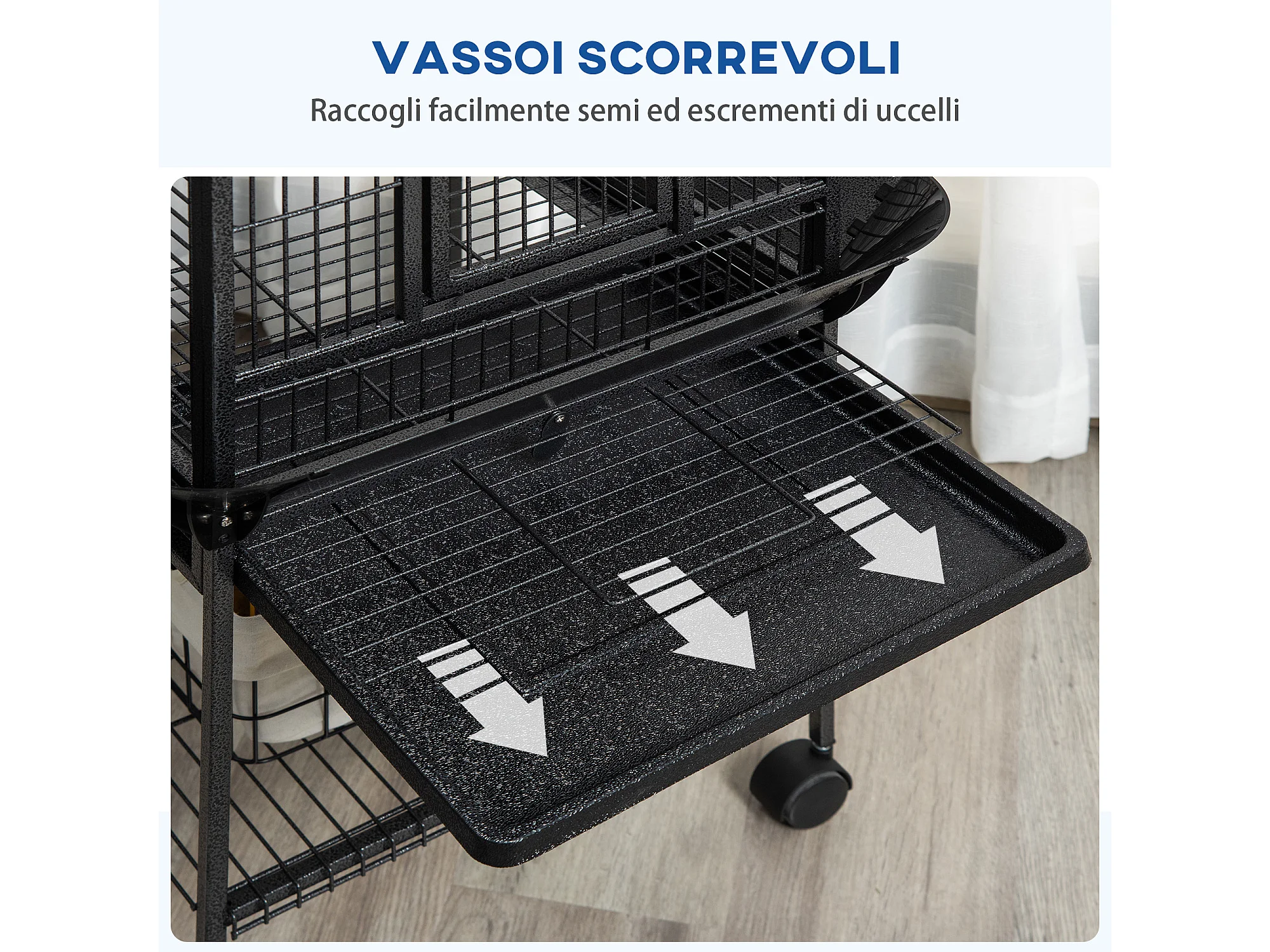 Gabbia per uccelli vassoio estraibile acciaio nero