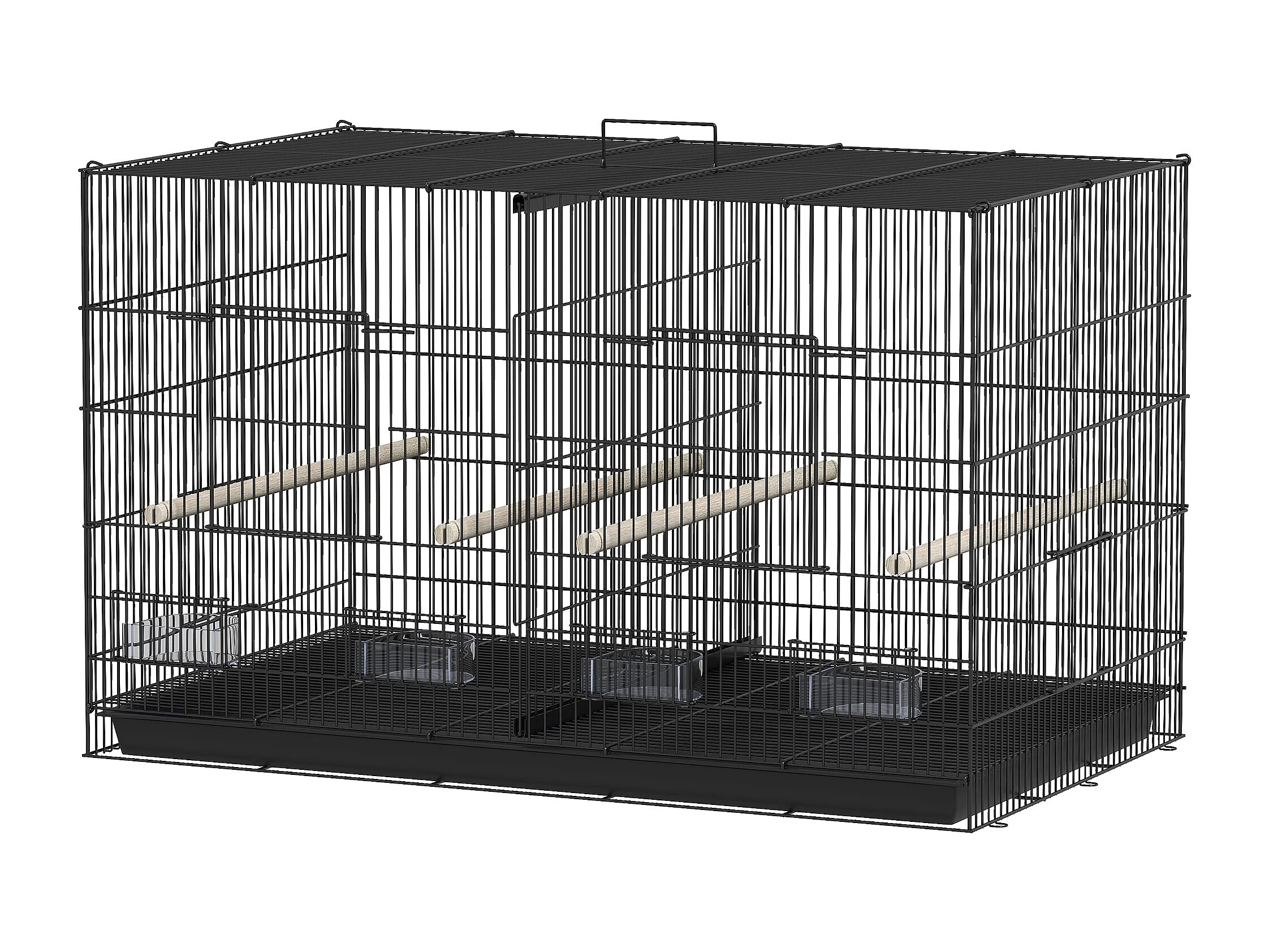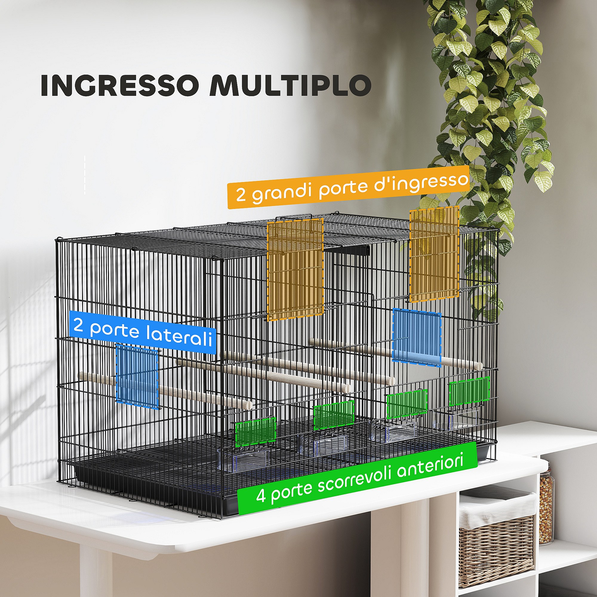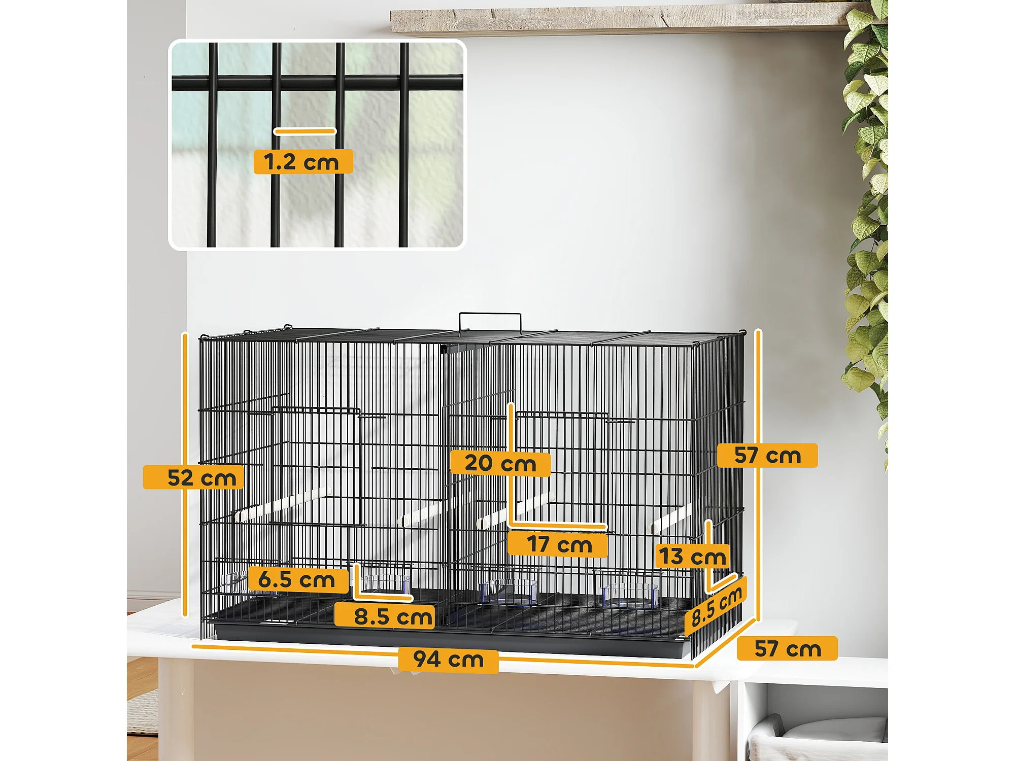 Gabbia per uccelli con divisorio e ripiano inferiore 94x57x57 cm nero