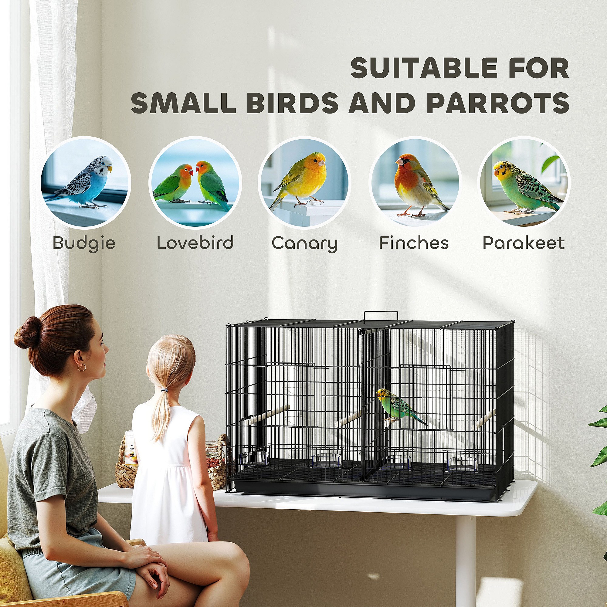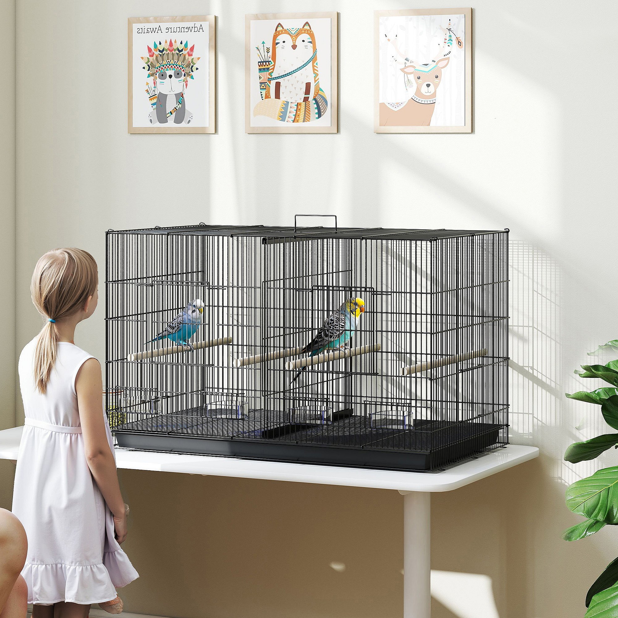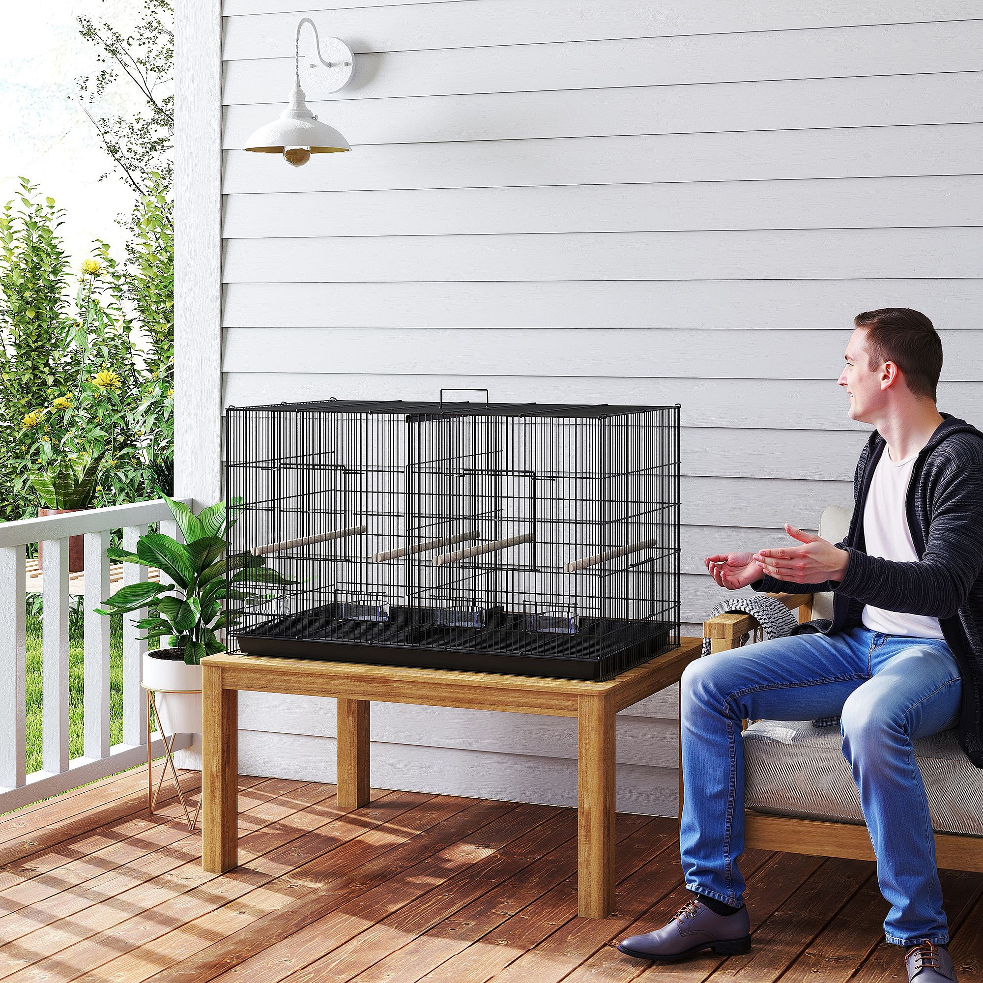 Gabbia per uccelli con divisorio e ripiano inferiore 94x57x57 cm nero