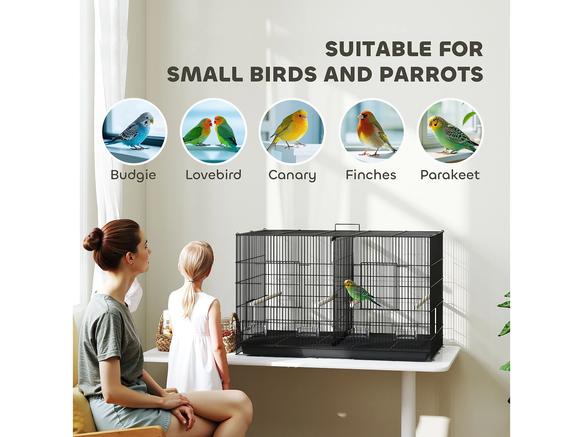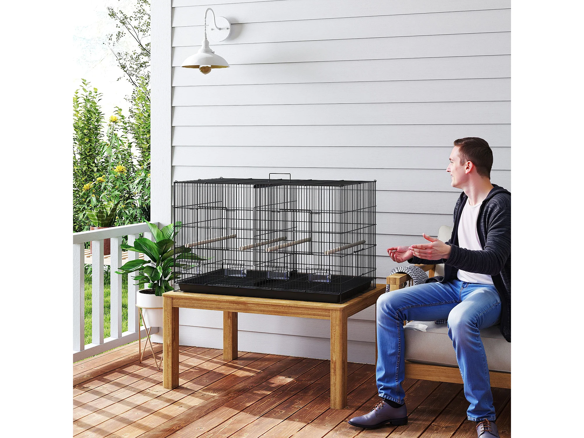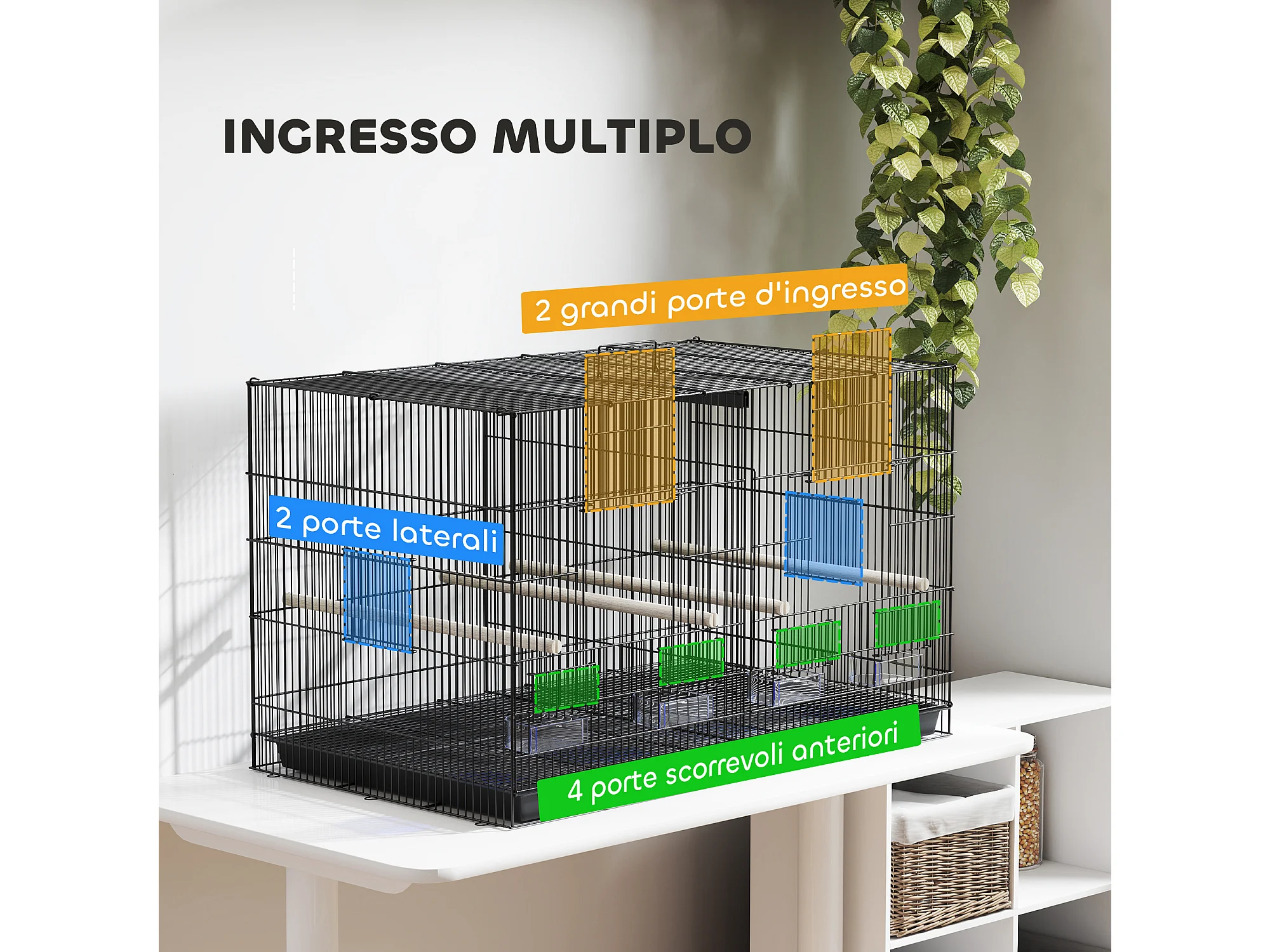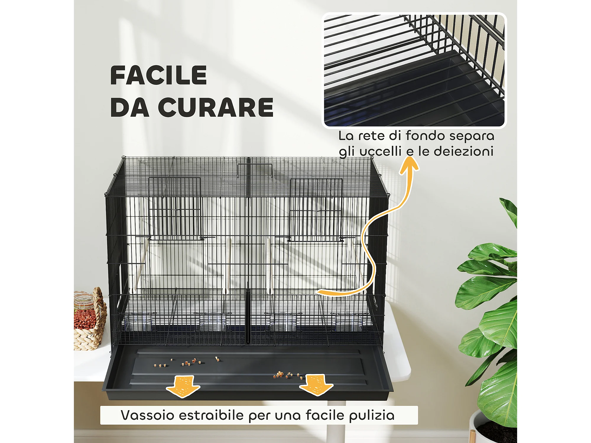Gabbia voliera per uccelli 2 in 1 con ruote e vassoi estraibili nero