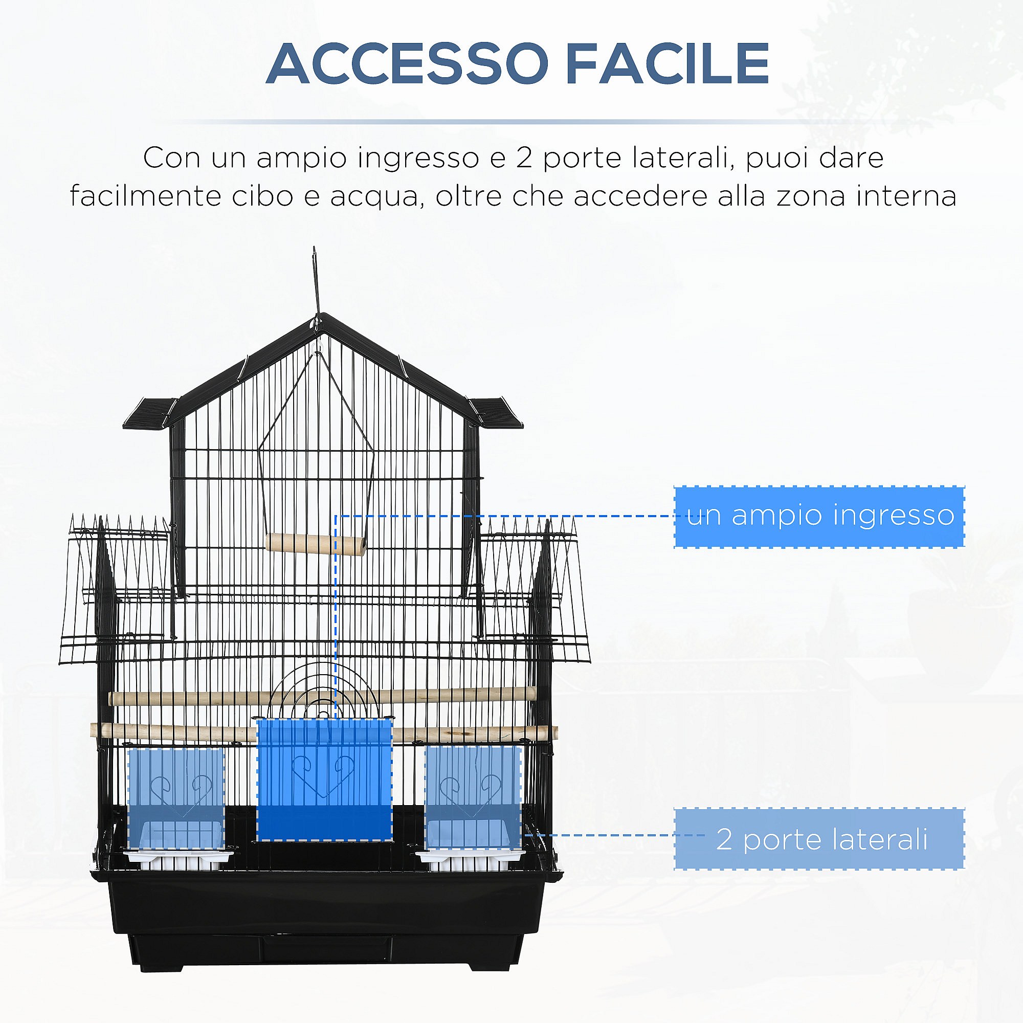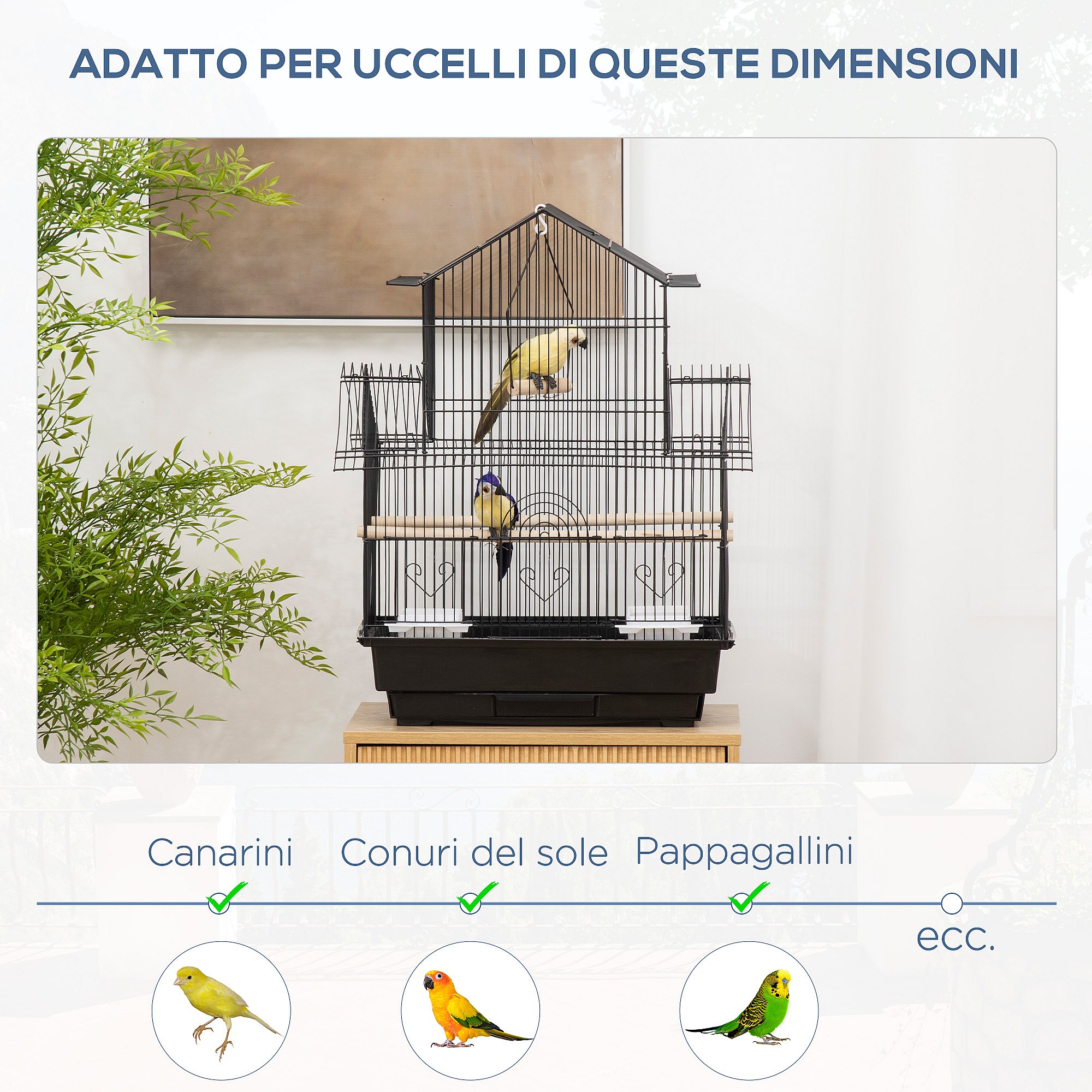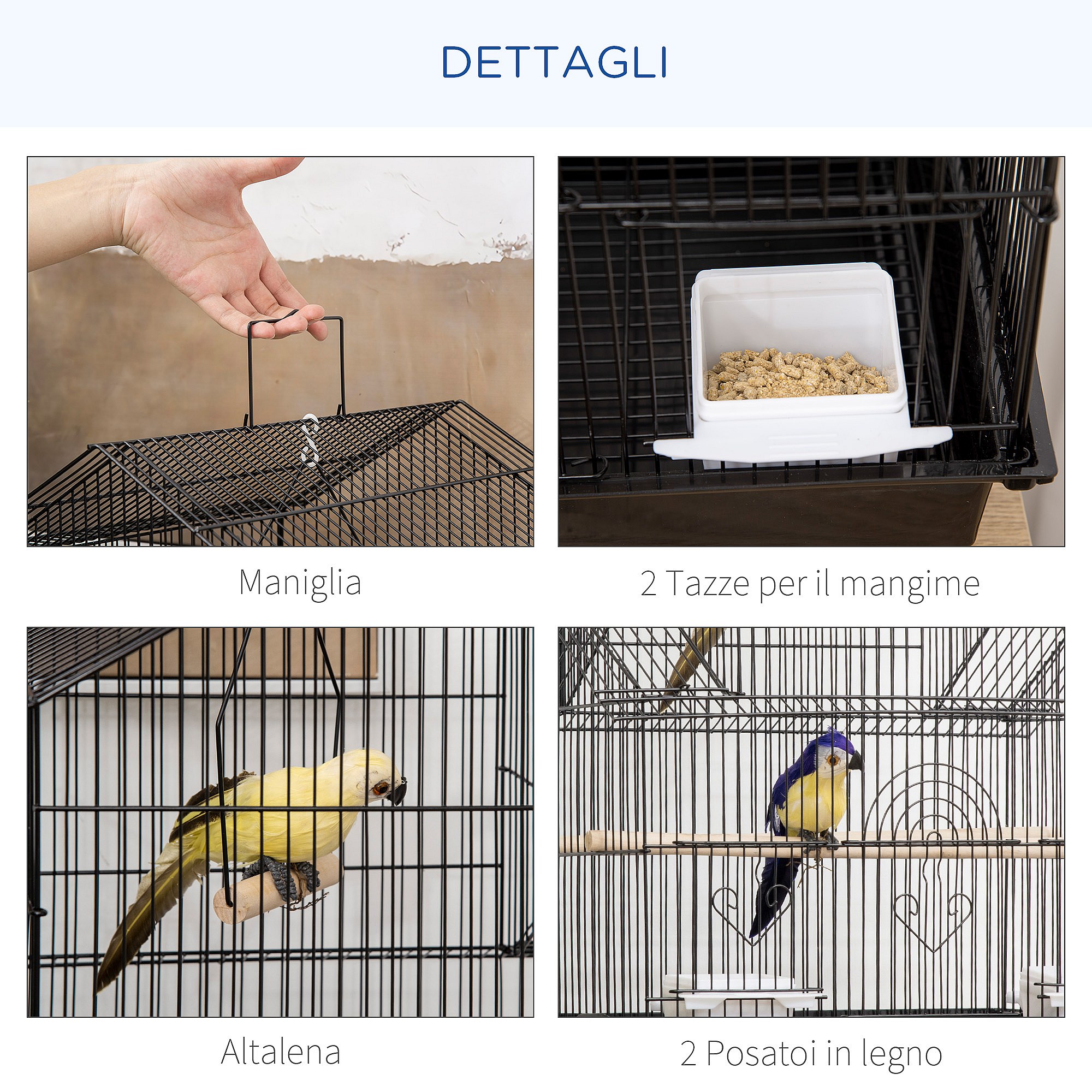 Gabbia per uccelli con maniglia di trasporto e vassoio estraibile nera