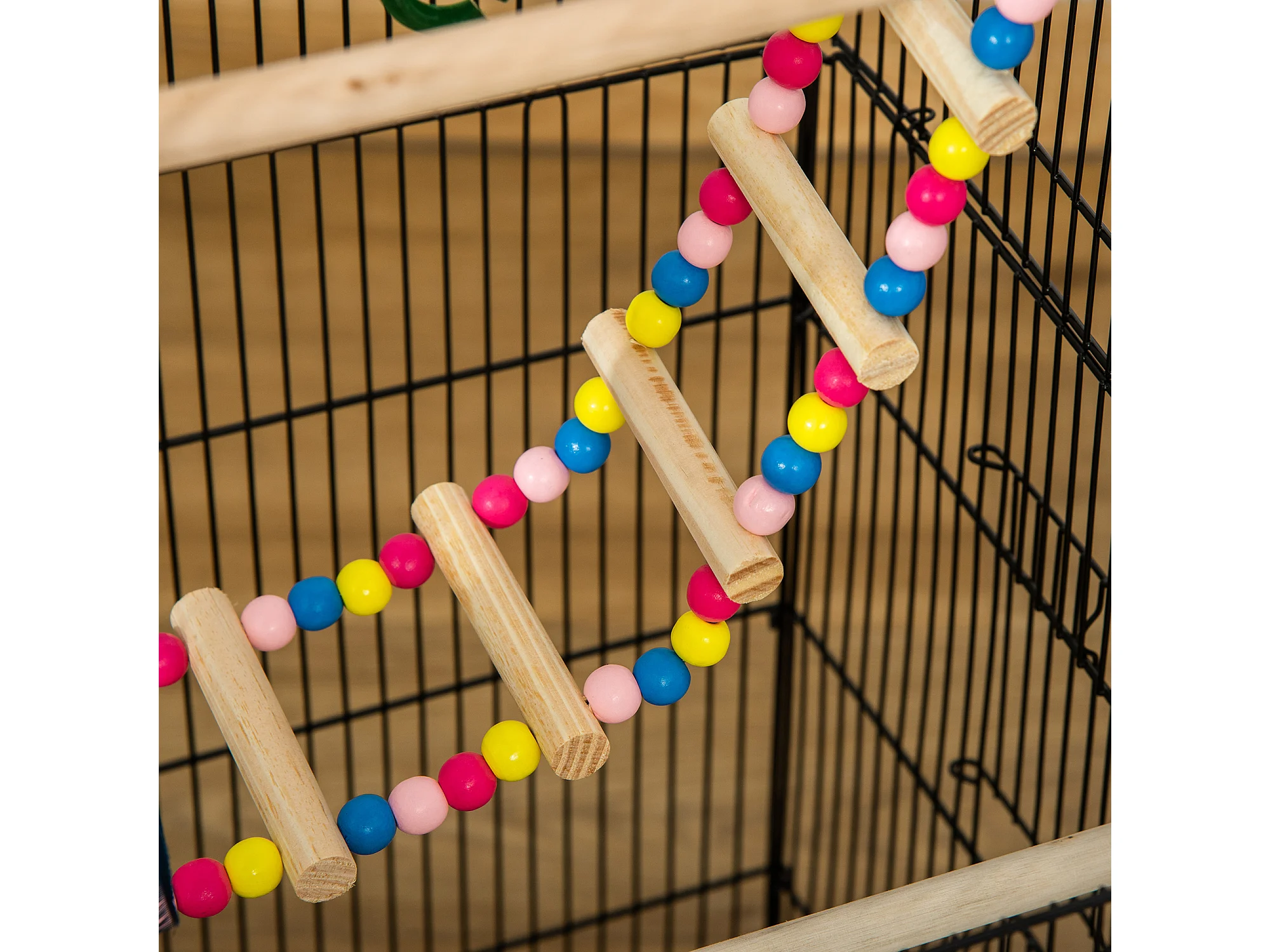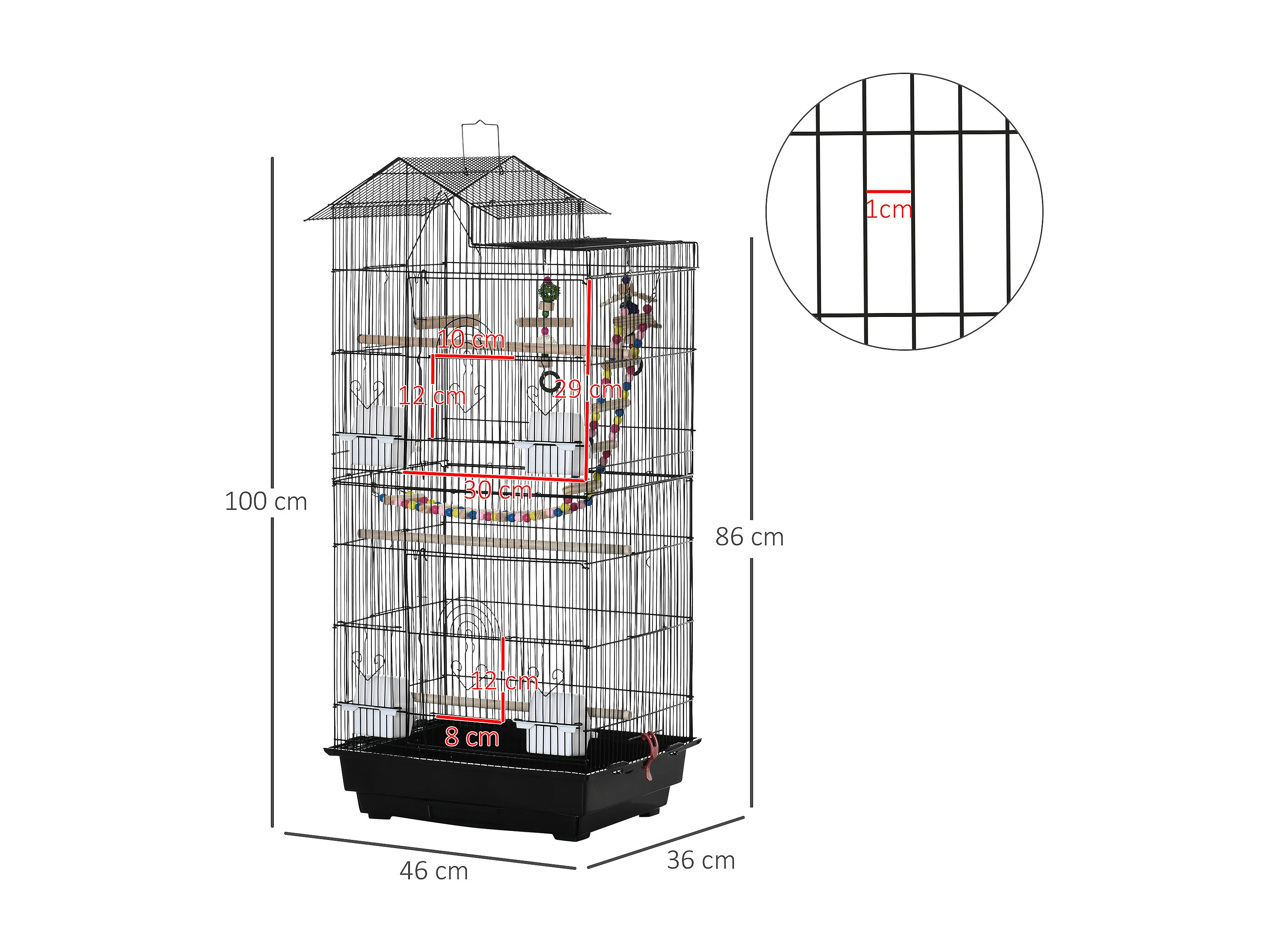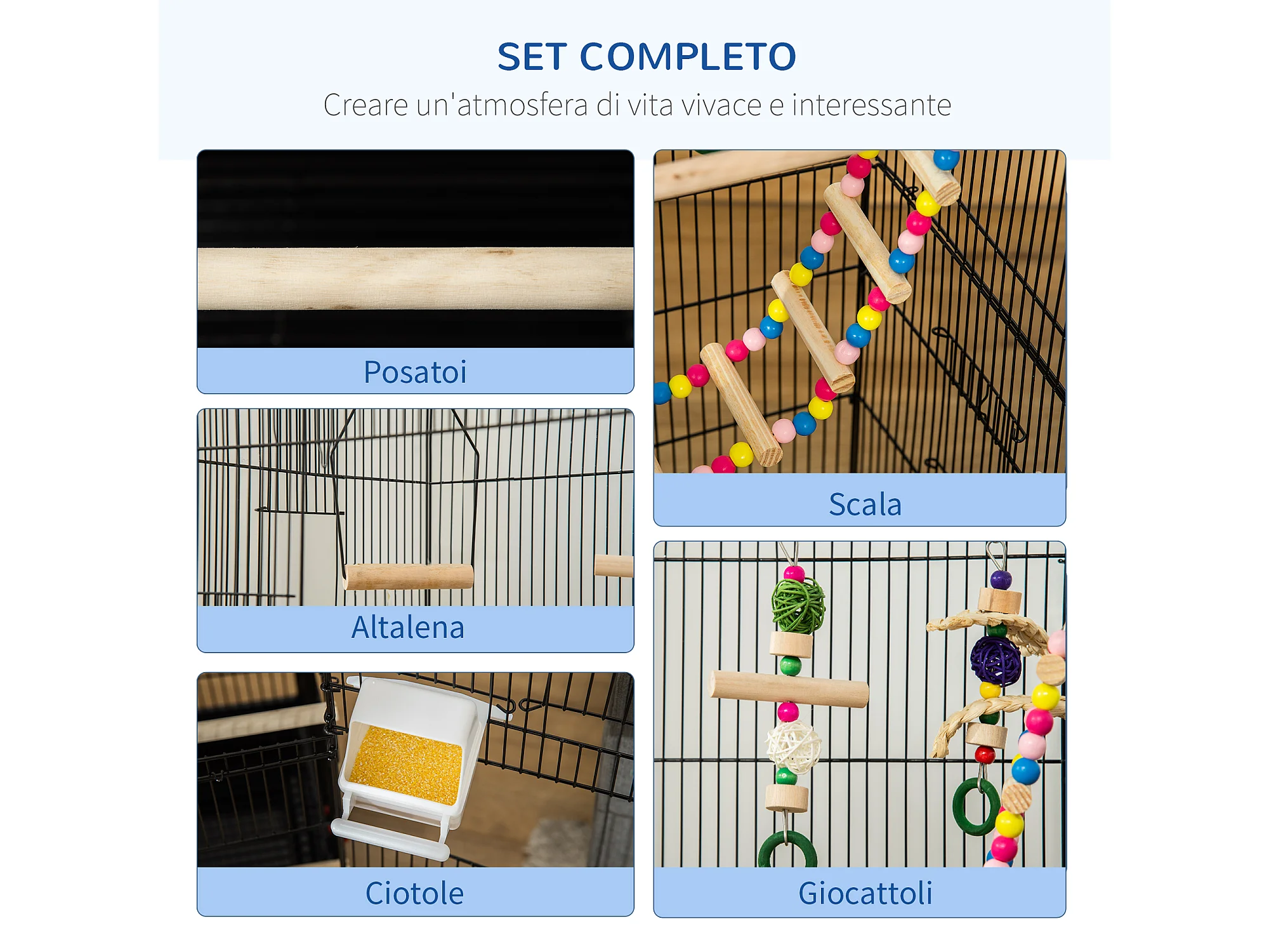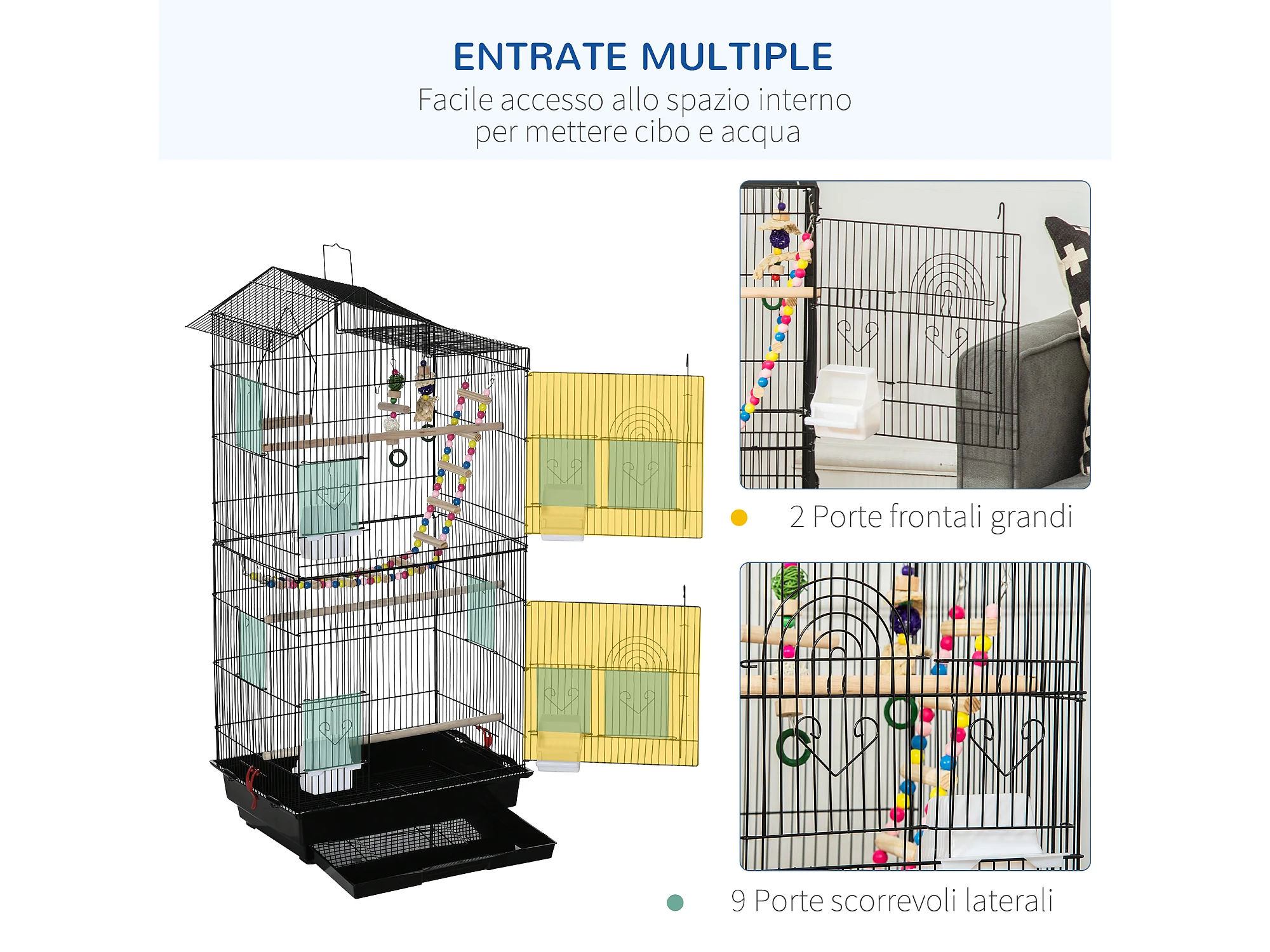 Gabbia per uccelli in acciaio con posatoi giocattoli e vassoio rimovibile