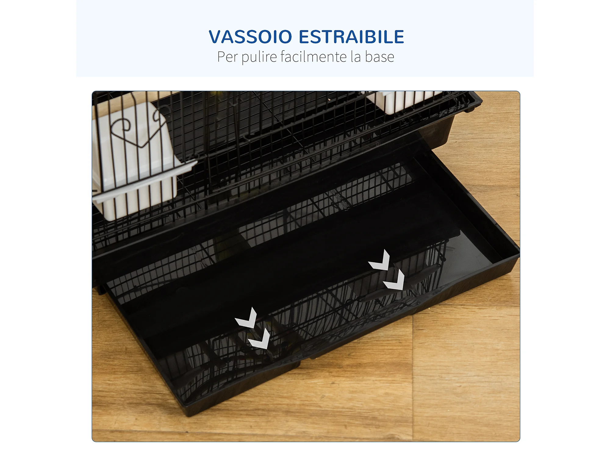 Gabbia per uccelli vassoio estraibile acciaio nero