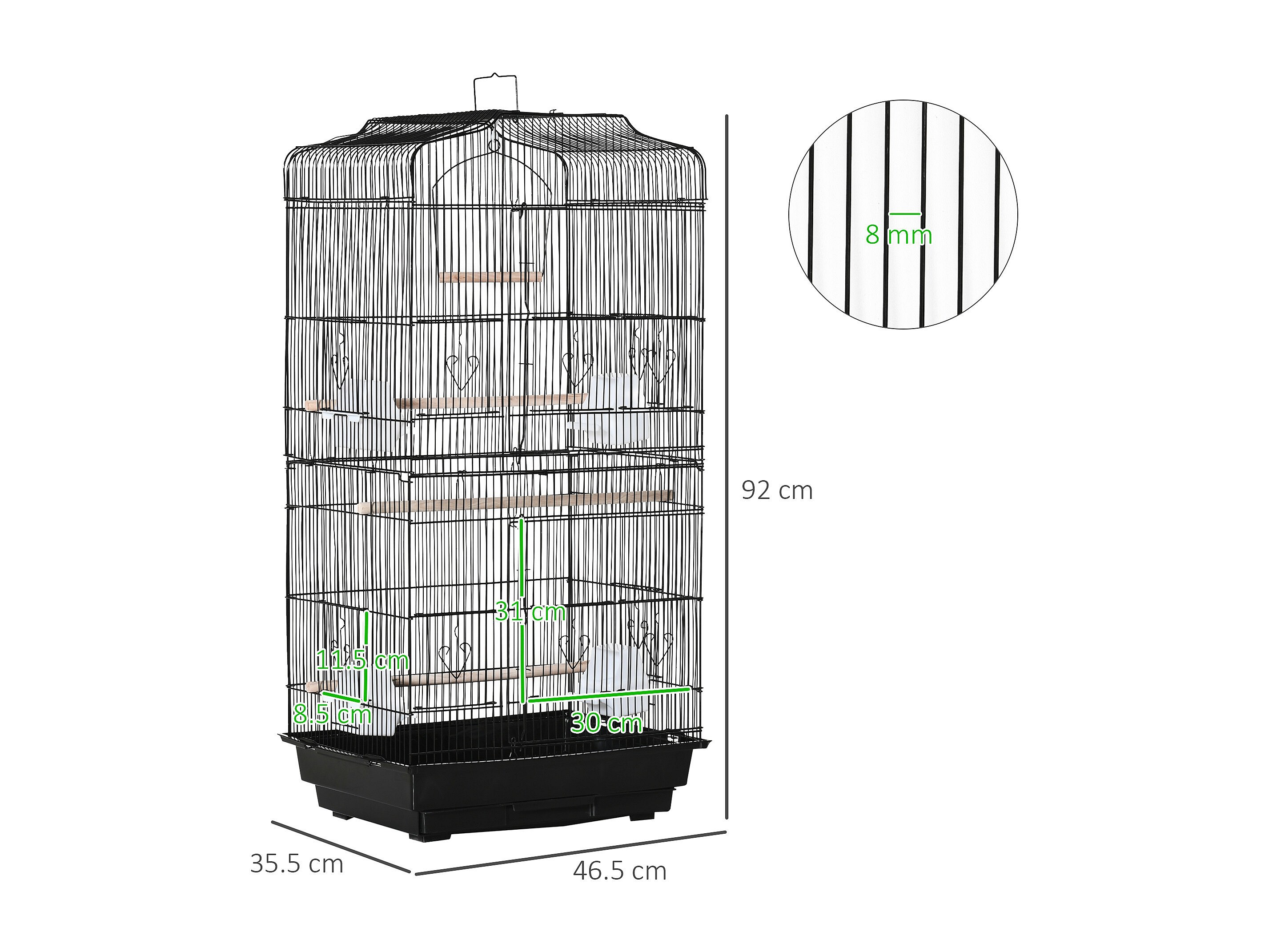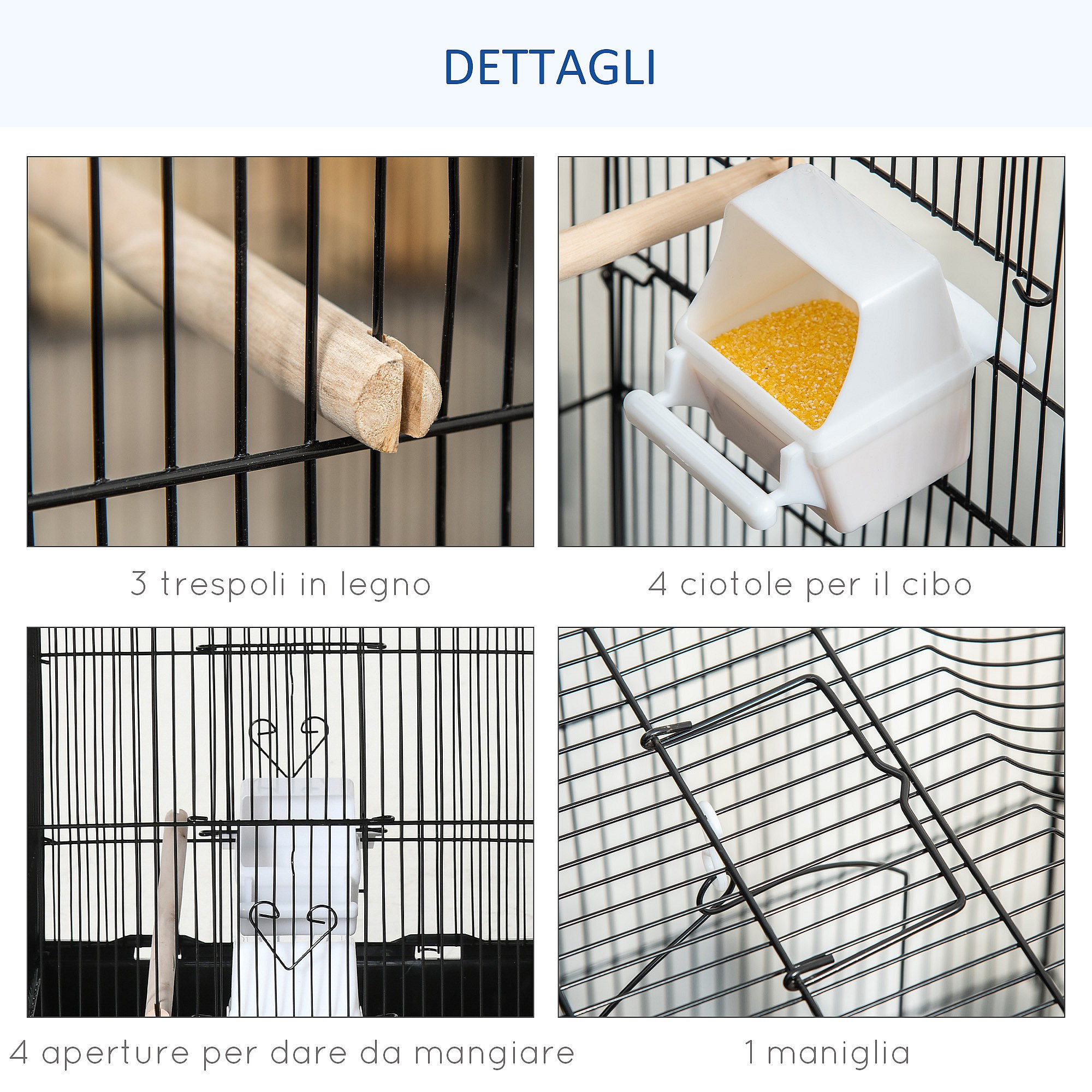 Gabbia per uccelli con trespoli e altalena in metallo e plastica