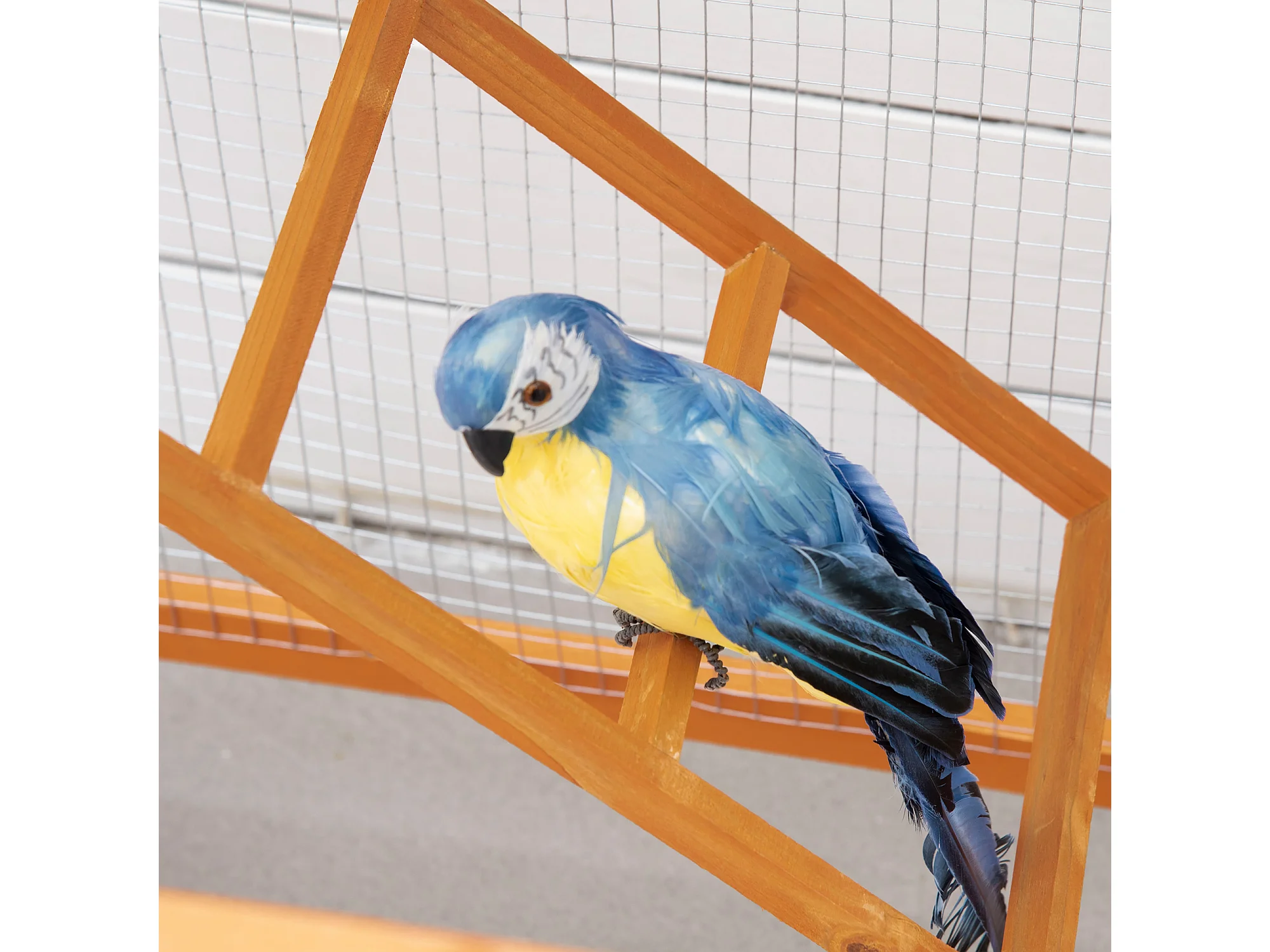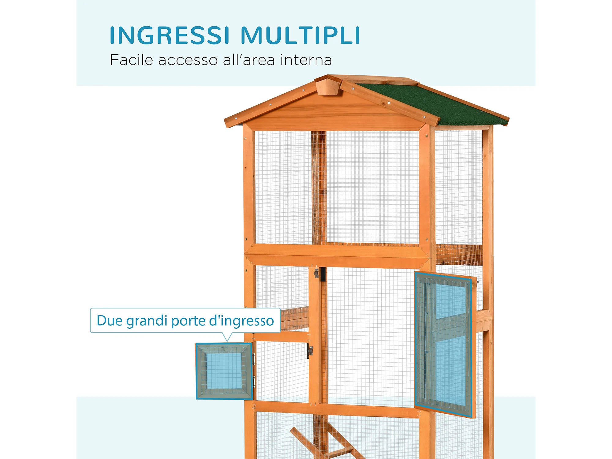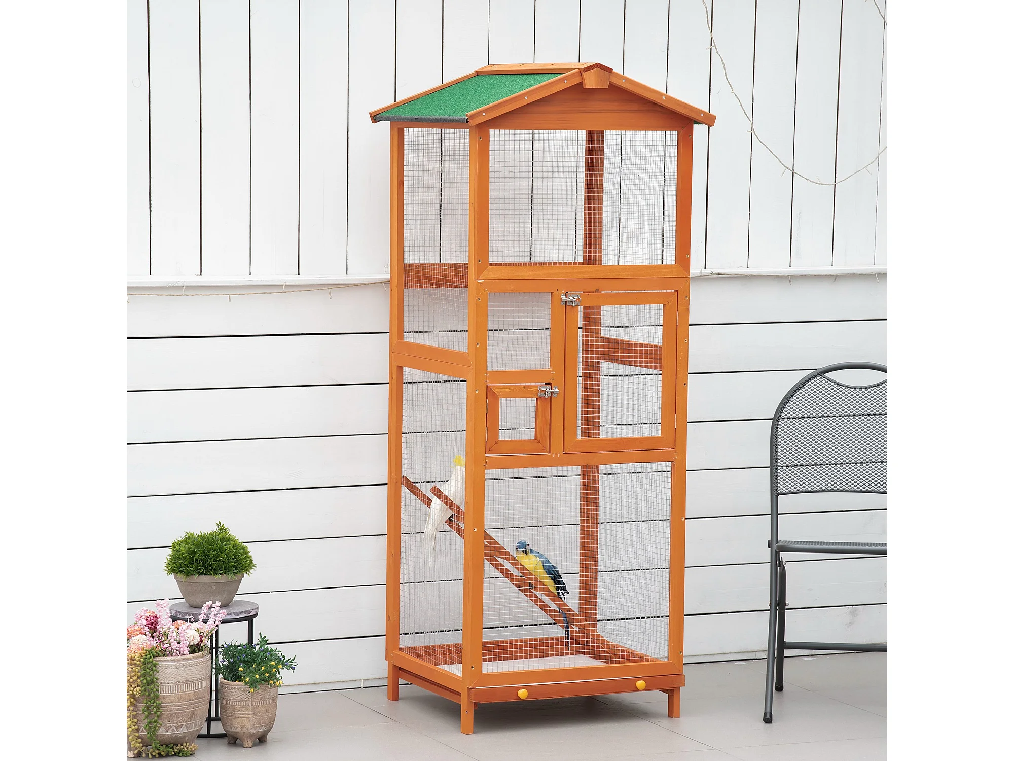 Gabbia per uccelli da esterno in legno con 3 aperture e 4 posatoi arancio