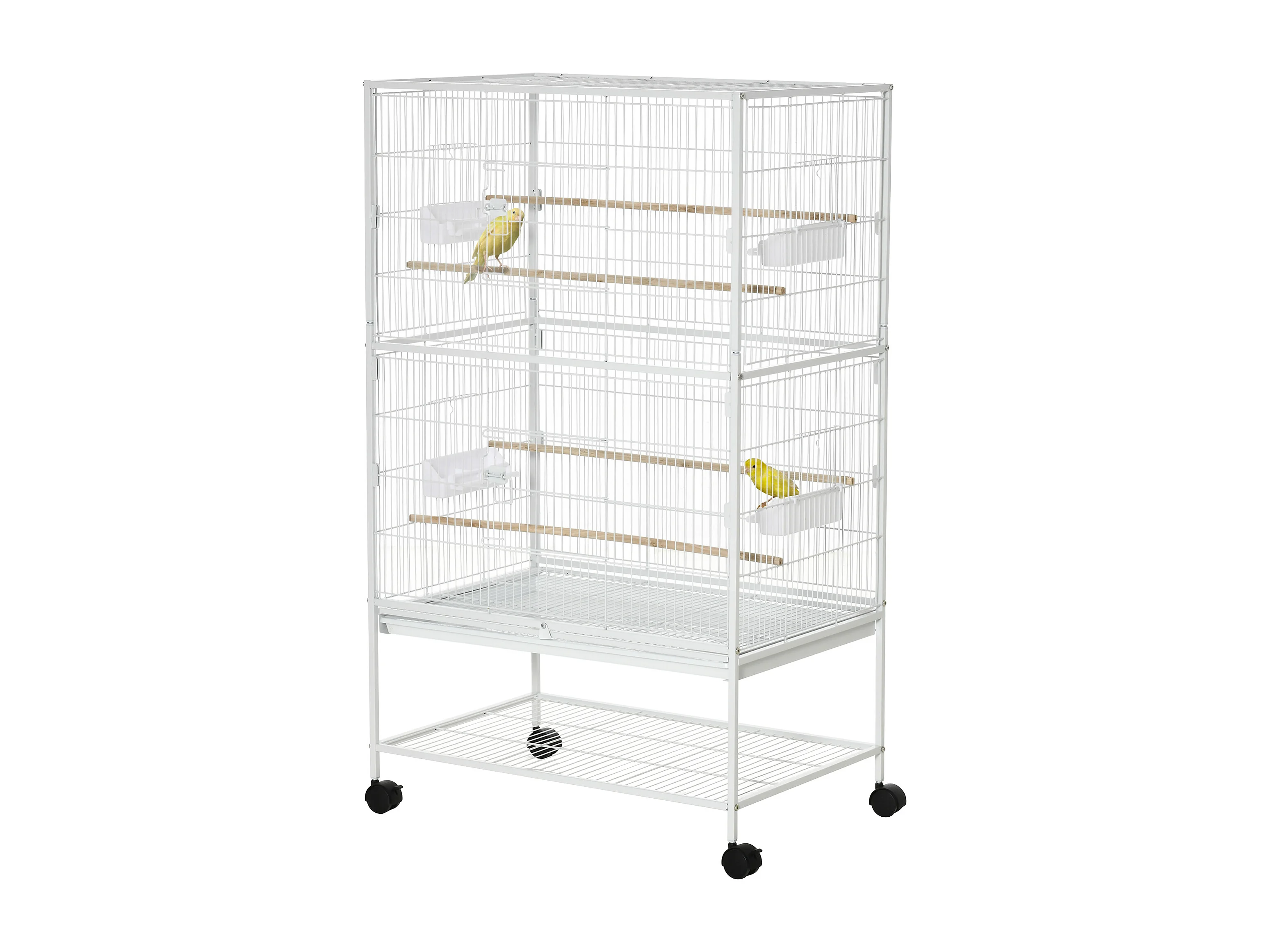 Voliera per uccelli a rotelle con vassoi estraibili e posatoi nero