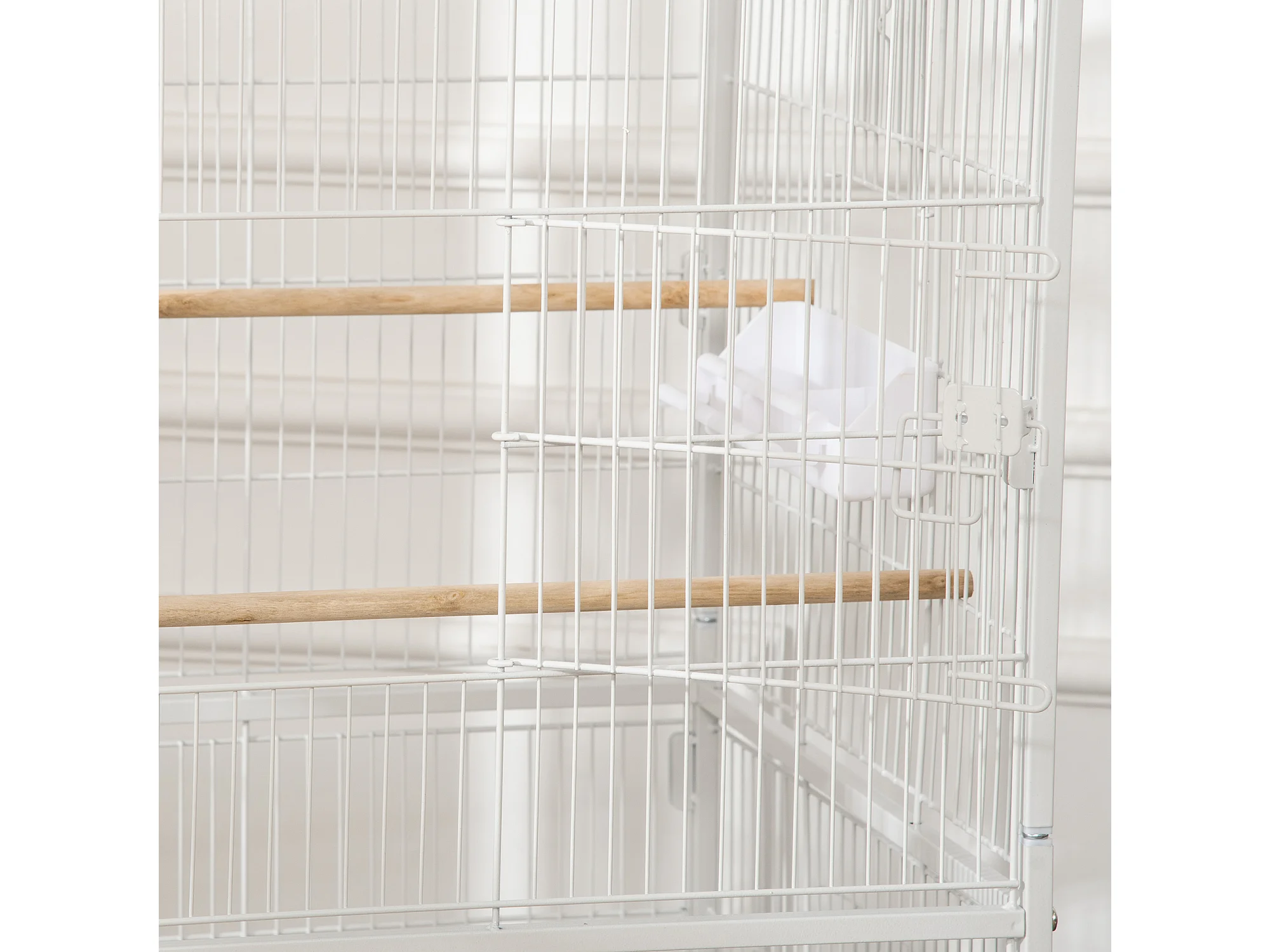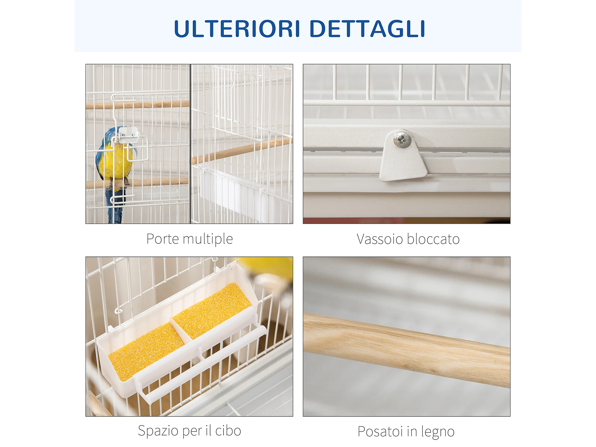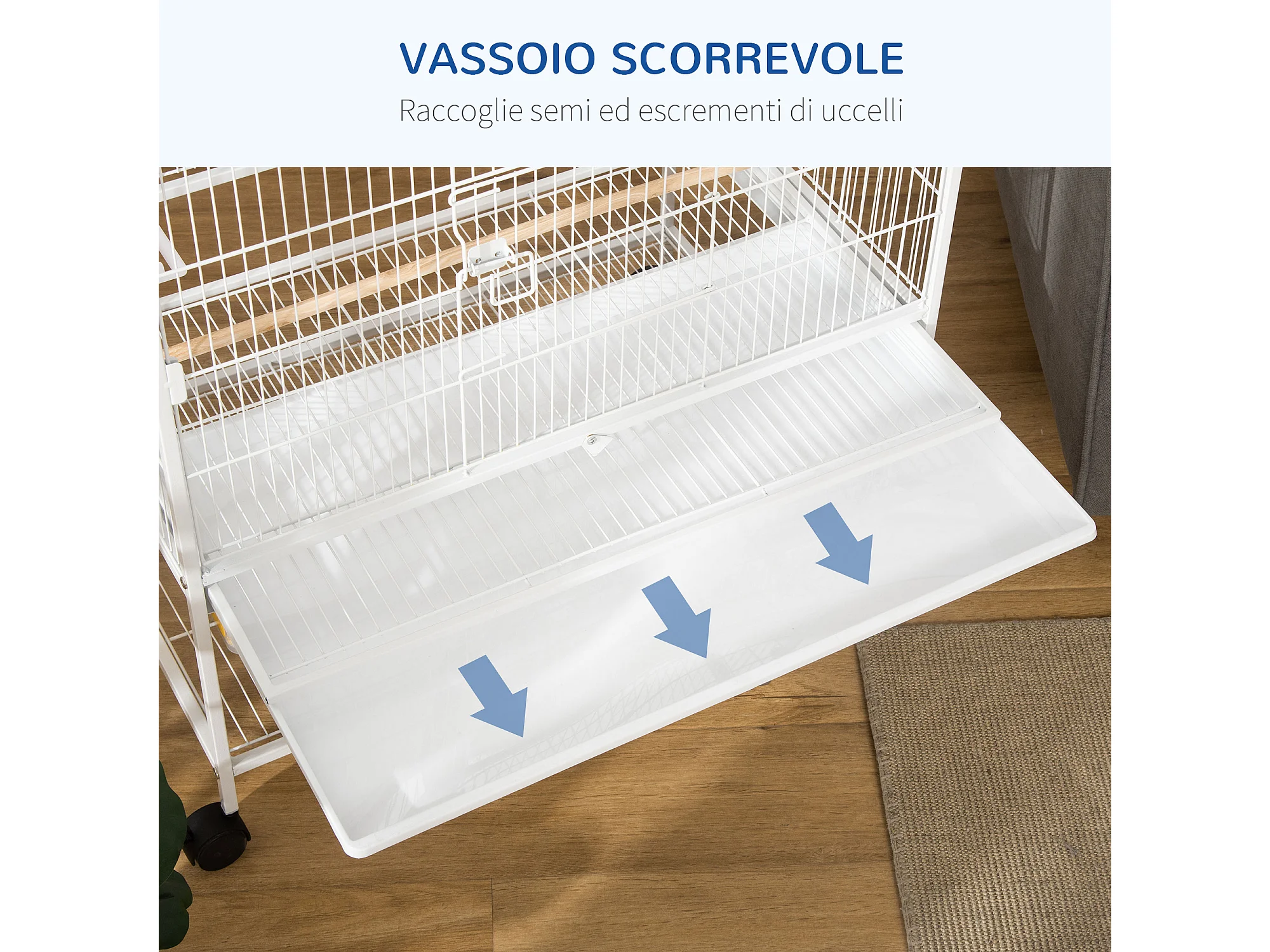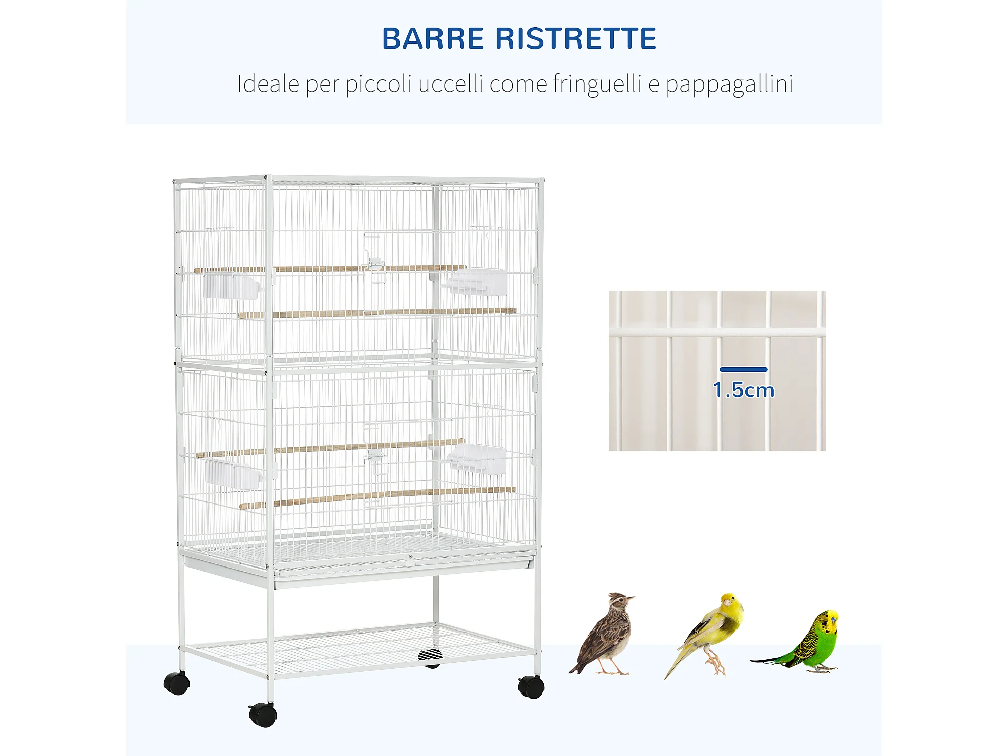 Voliera per uccelli con vassoio estraibile in acciaio bianco