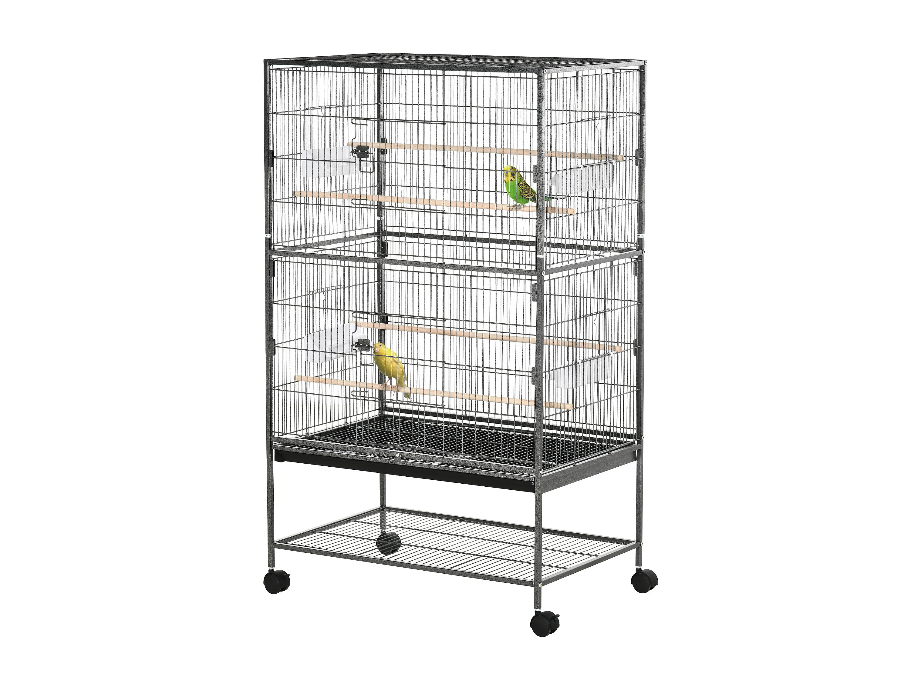 Gabbia per uccelli con divisorio e ripiano inferiore 94x57x57 cm nero