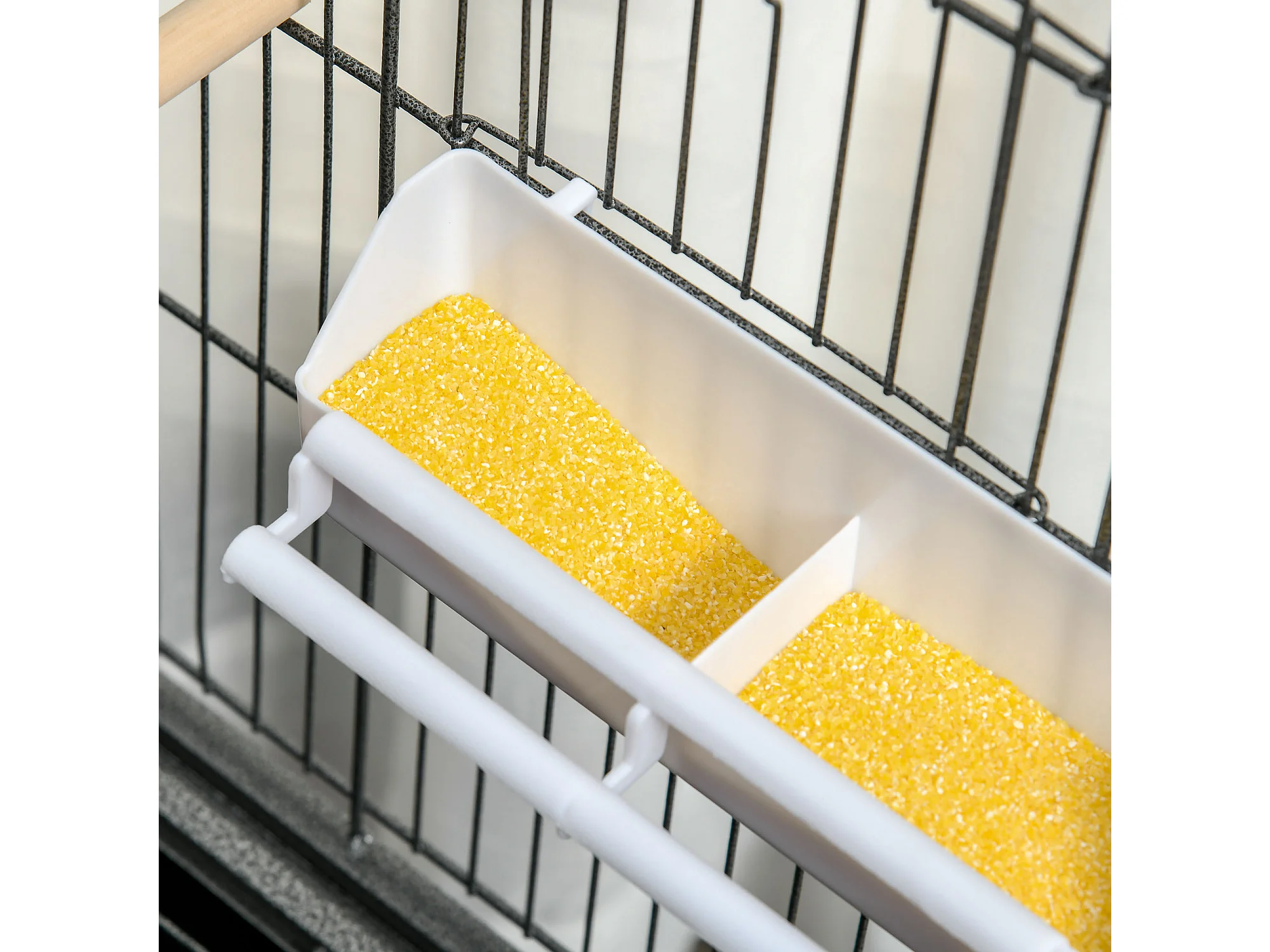 Gabbia per uccelli in acciaio con posatoi giocattoli e vassoio rimovibile