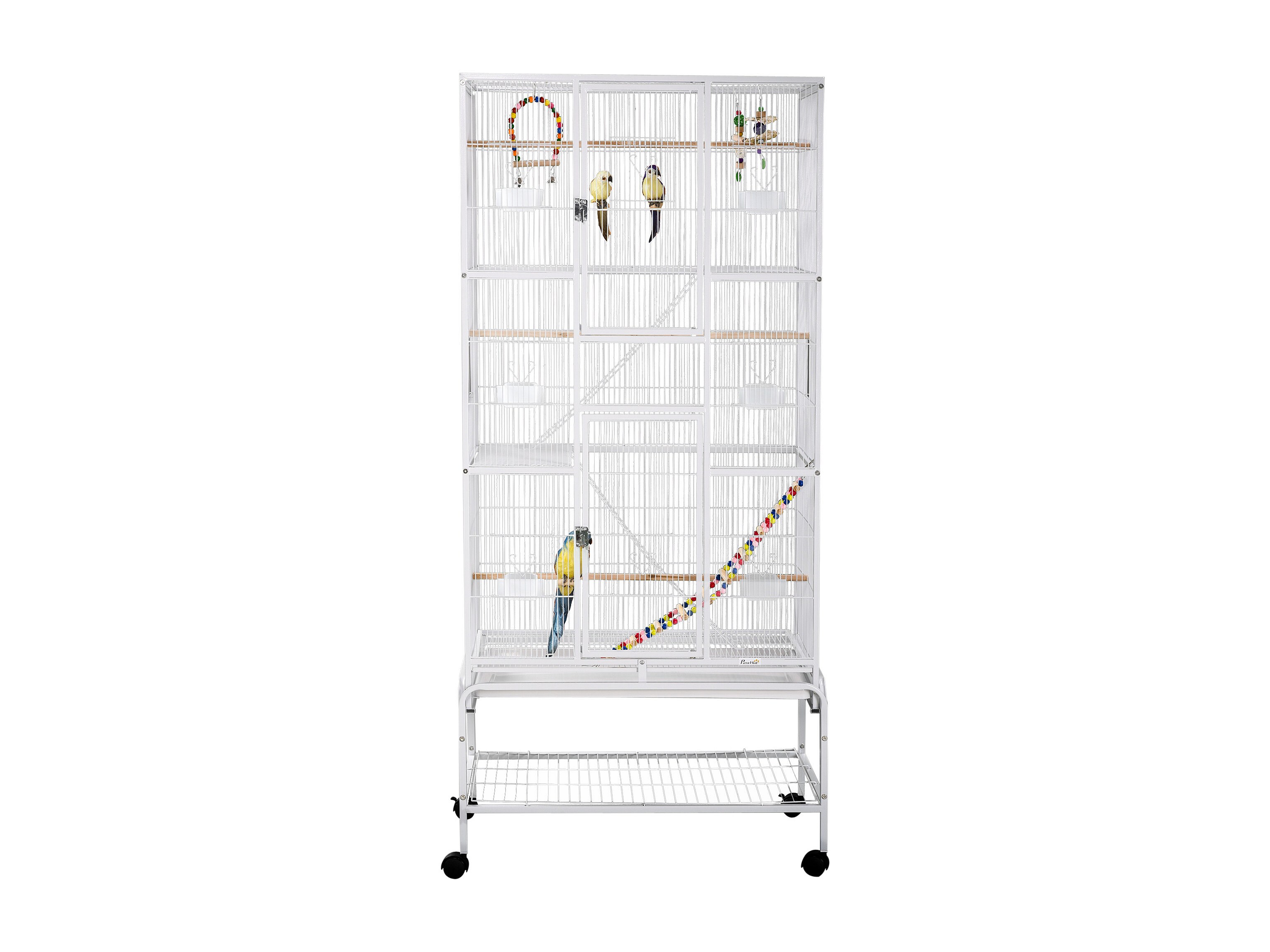 Gabbia per uccelli in acciaio con posatoi giocattoli e vassoio rimovibile
