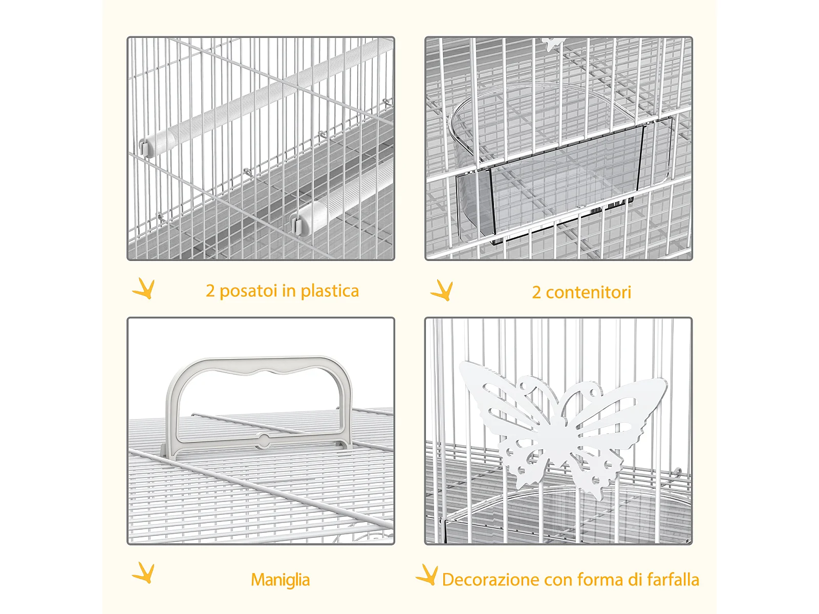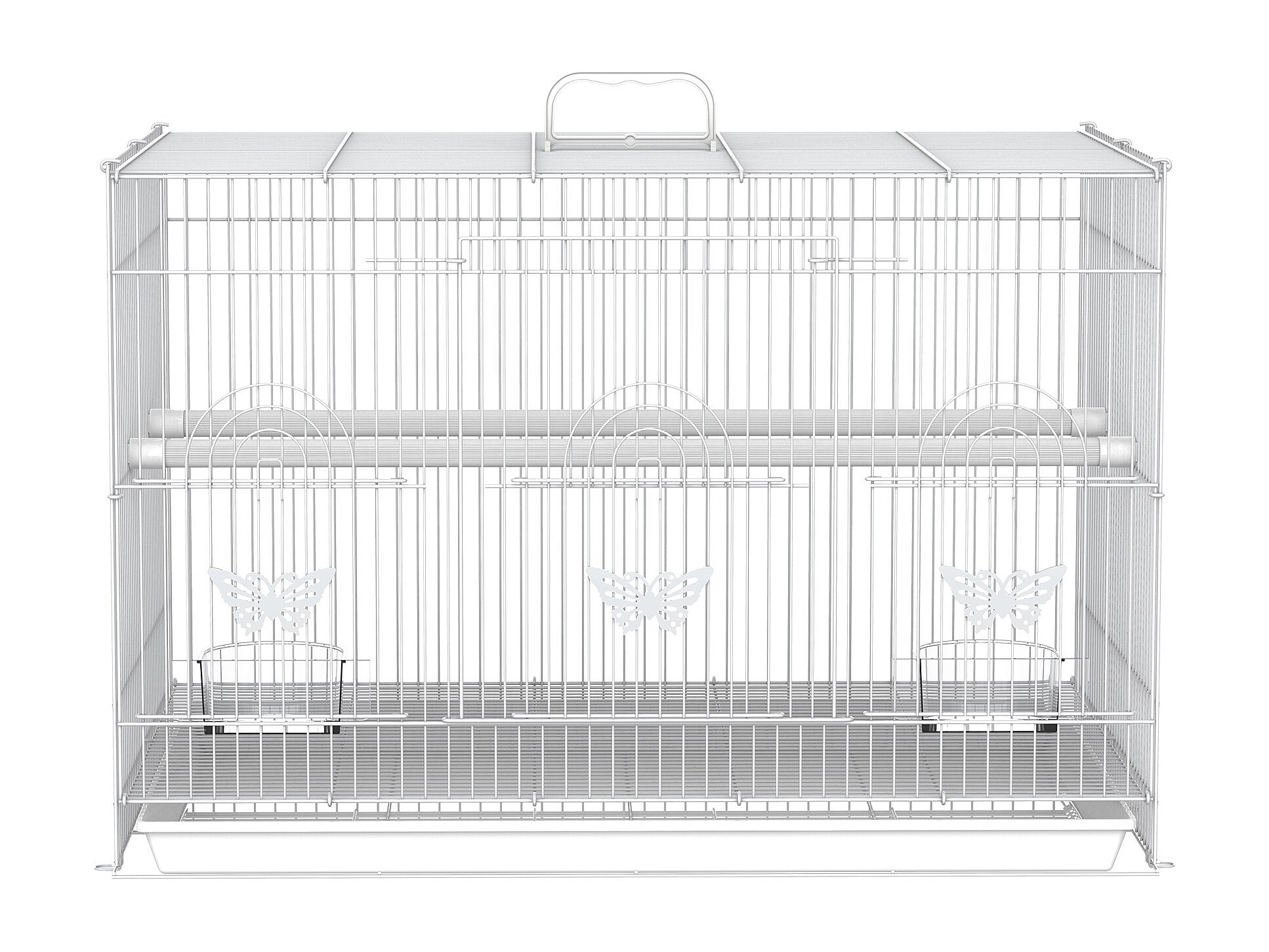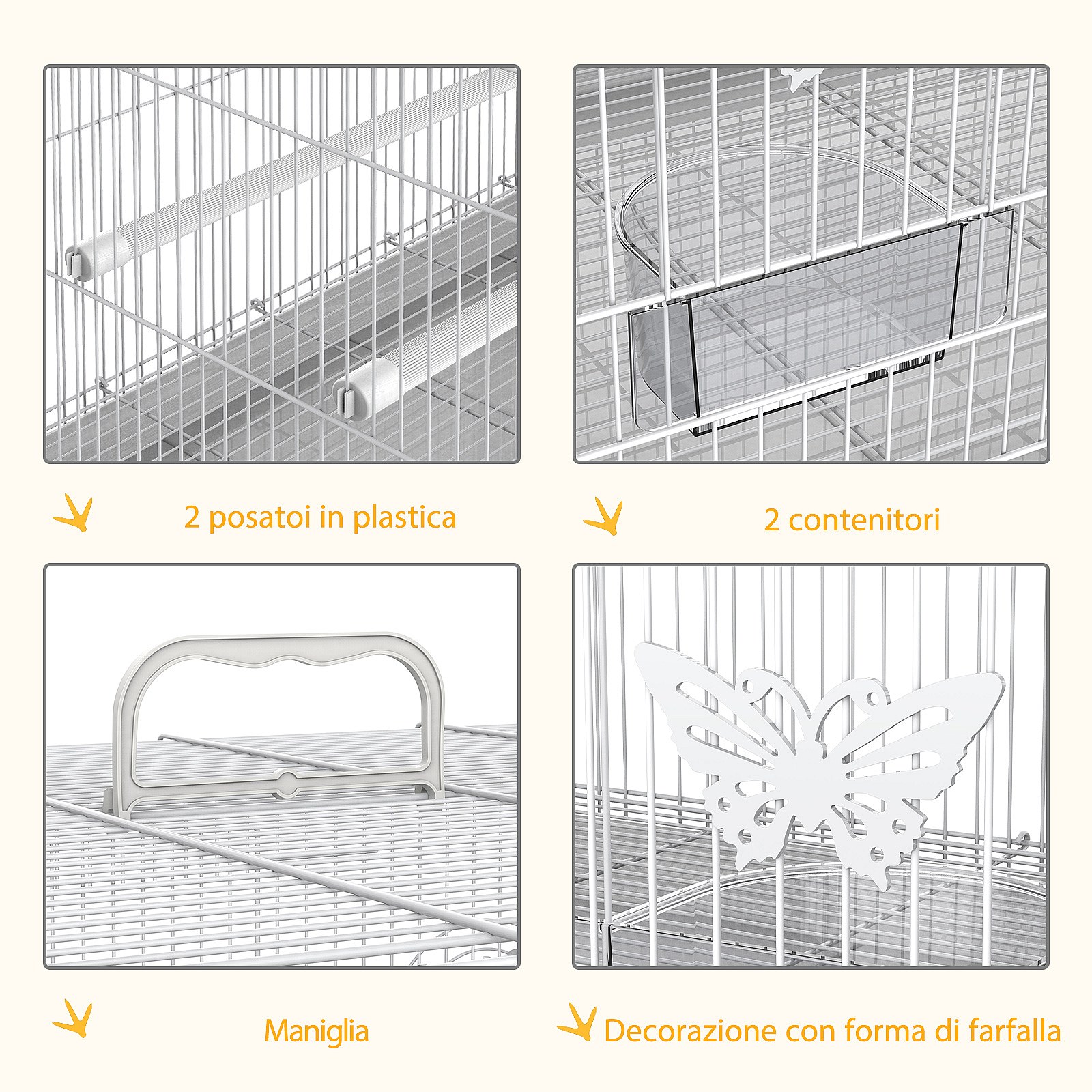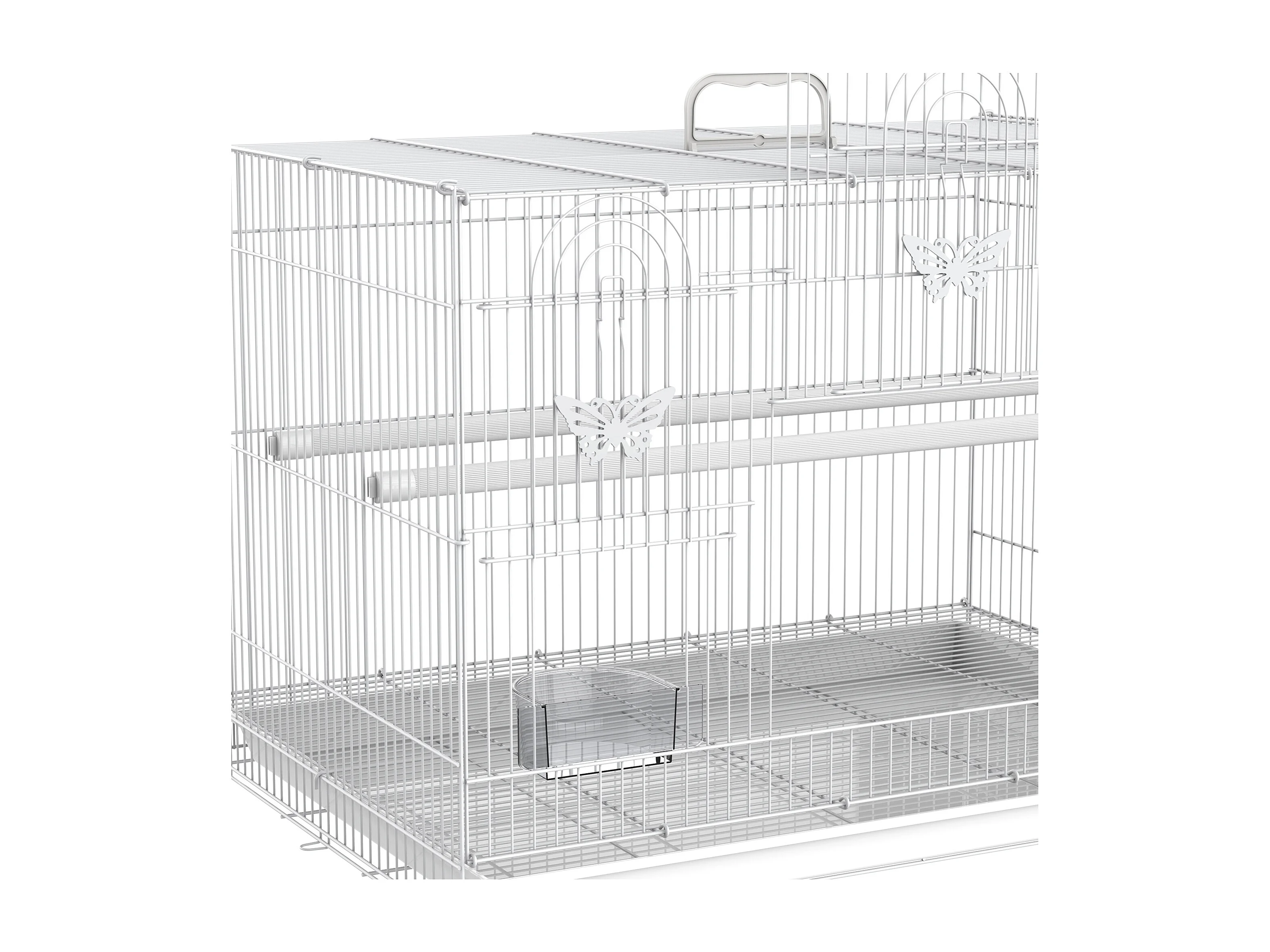 Gabbia per uccelli in metallo con posatoi ciotole per cibo e maniglia