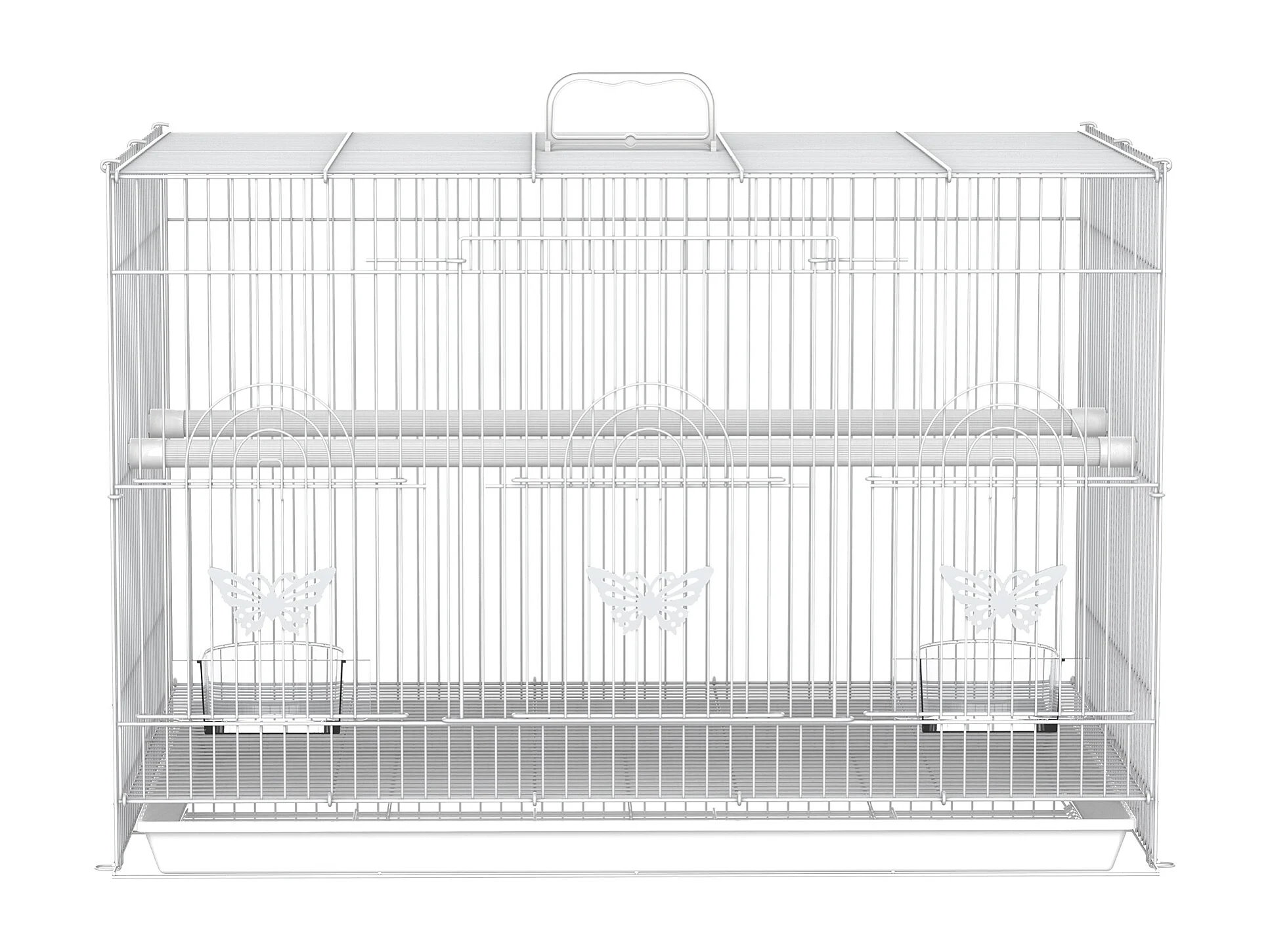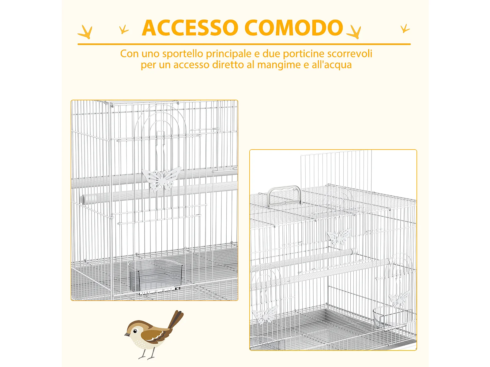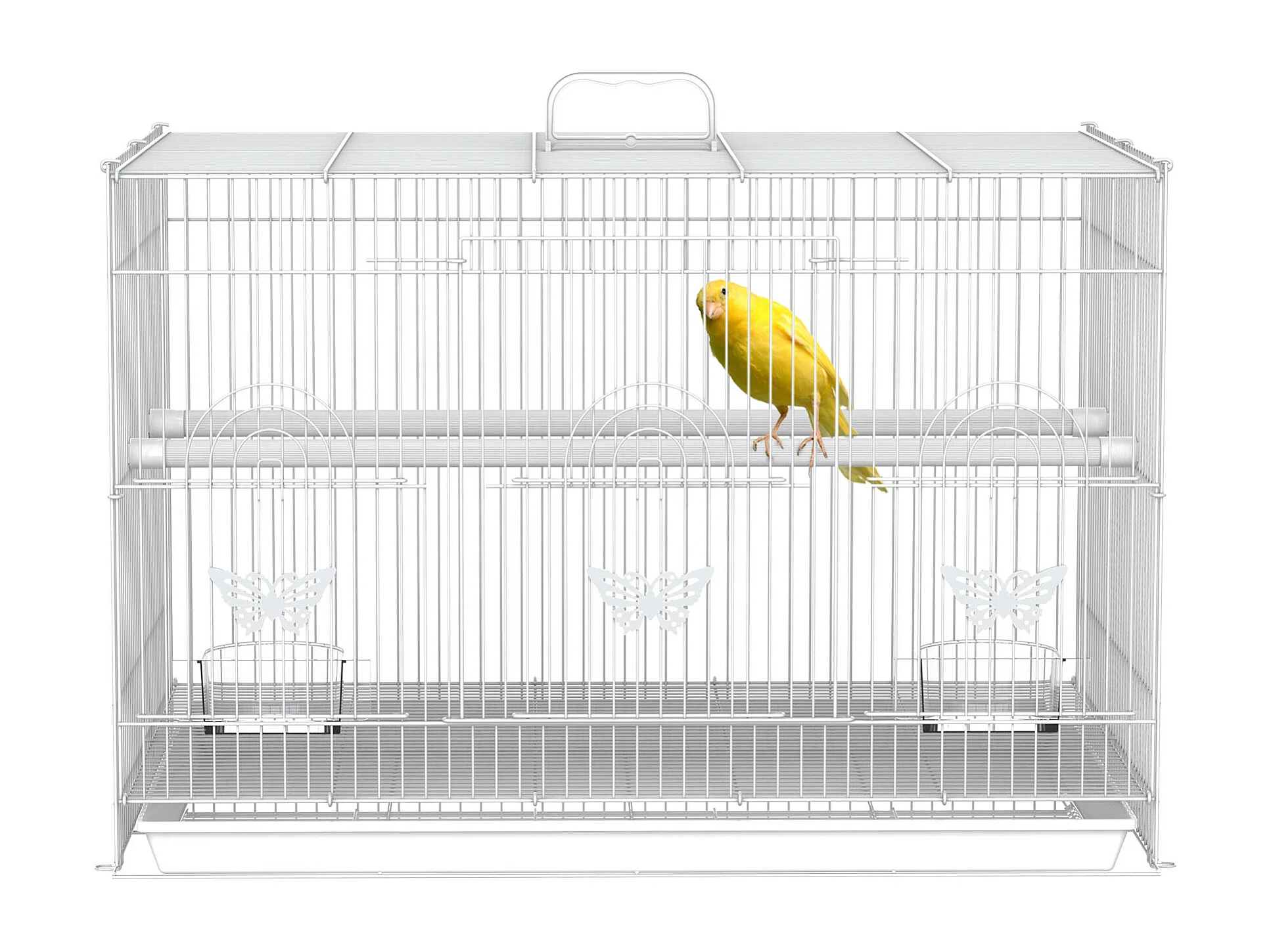 Gabbia per uccelli in metallo con posatoi ciotole per cibo e maniglia