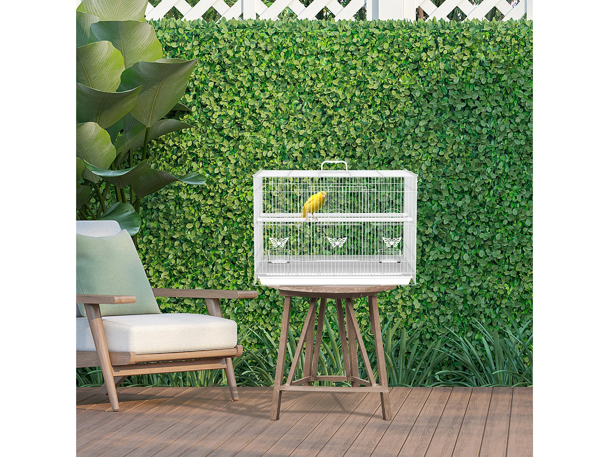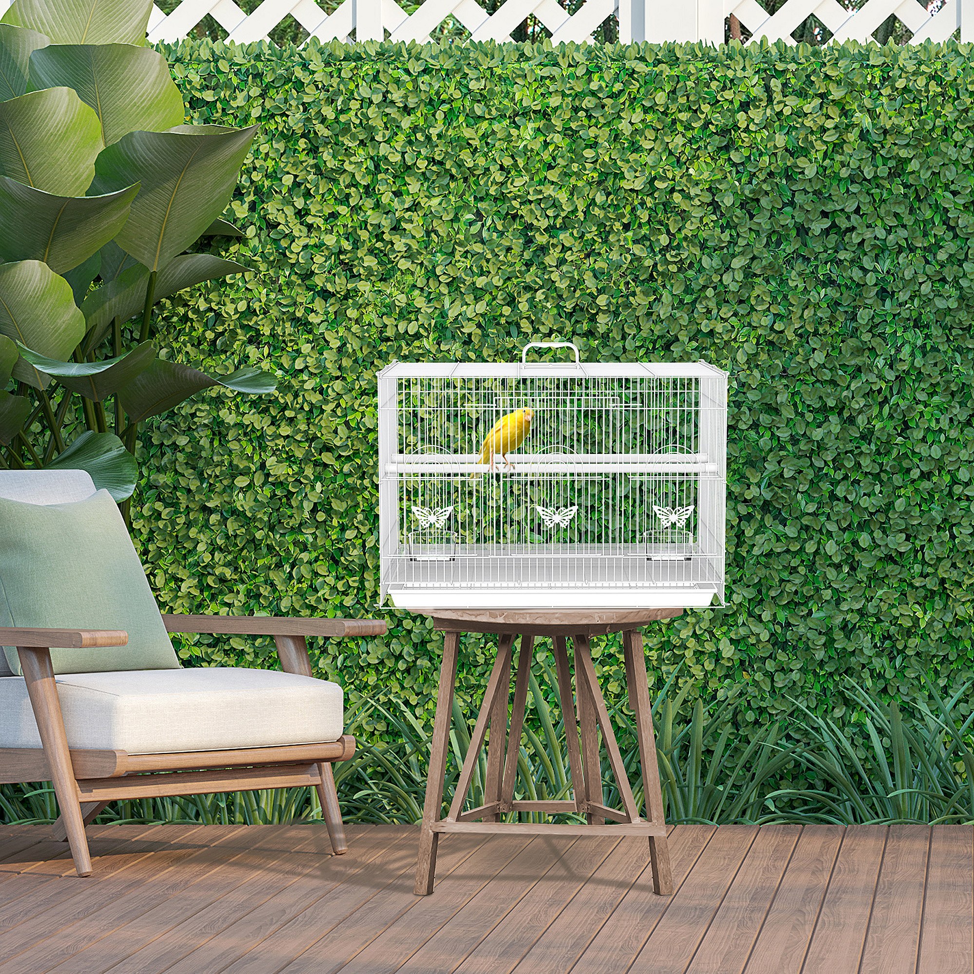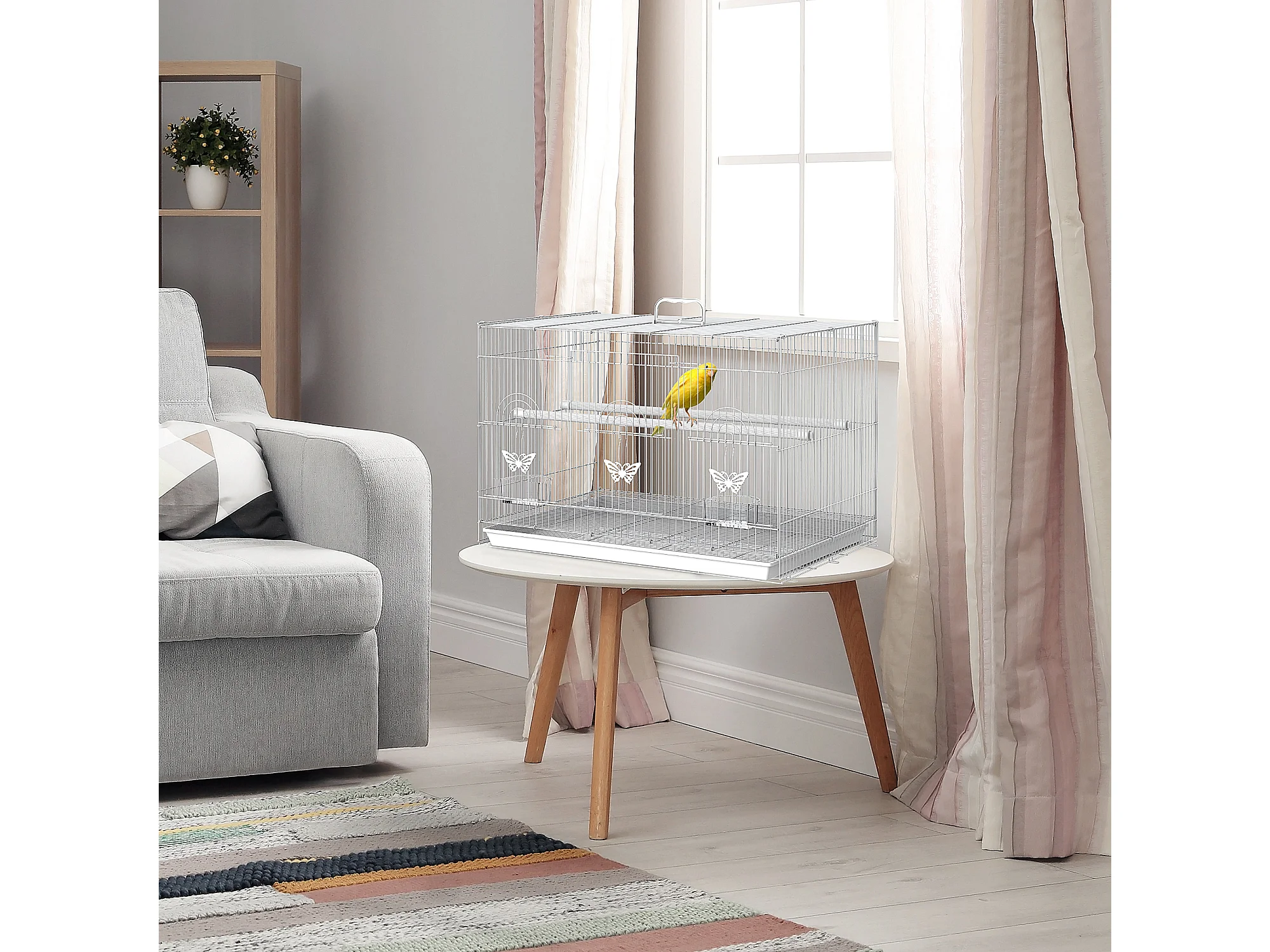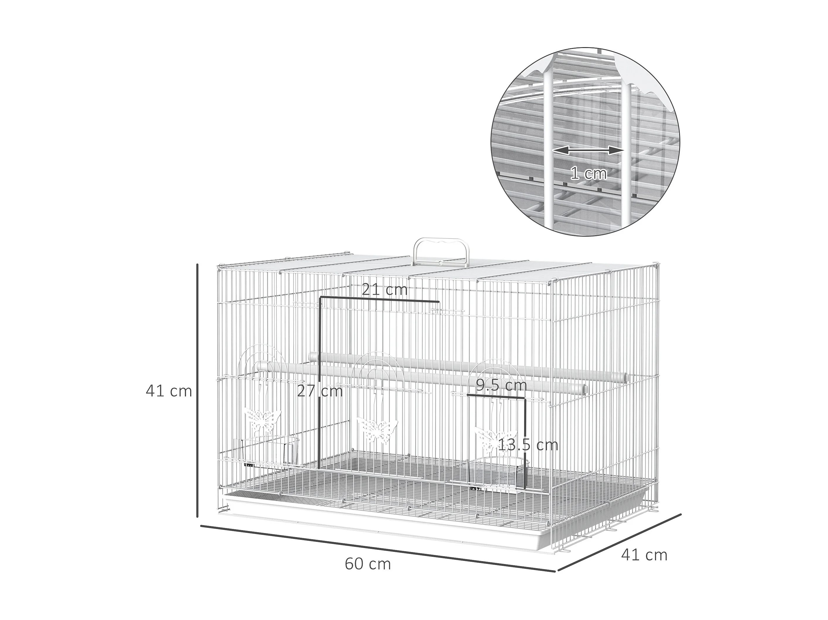 Gabbia per uccelli in metallo con posatoi ciotole per cibo e maniglia