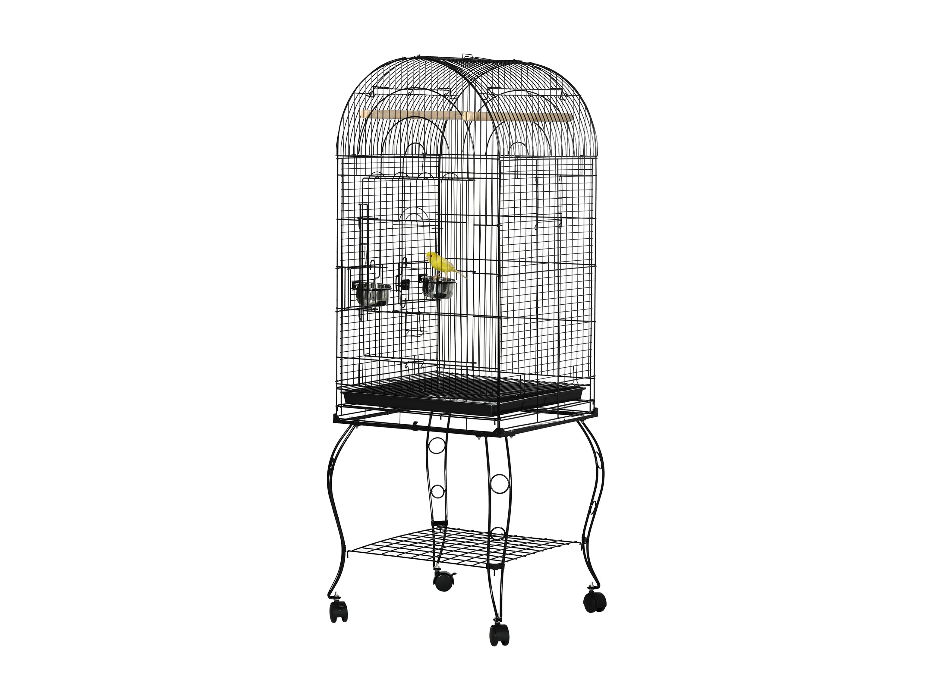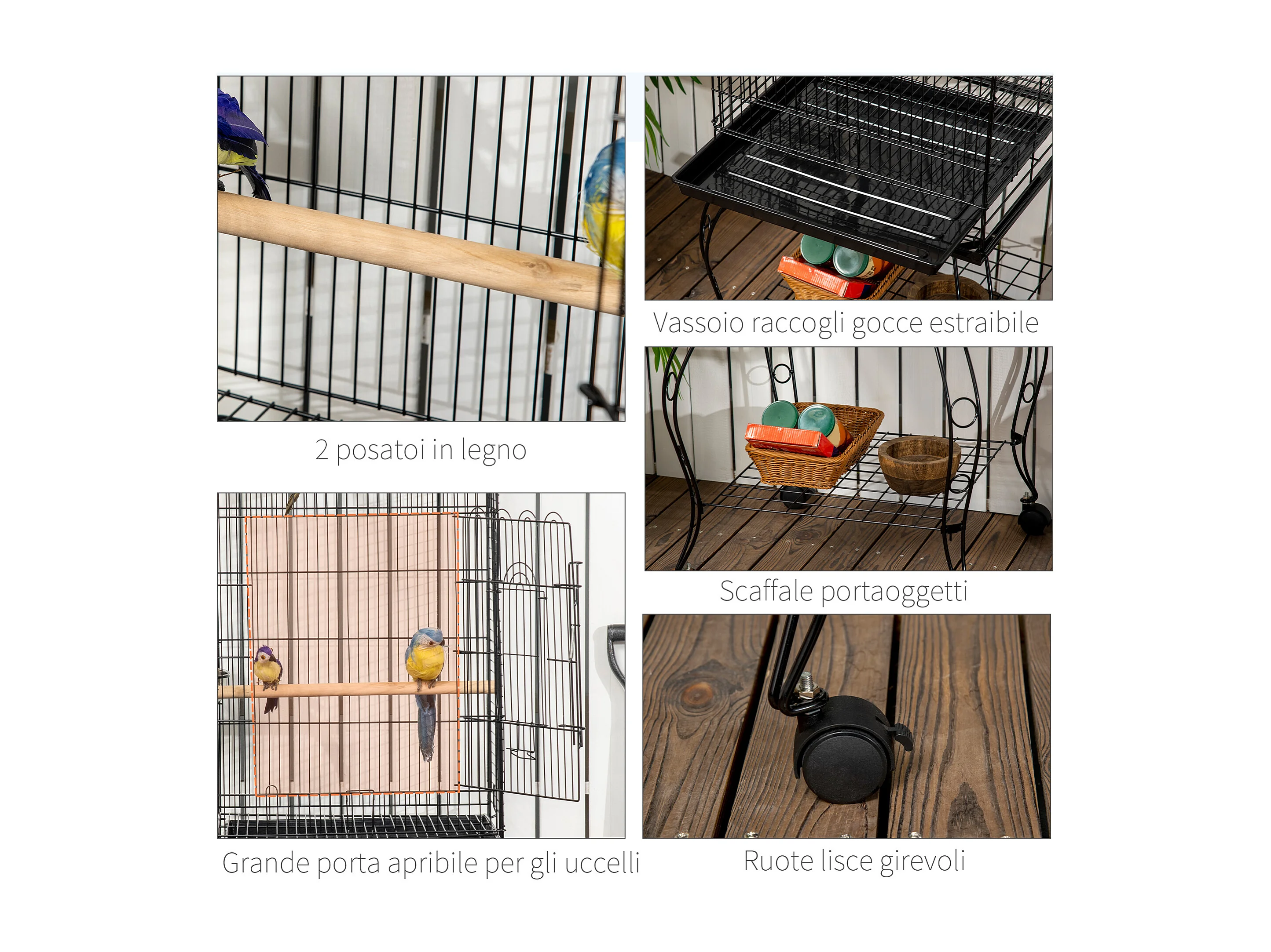 Gabbia per uccellini voliera con ruote in metallo nero 51x51x153cm