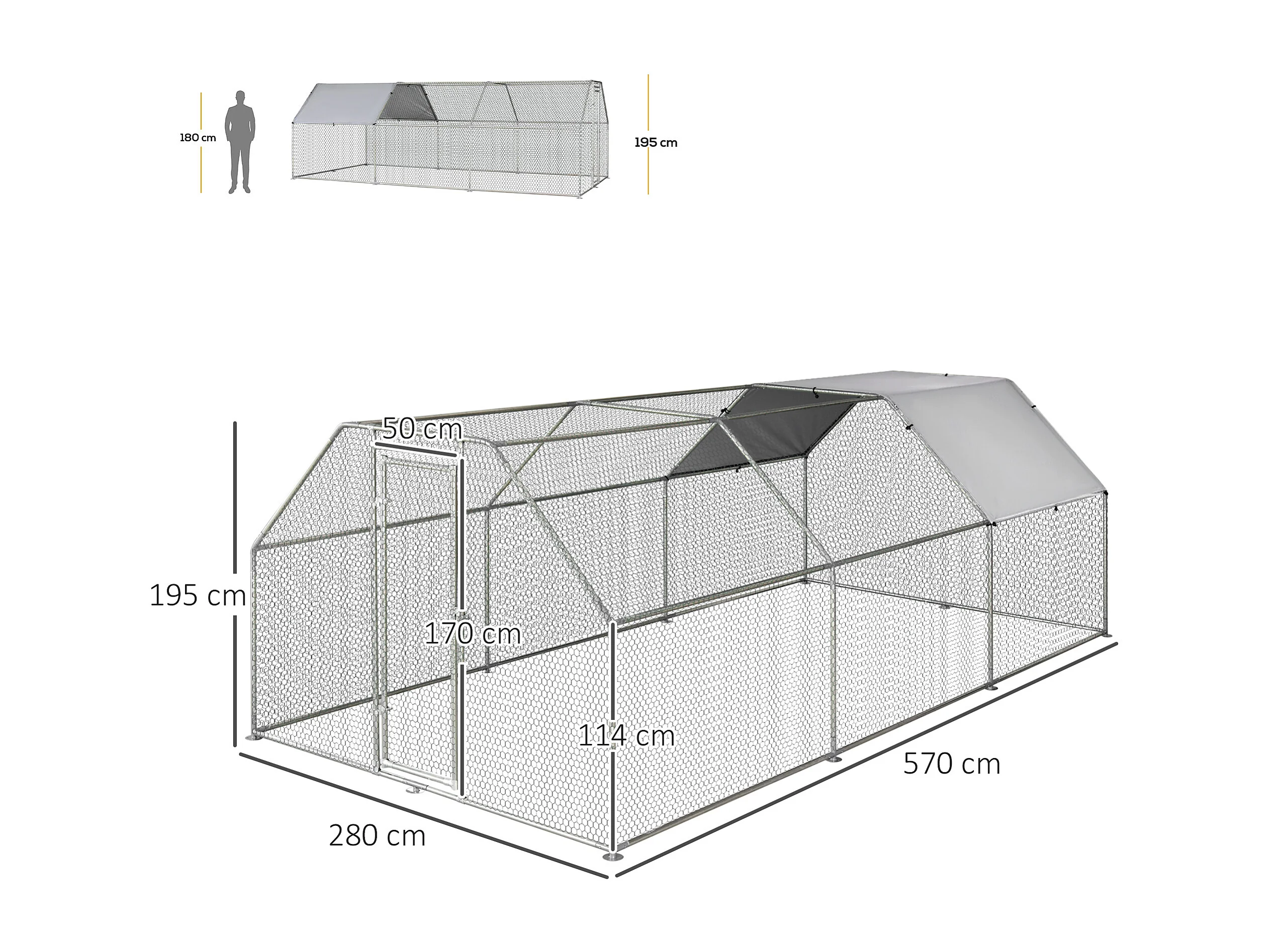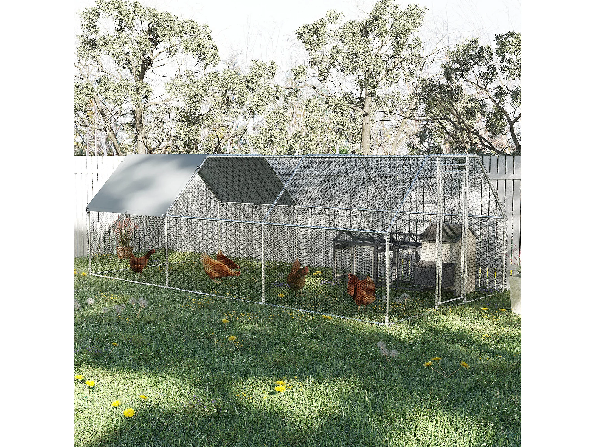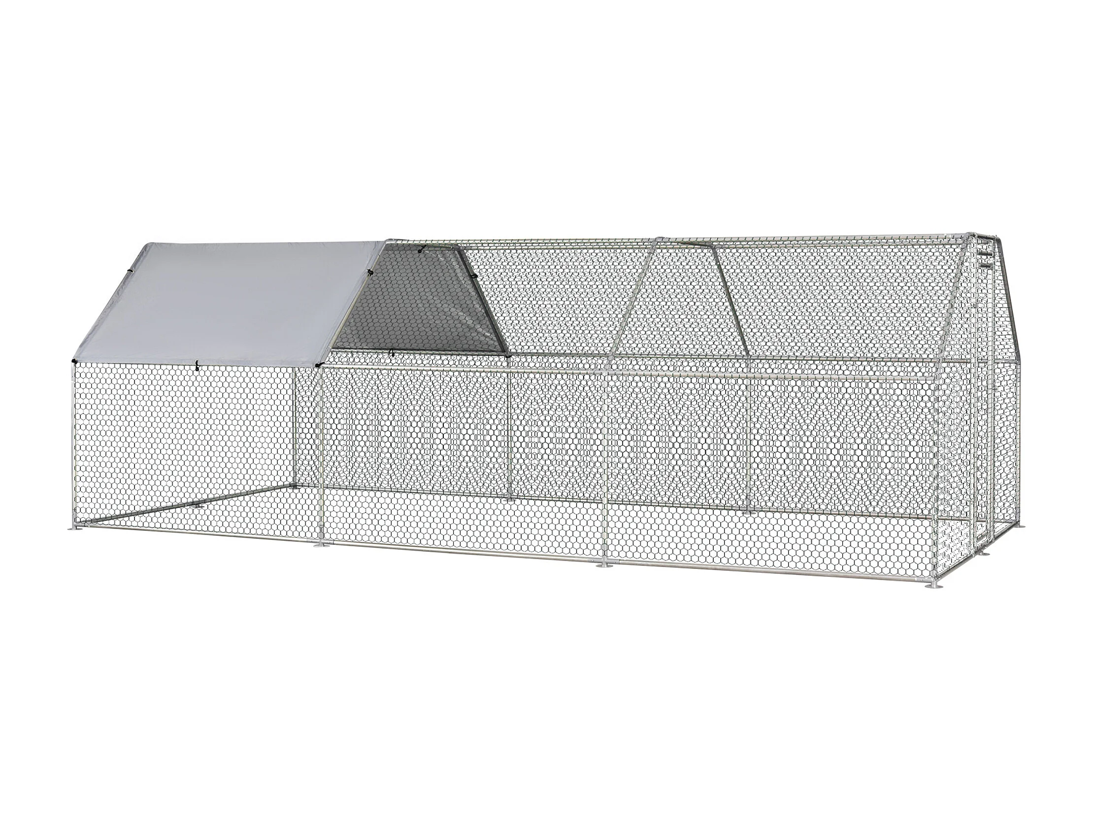 Recinto per galline con tetto e porta in acciaio 4x3.5x2.6m argento