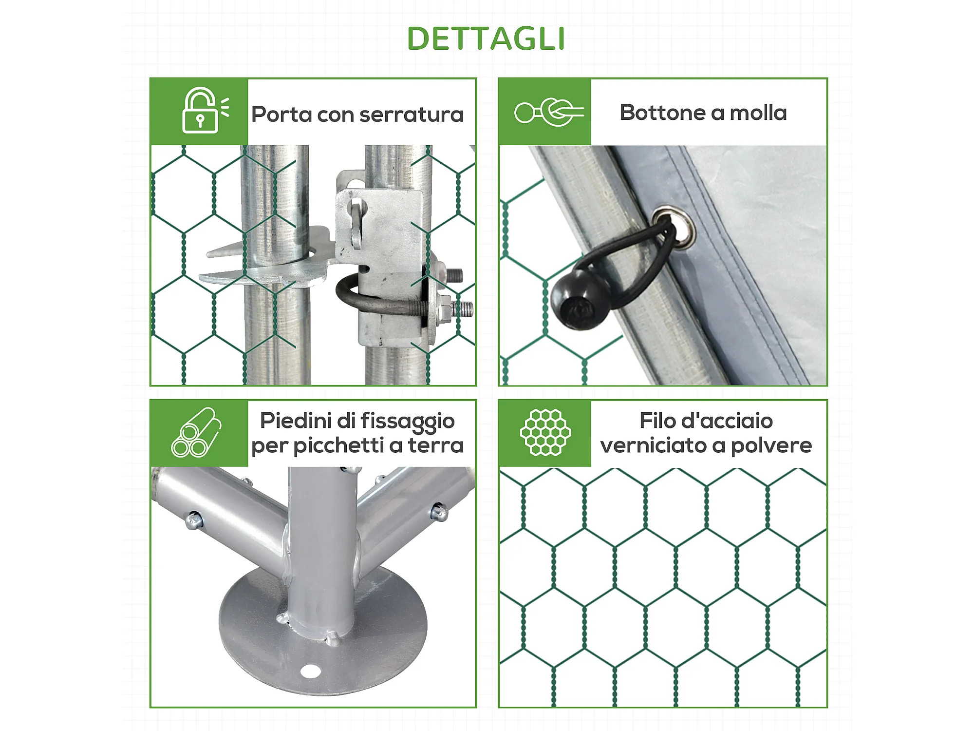 Gabbia recinto per galline in metallo porta con blocco e copertura oxford