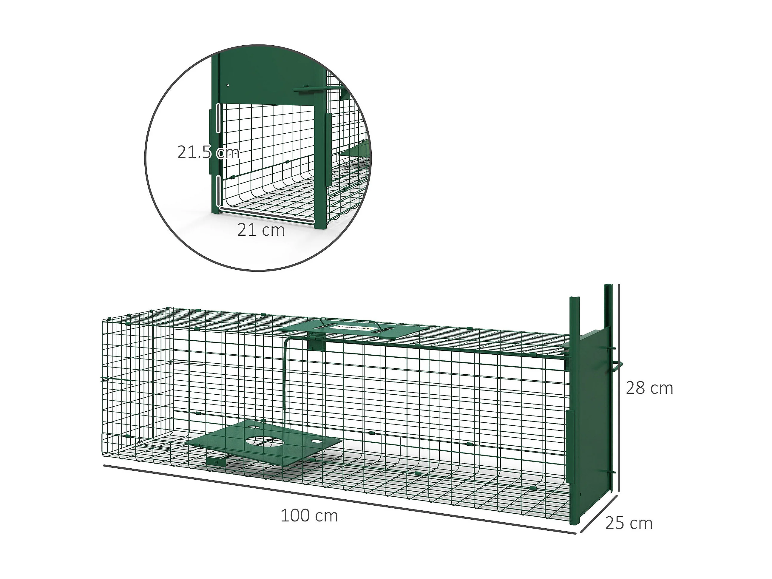 Gabbia trappola per animali vivi piccoli con doppia porta 80x25x30cm