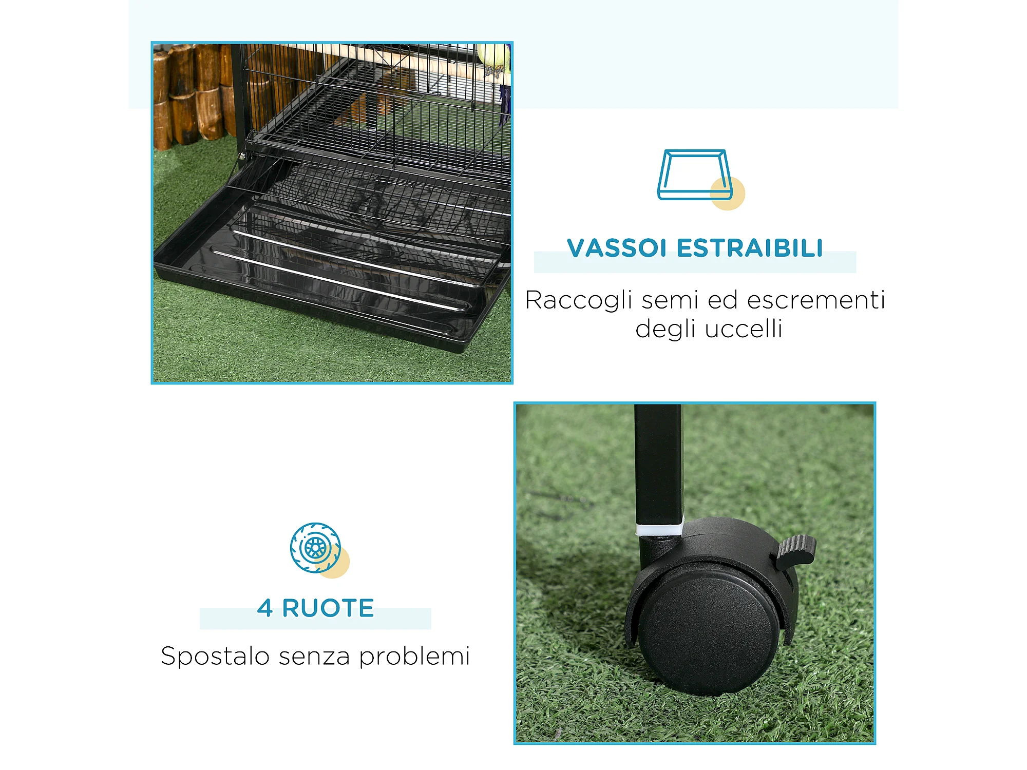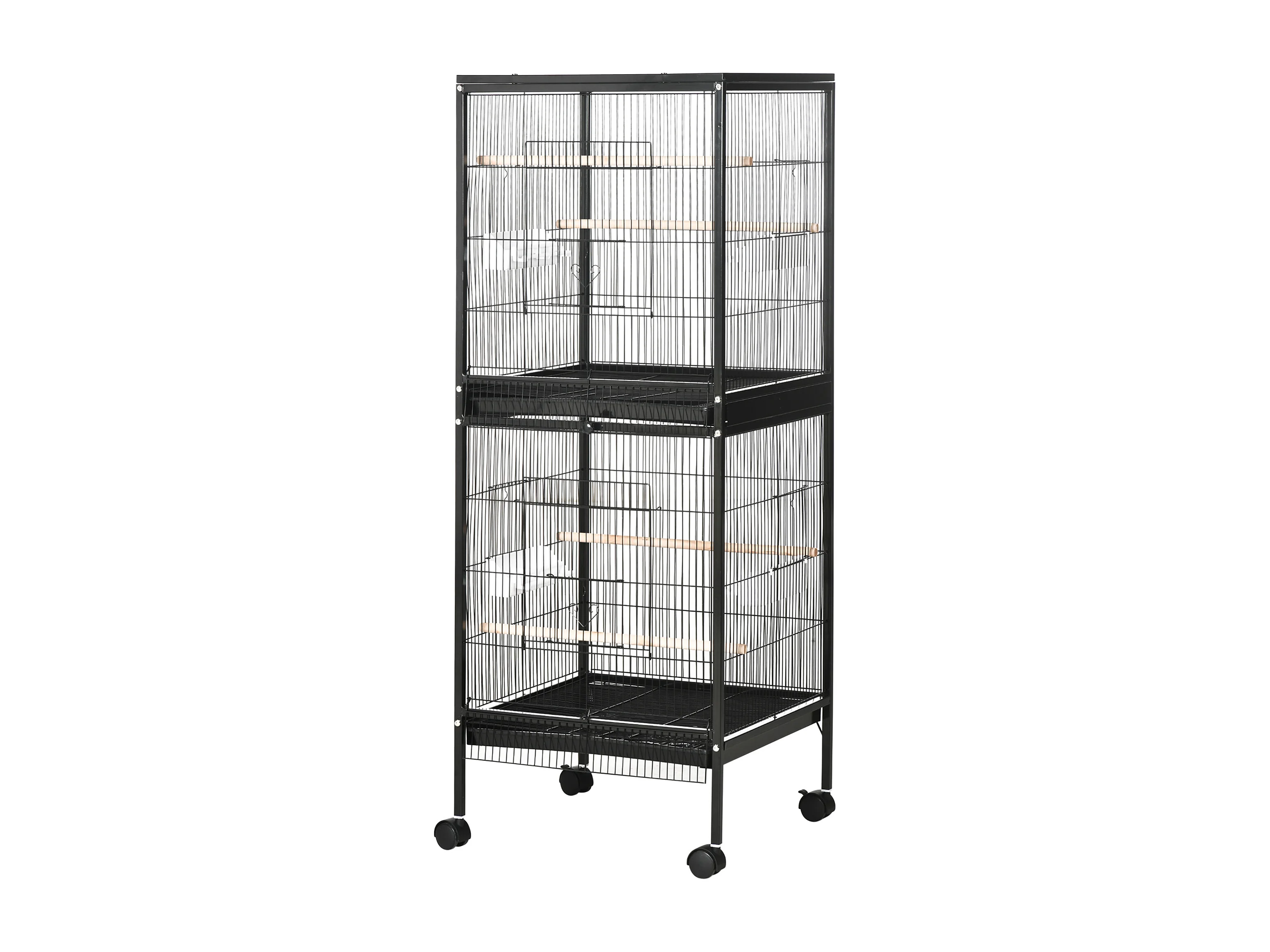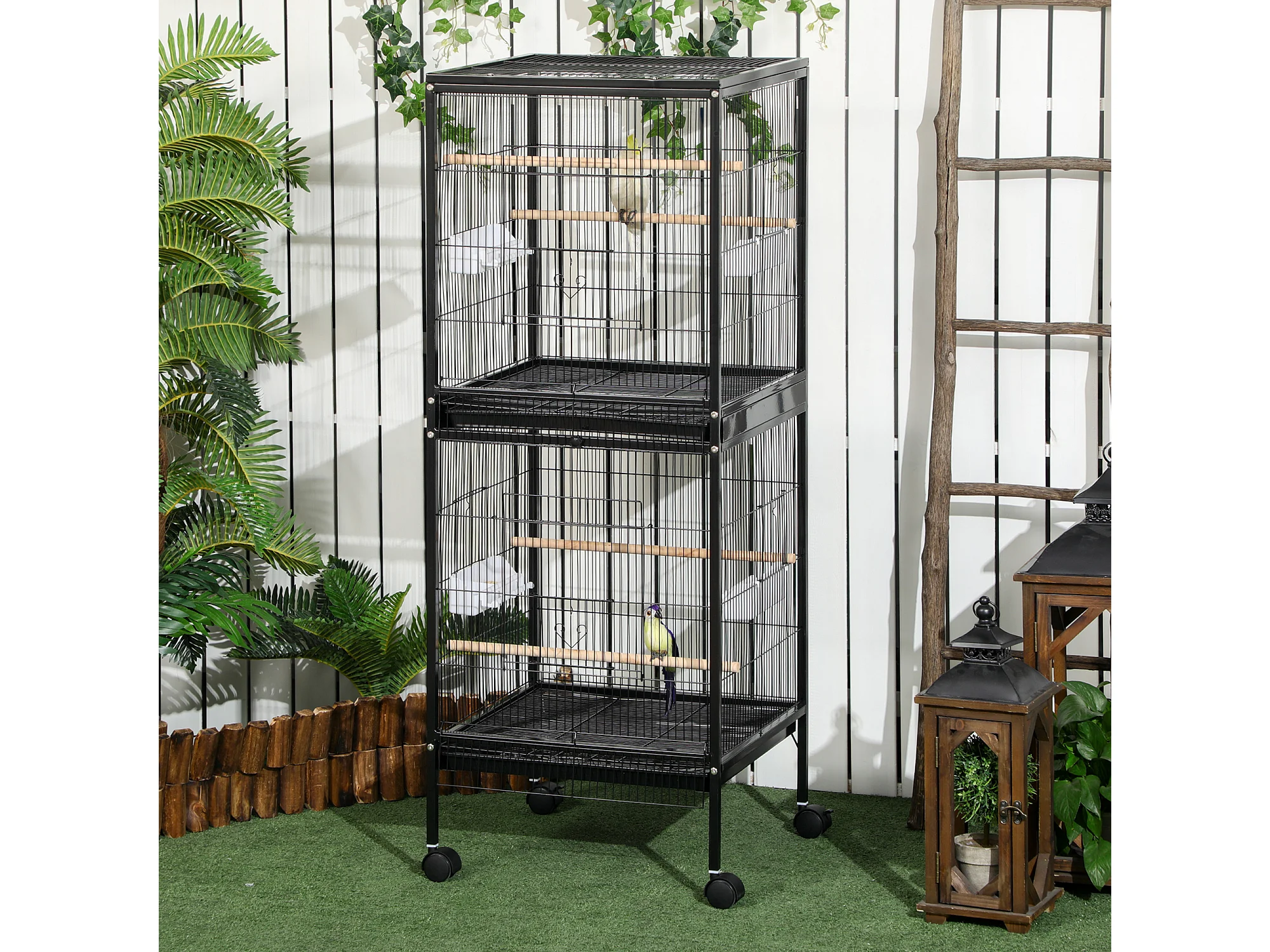 Gabbia voliera per uccelli 2 in 1 con ruote e vassoi estraibili nero