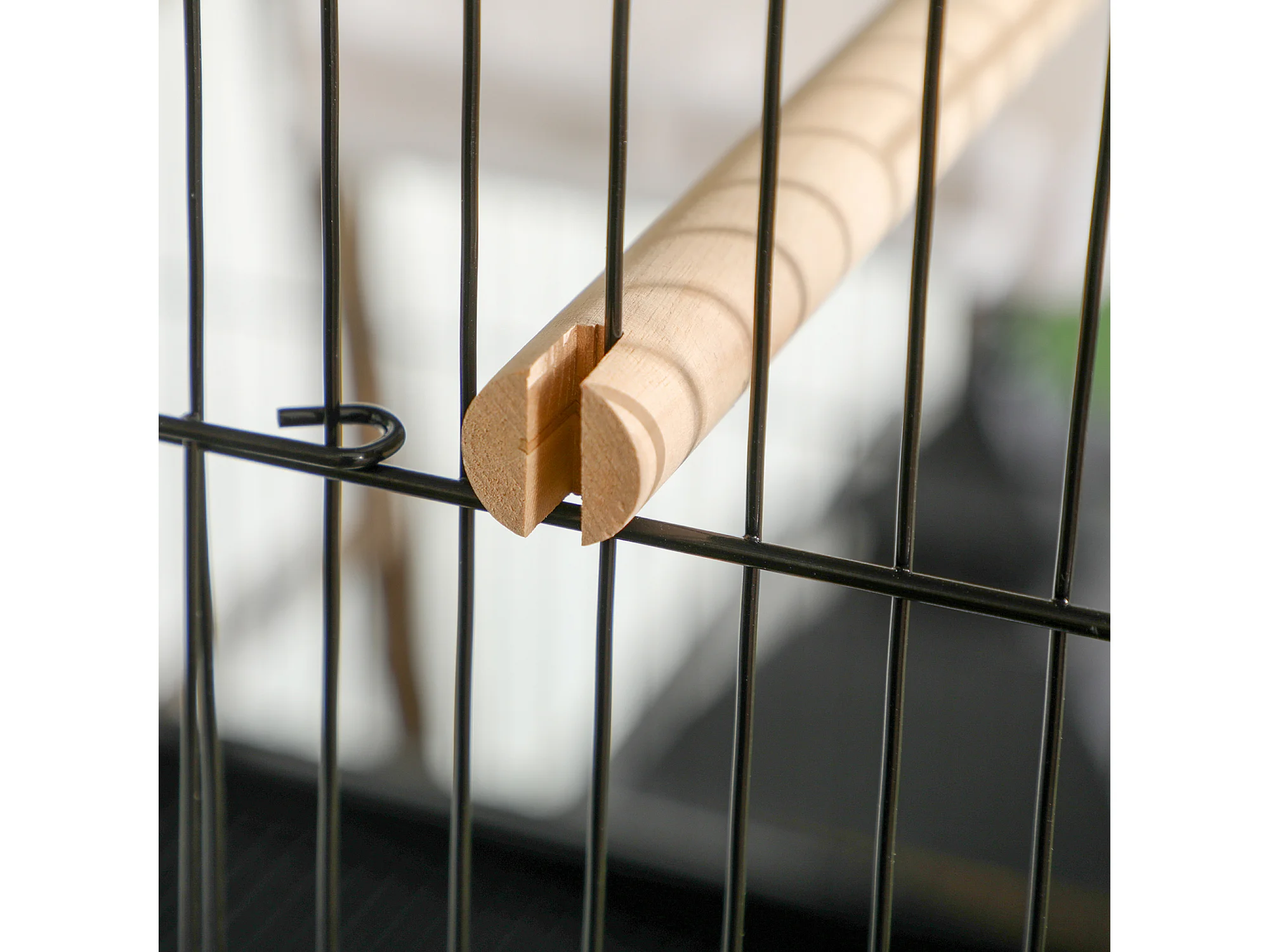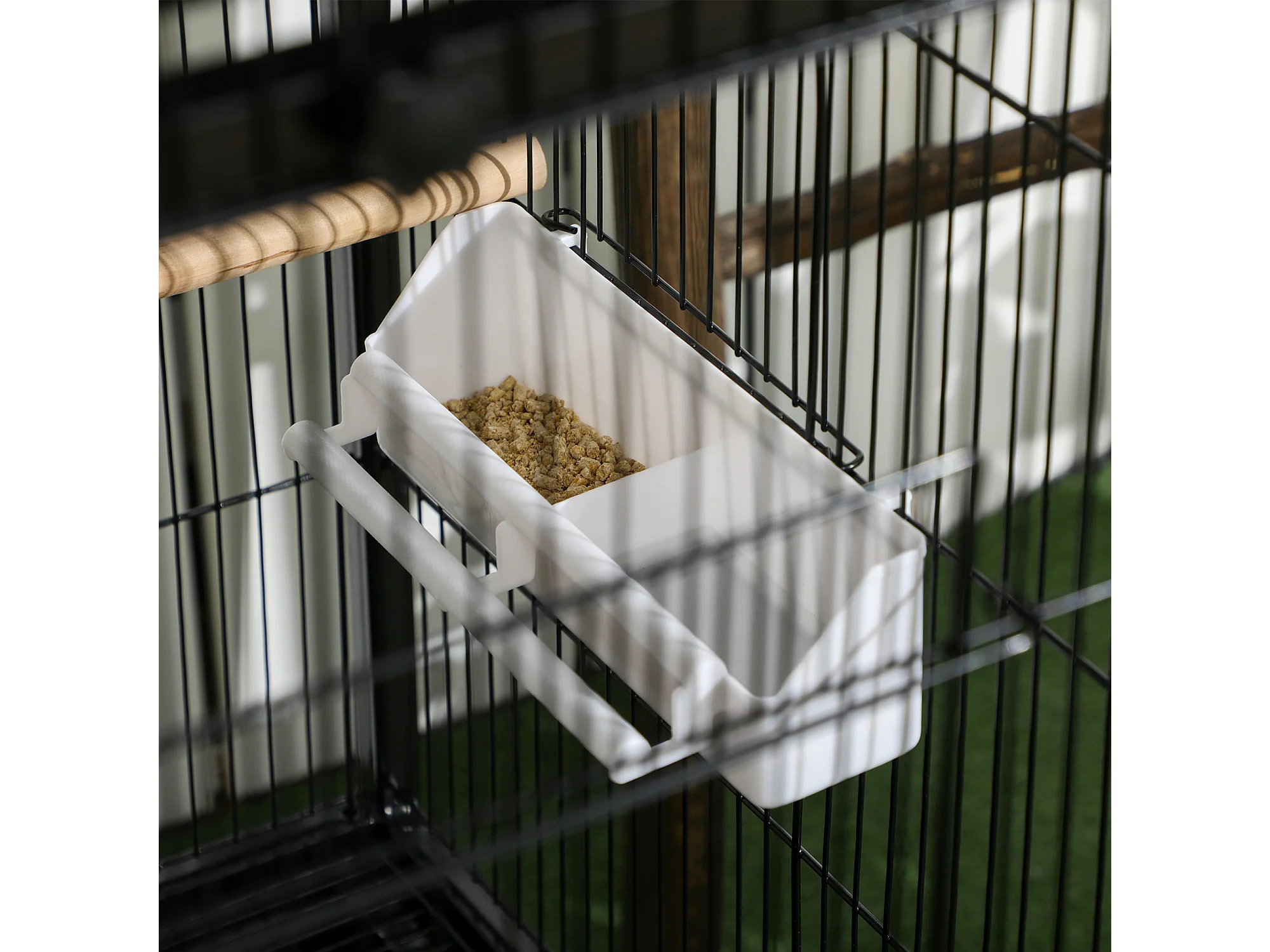 Gabbia per uccelli da interni in acciaio e legno a 4 ruote con trespolo