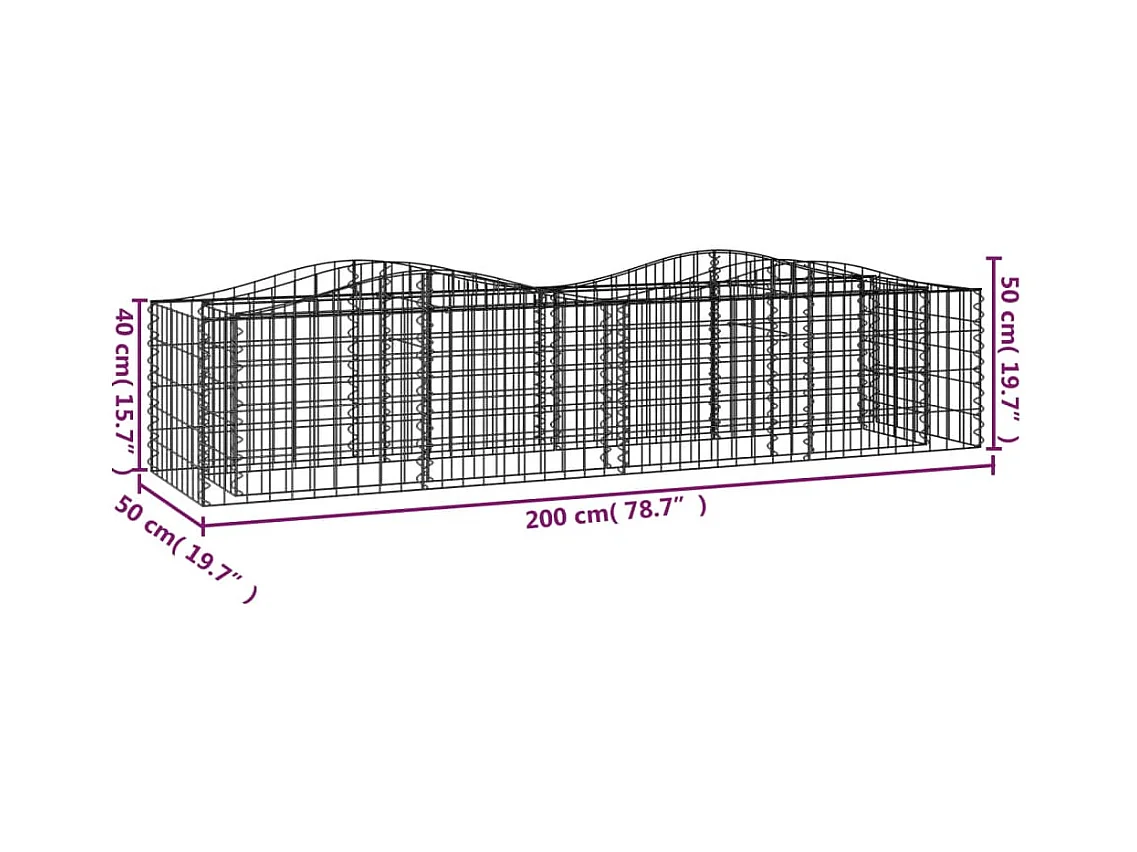 Gabbione ad Arco con Letto Rialzato 200x50x50 cm Ferro Zincato
