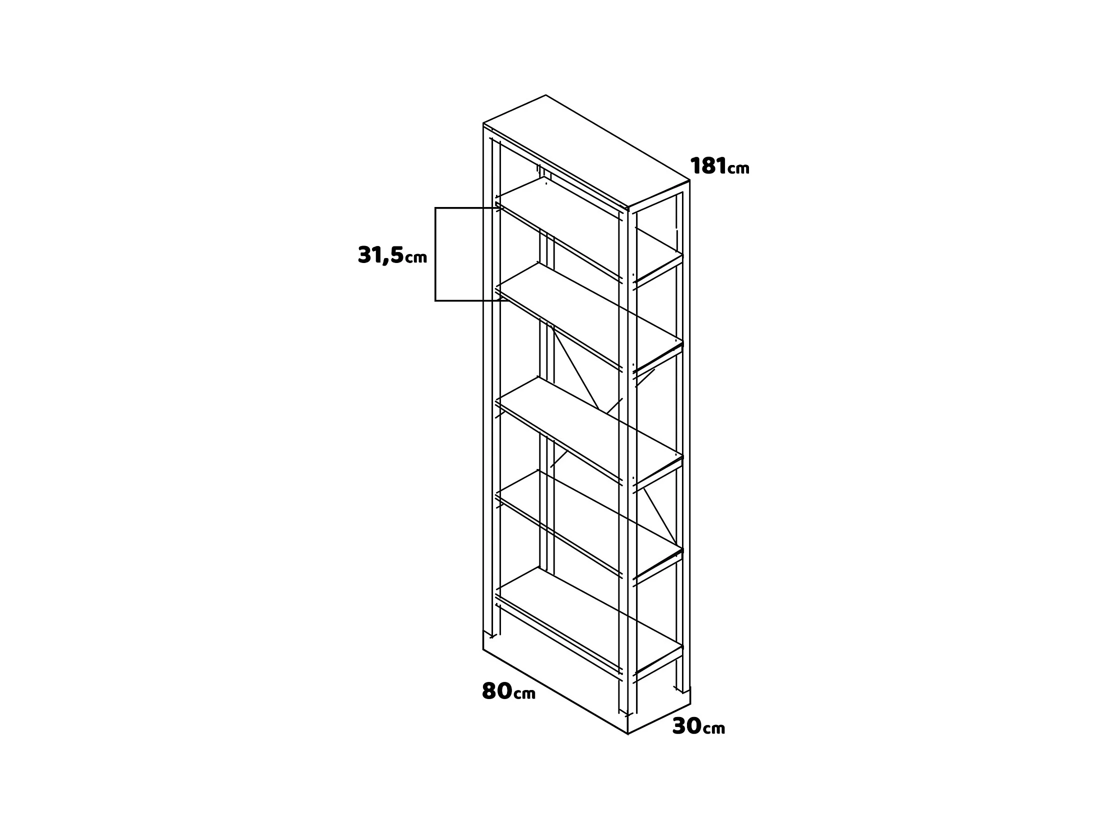 Ganbaru - Libreria scaffale a 6 ripiani 80x30xH180 cm in stile industriale