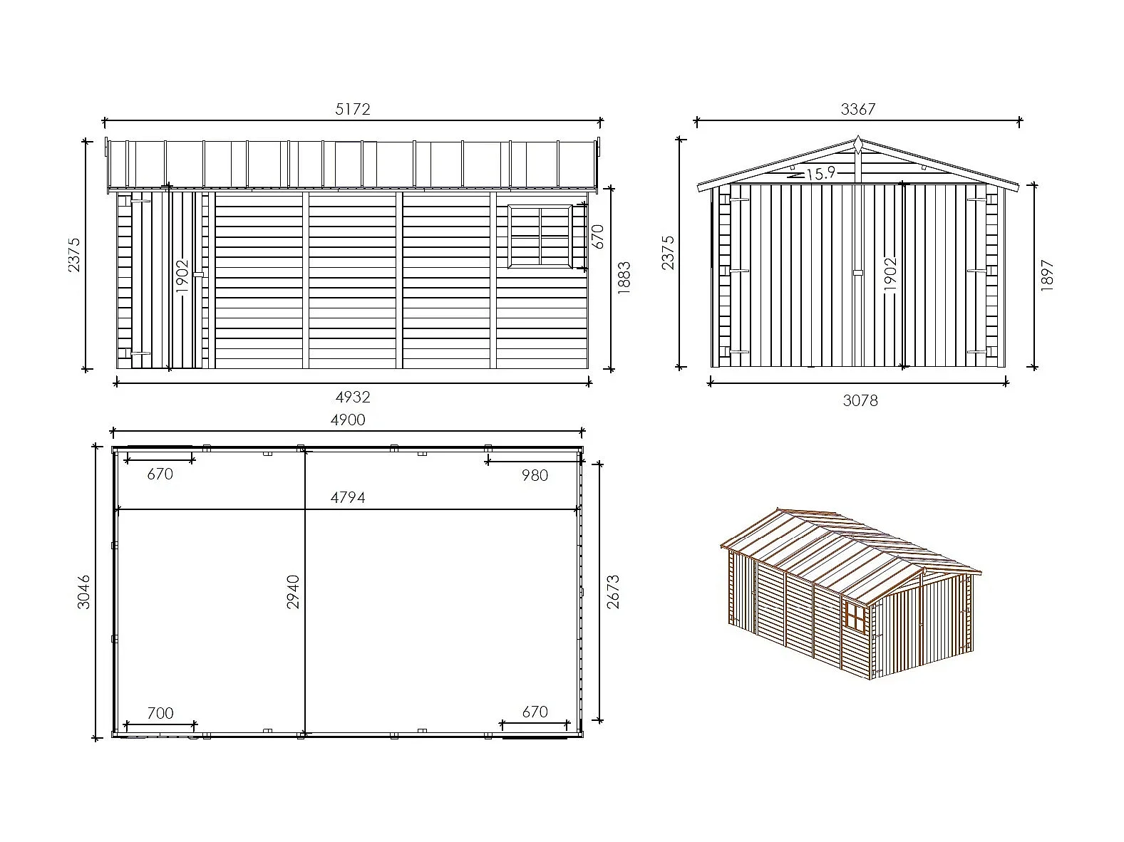 Garage in legno - 14.94m2 - 3.05x4.93m - 18mm - colore: naturale - GAR28 - ALTANKA