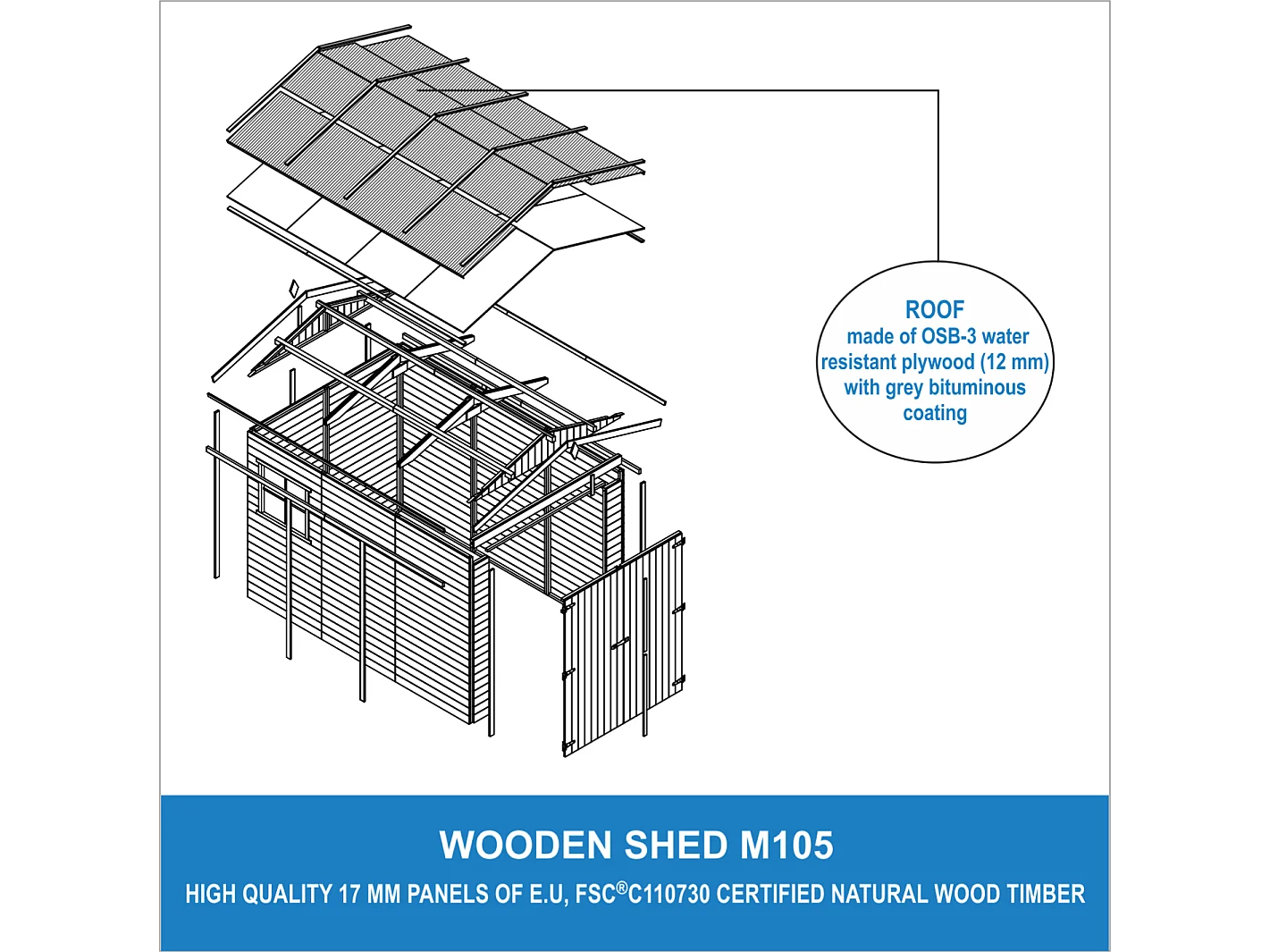 Garage in legno naturale - A222x320x244 cm / 6 m² - M105
