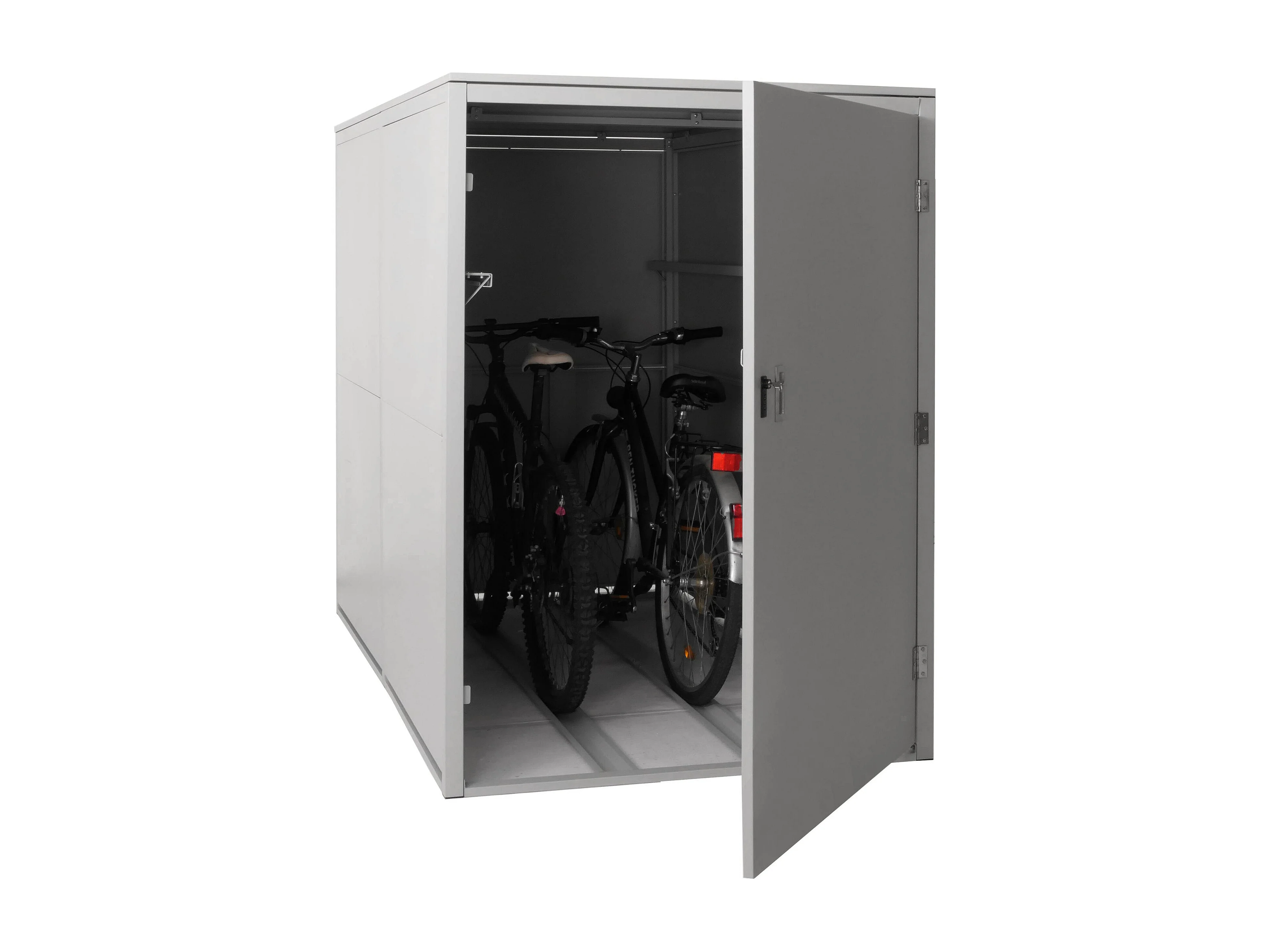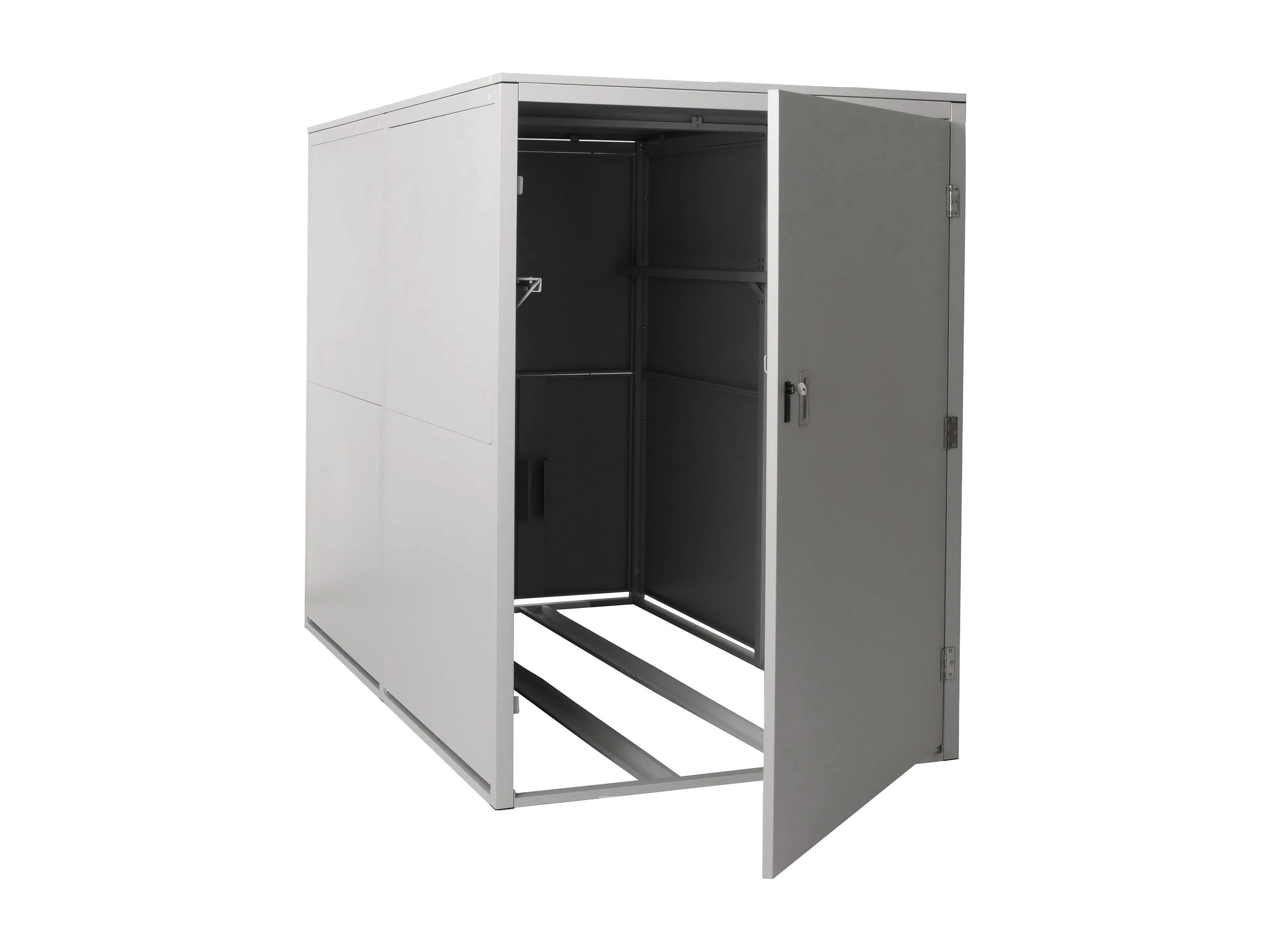 Garage per 2 biciclette MCW-L56c, rimessa con deposito, in metallo con serratura 160x113x209cm ~ grigio chiaro
