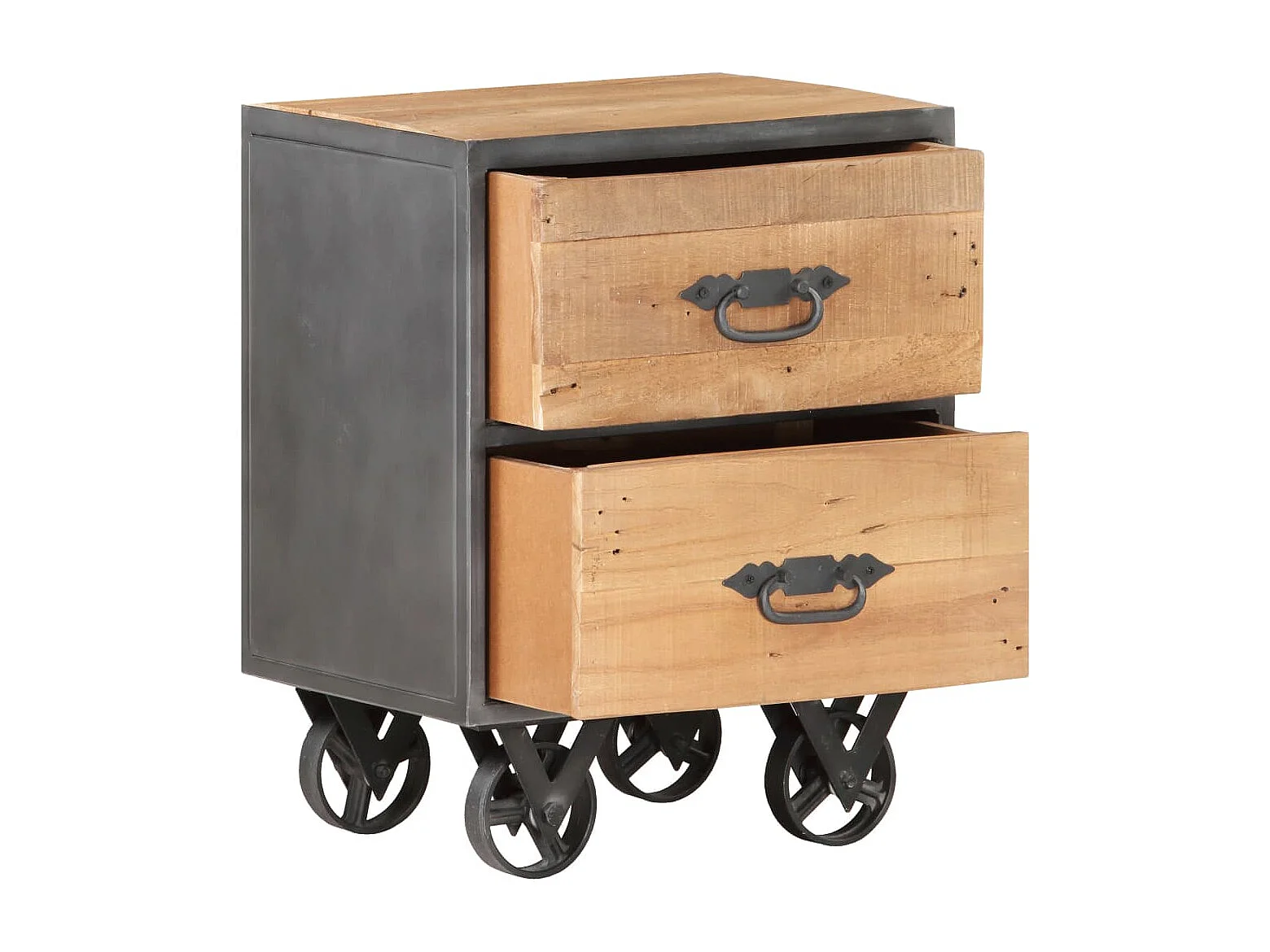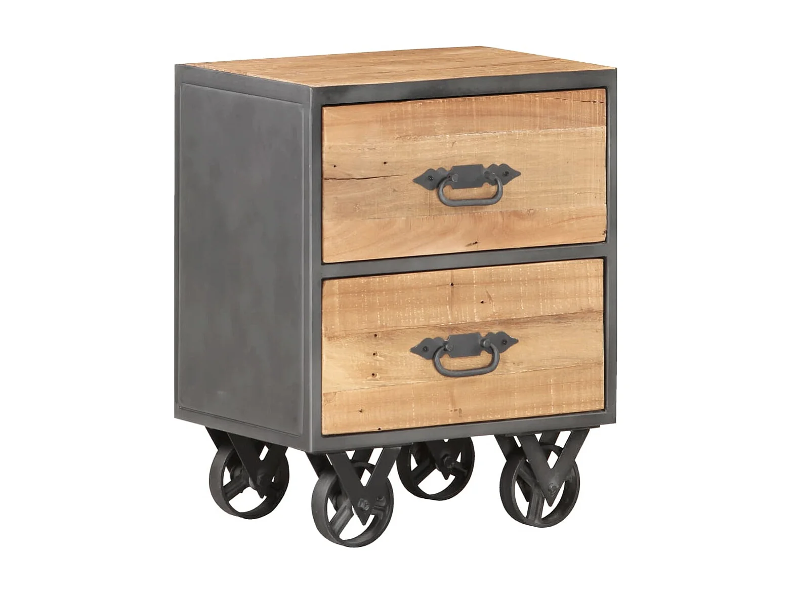 Garden Furniture - Comodino 40x30x50 cm in Legno Massello di recupero e Acciaio