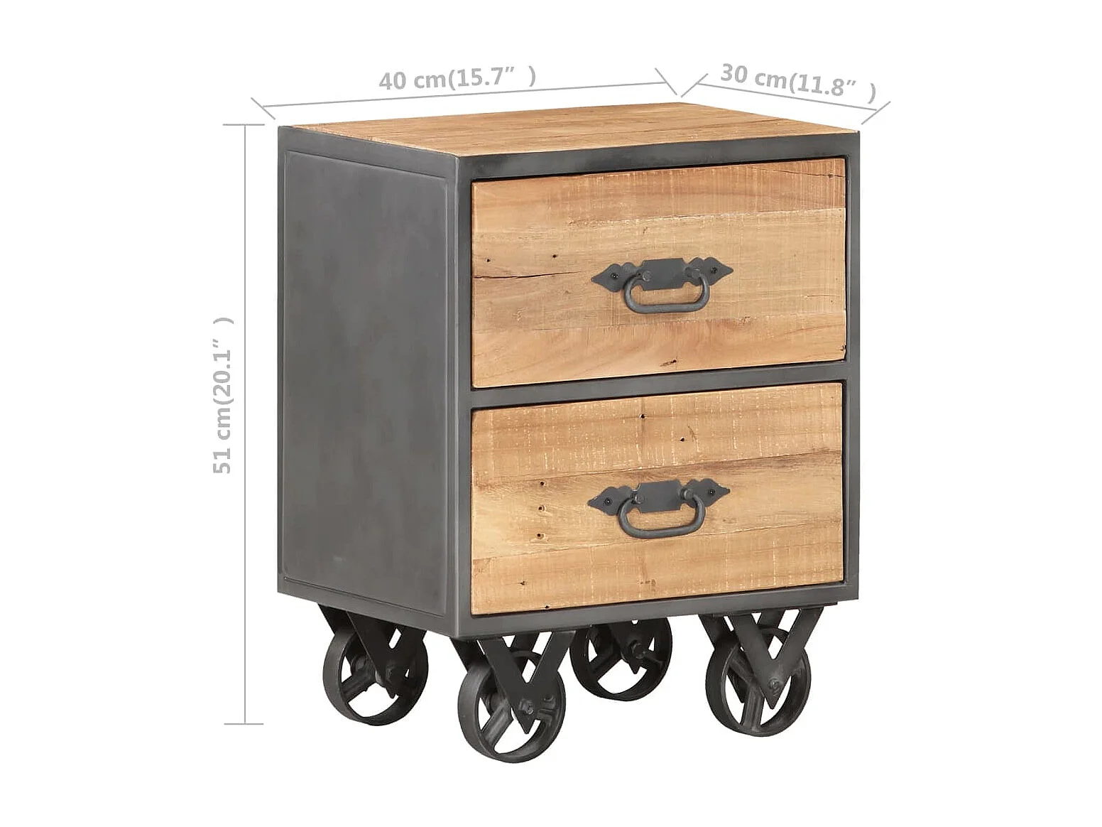 Garden Furniture - Comodino 40x30x50 cm in Legno Massello di Acacia con Bordi Vivi