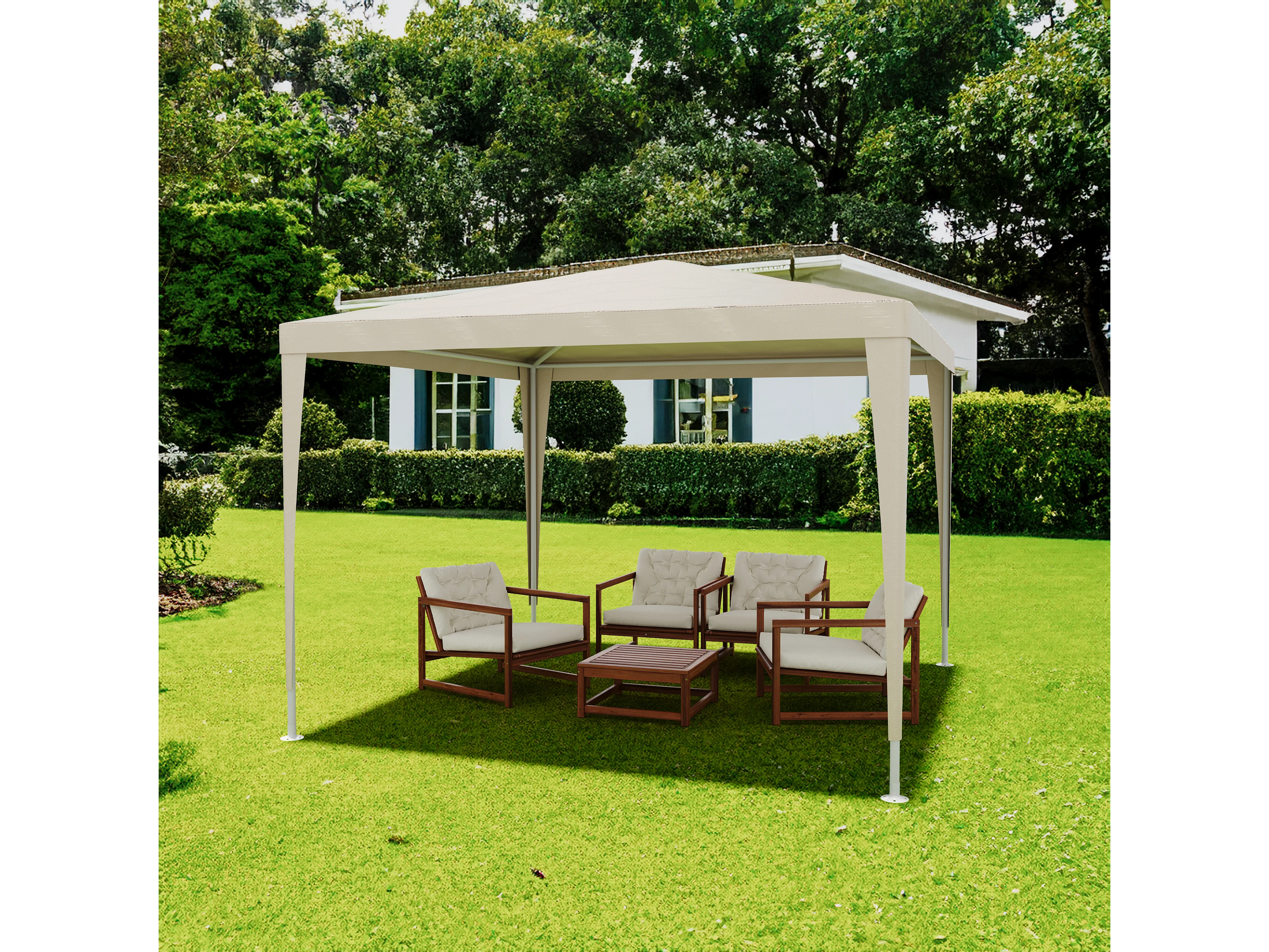 Gazebo 3 x 3 Metri Struttura in Acciaio Copertura In PE 110 gr/m² Impermeabile Idrorepellente Resistente Raggi Solari UV Tenda Ombrellone Per Fiere Pic Nic Tortora