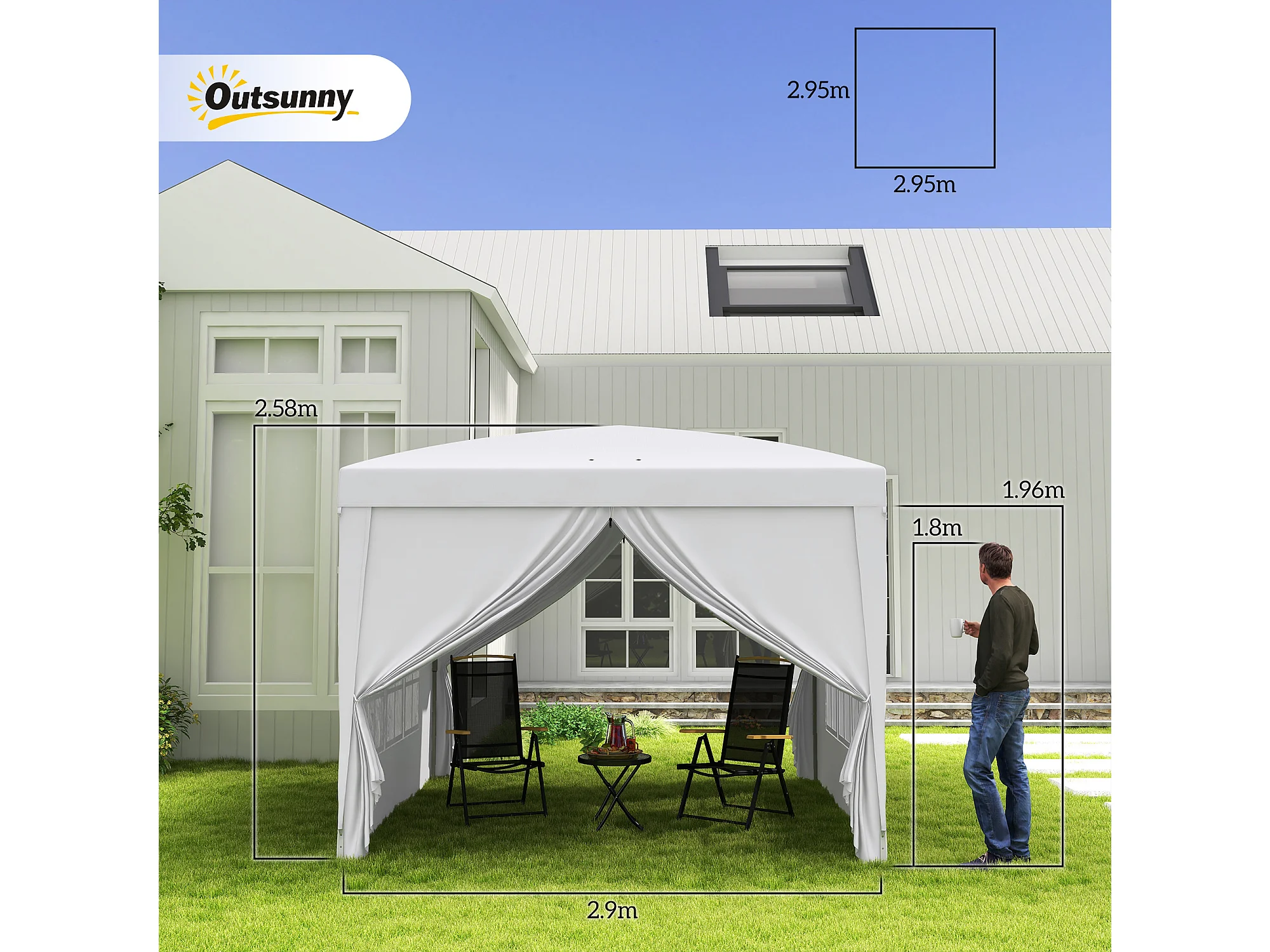 Gazebo Pop-up SucceBuy Gazebo Tettoia Parasole, 2,95 x 2,95 m, con Pareti Laterali