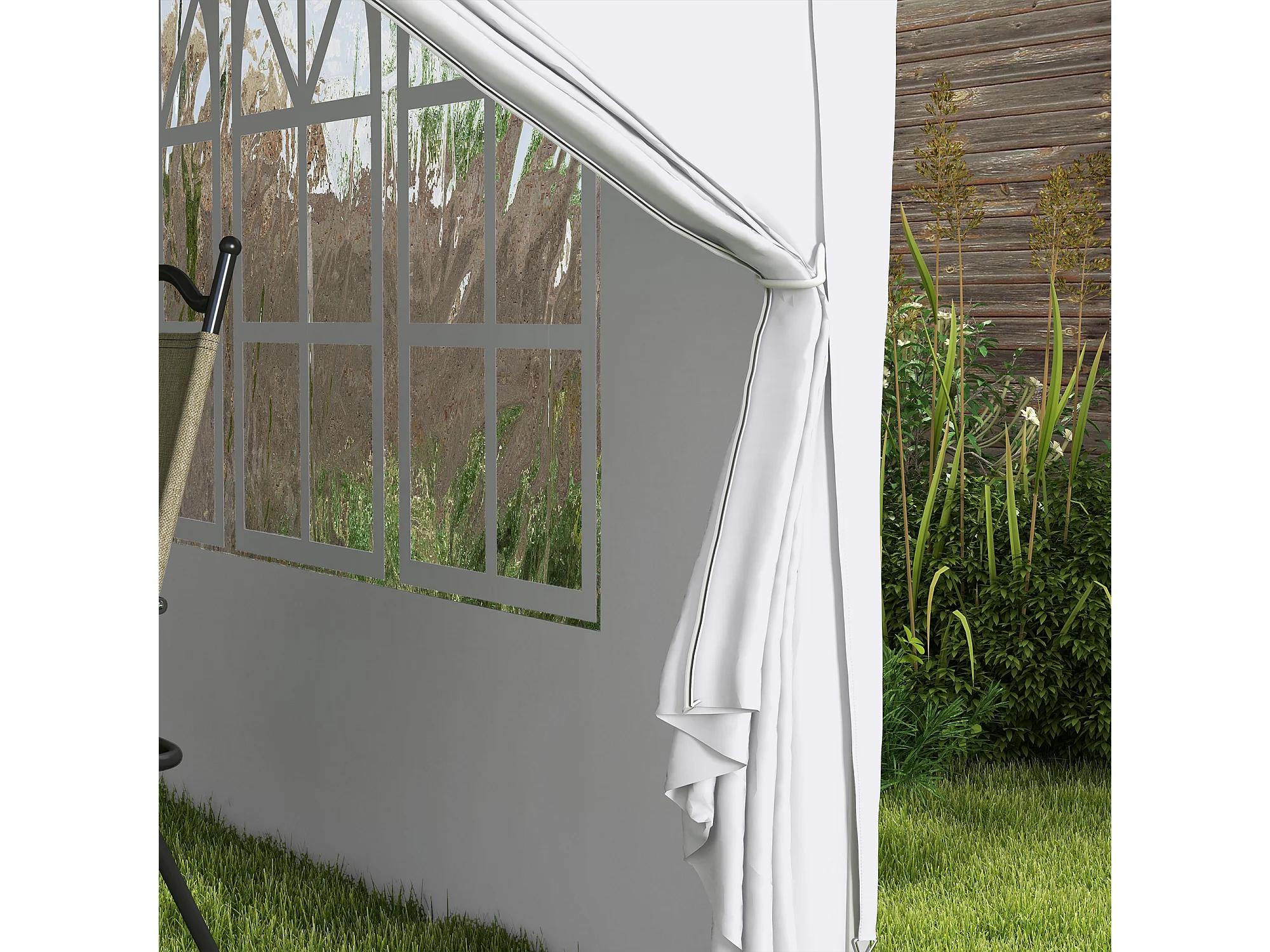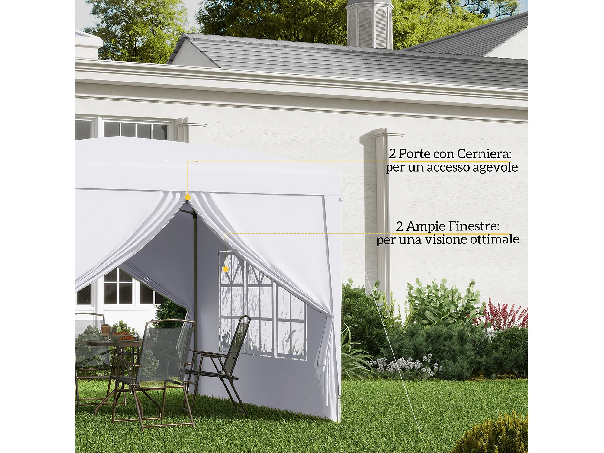 Gazebo da giardino pieghevole con 2 pareti bianco